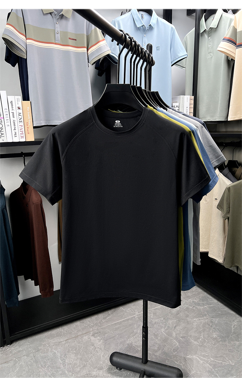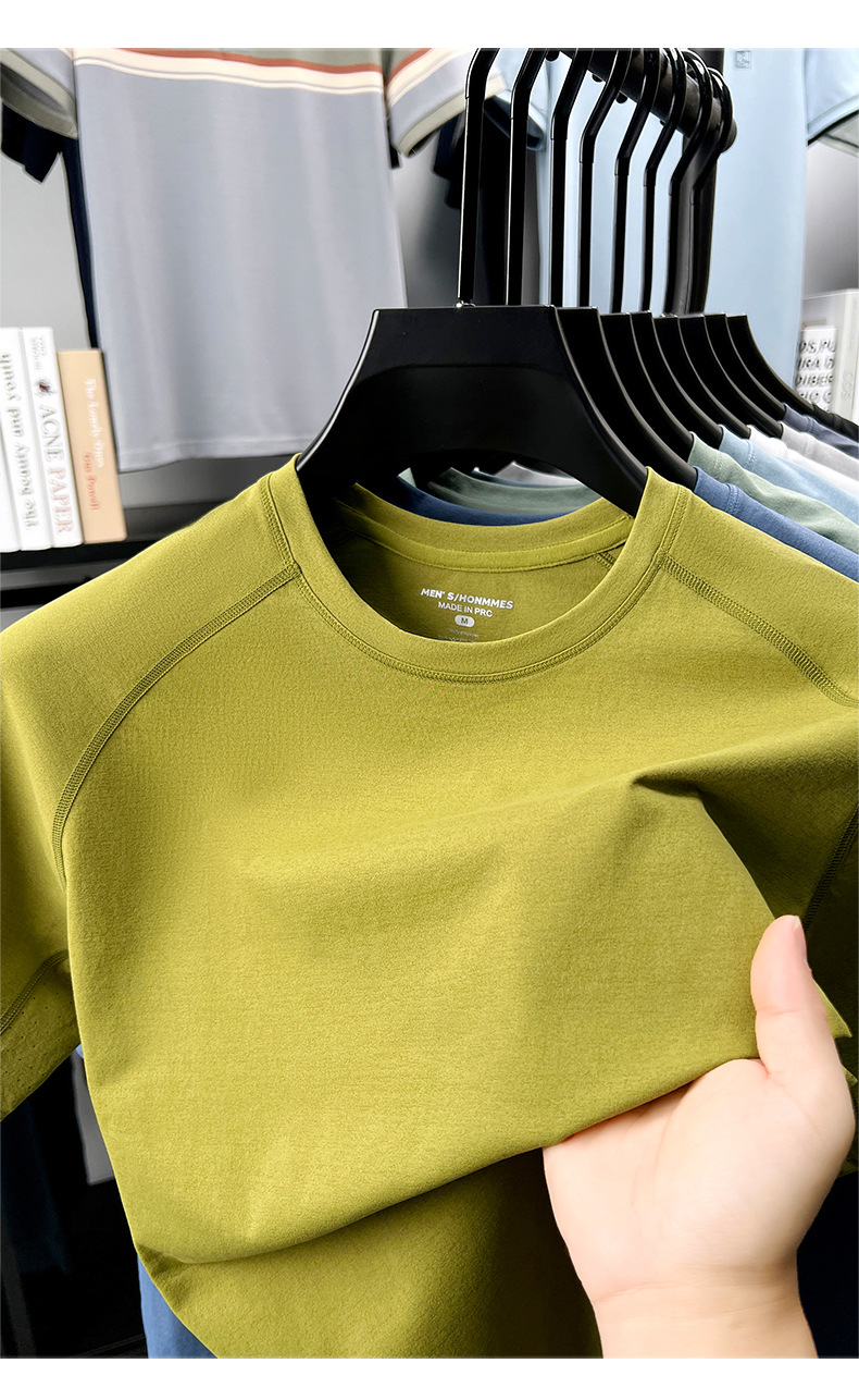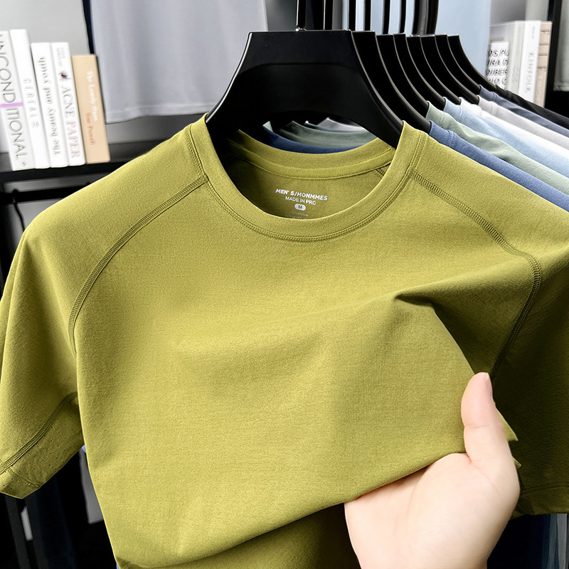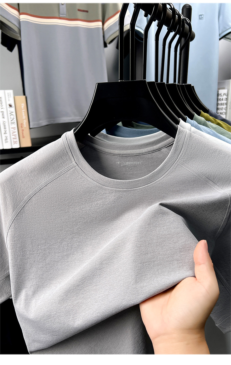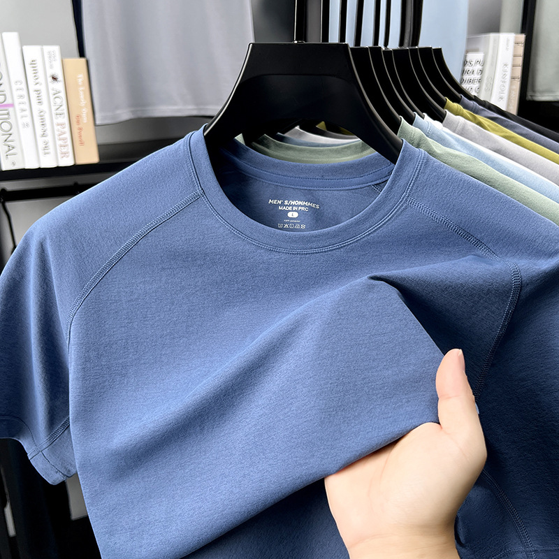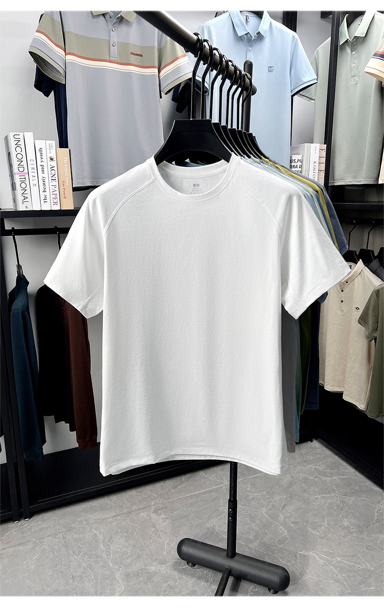 여름 남자 야외 간단한 통기성 반팔 티셔츠 라운드 넥 편안한 쿨 솔리드 컬러 올 매치 스포츠 빠른 건조 탑 T스토어 가기