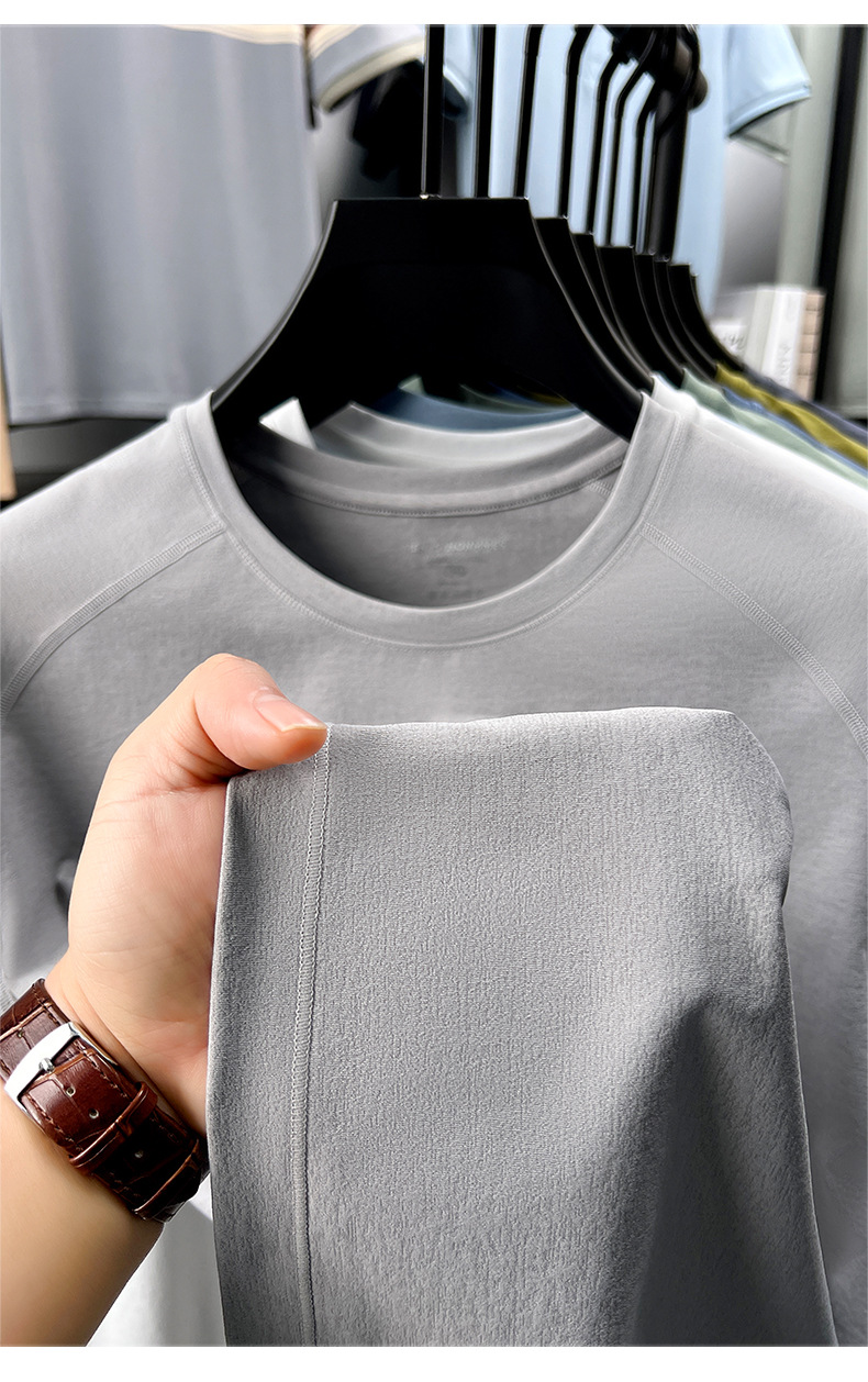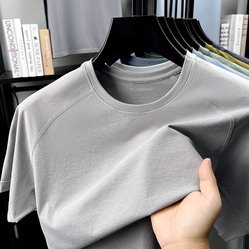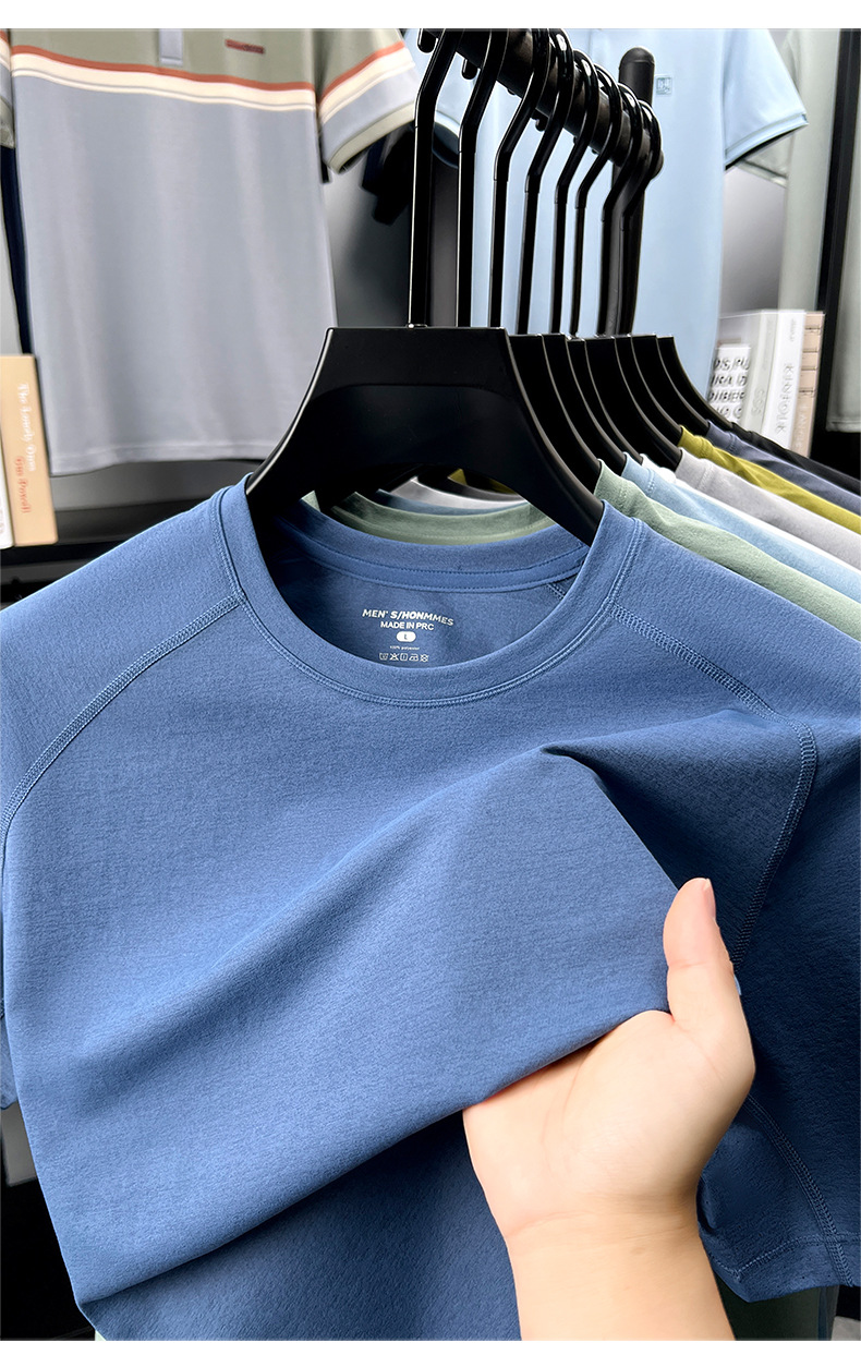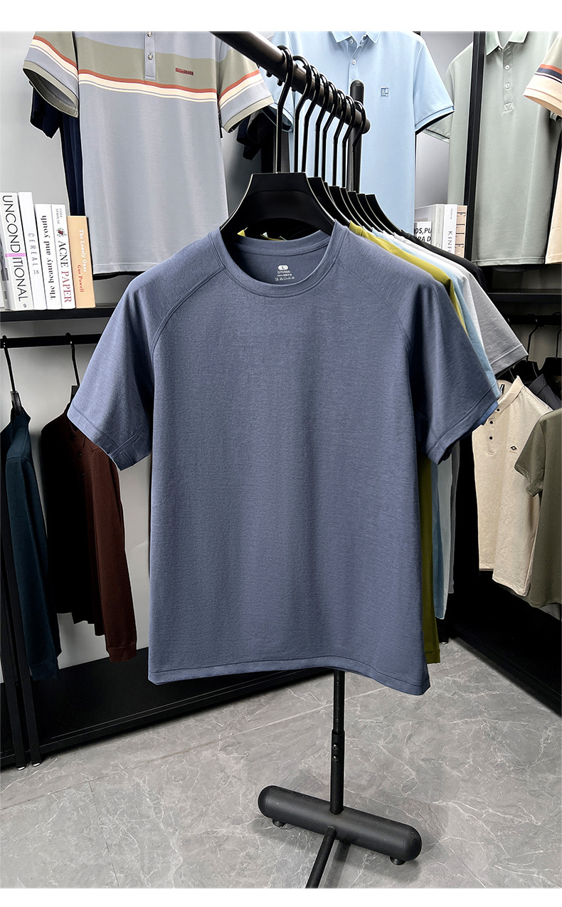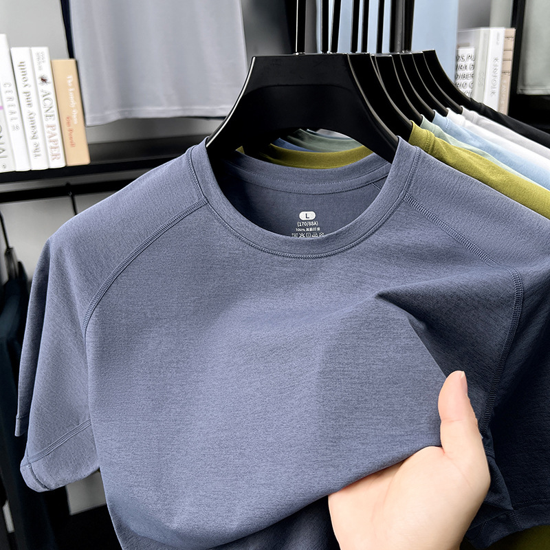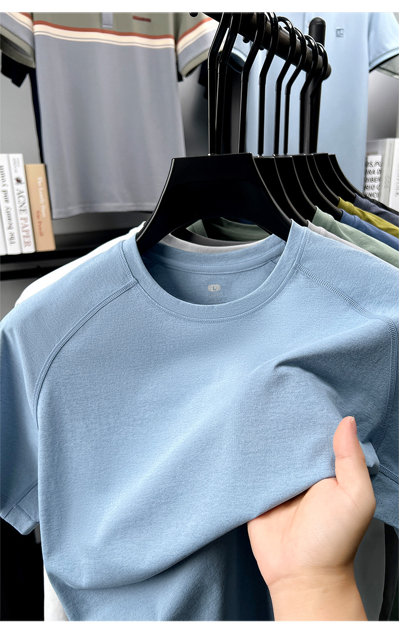 여름 남자 야외 간단한 통기성 반팔 티셔츠 라운드 넥 편안한 쿨 솔리드 컬러 올 매치 스포츠 빠른 건조 탑 T스토어 가기