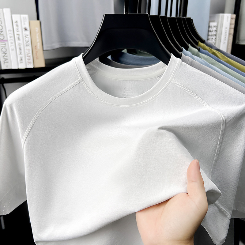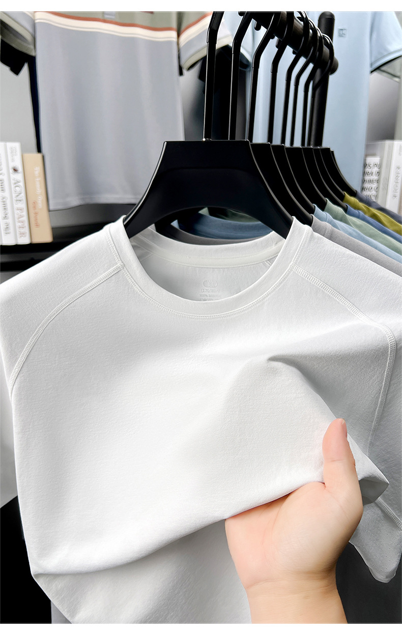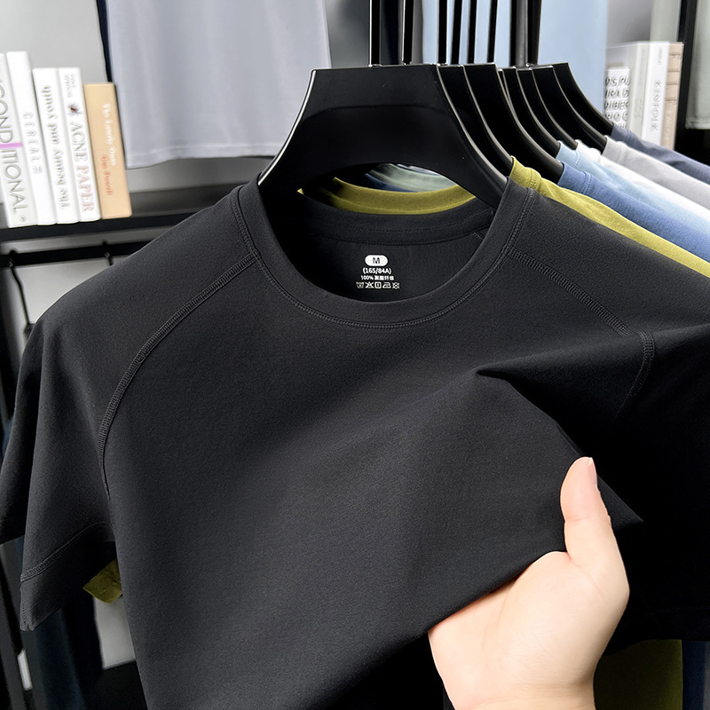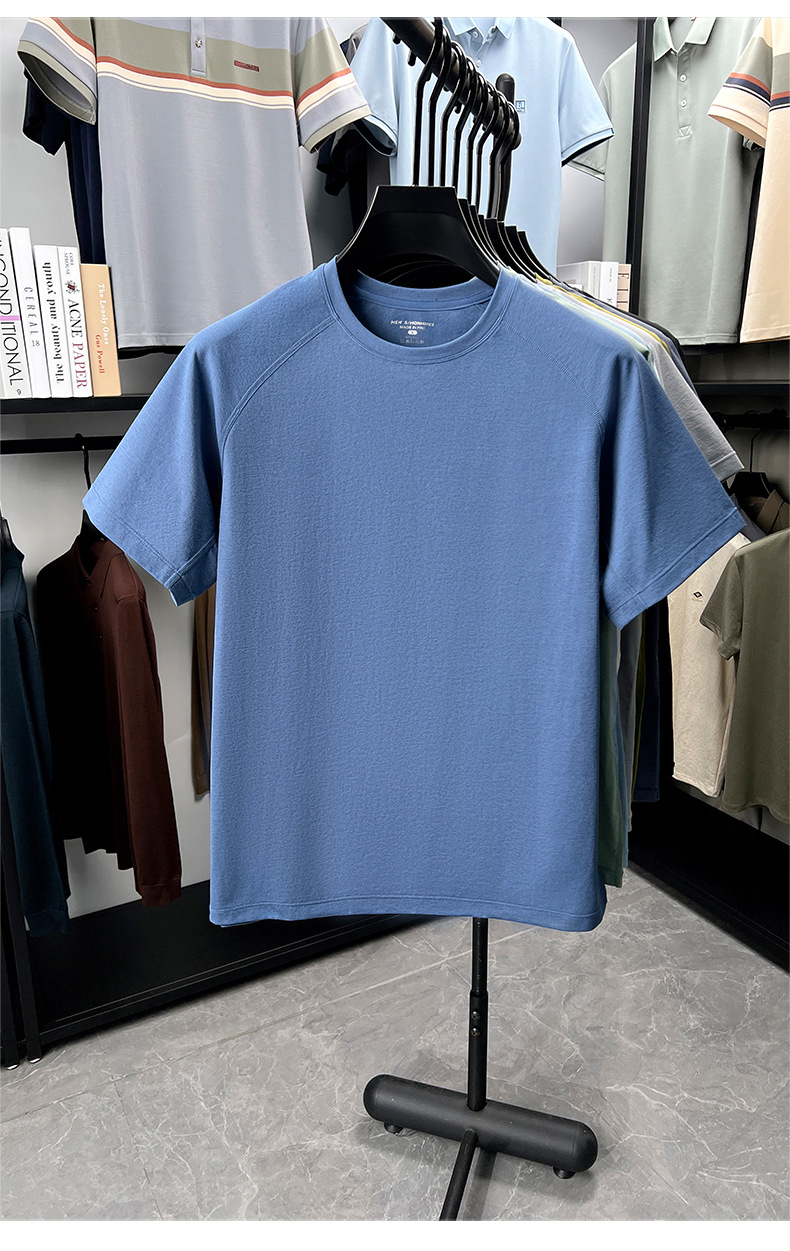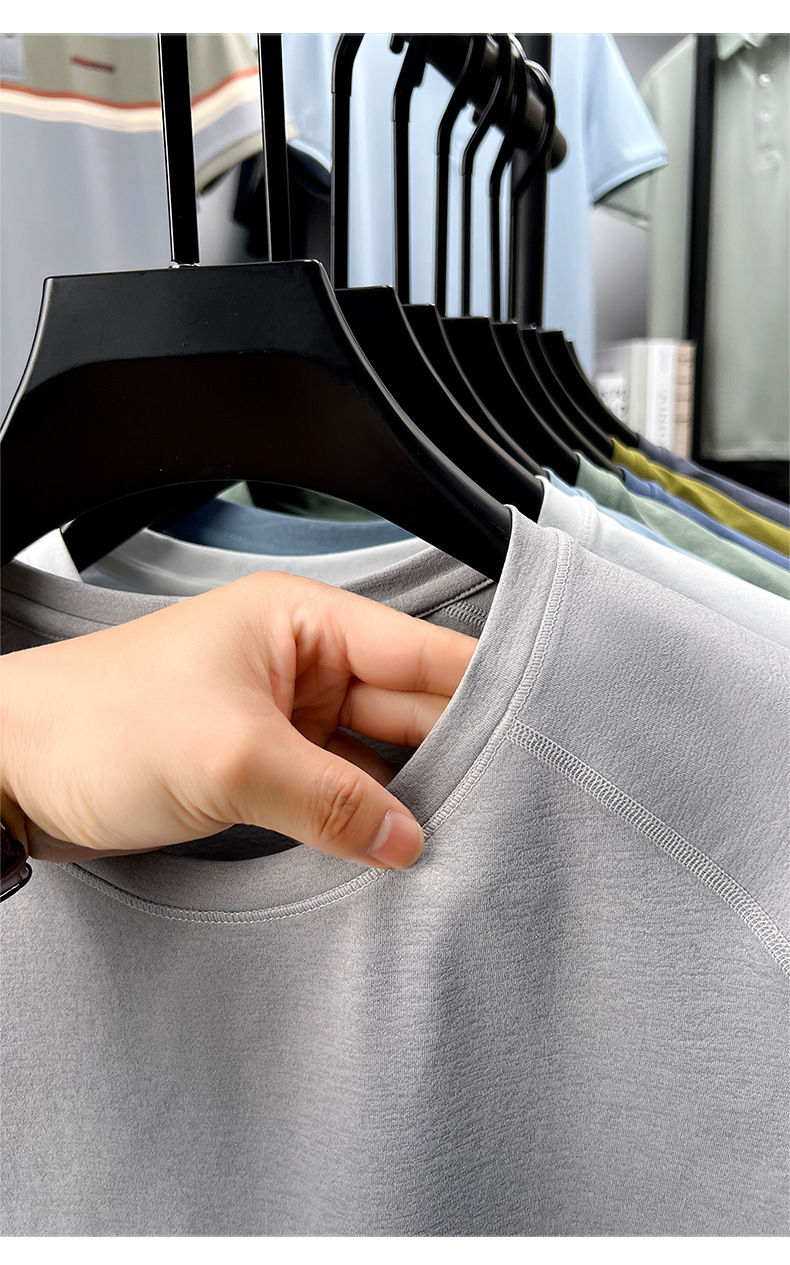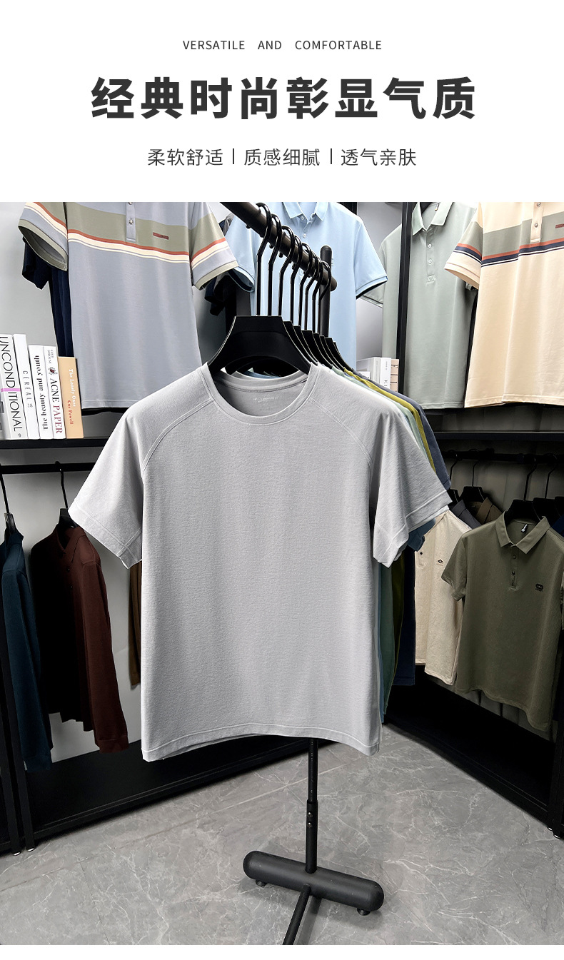 여름 남자 야외 간단한 통기성 반팔 티셔츠 라운드 넥 편안한 쿨 솔리드 컬러 올 매치 스포츠 빠른 건조 탑 T스토어 가기