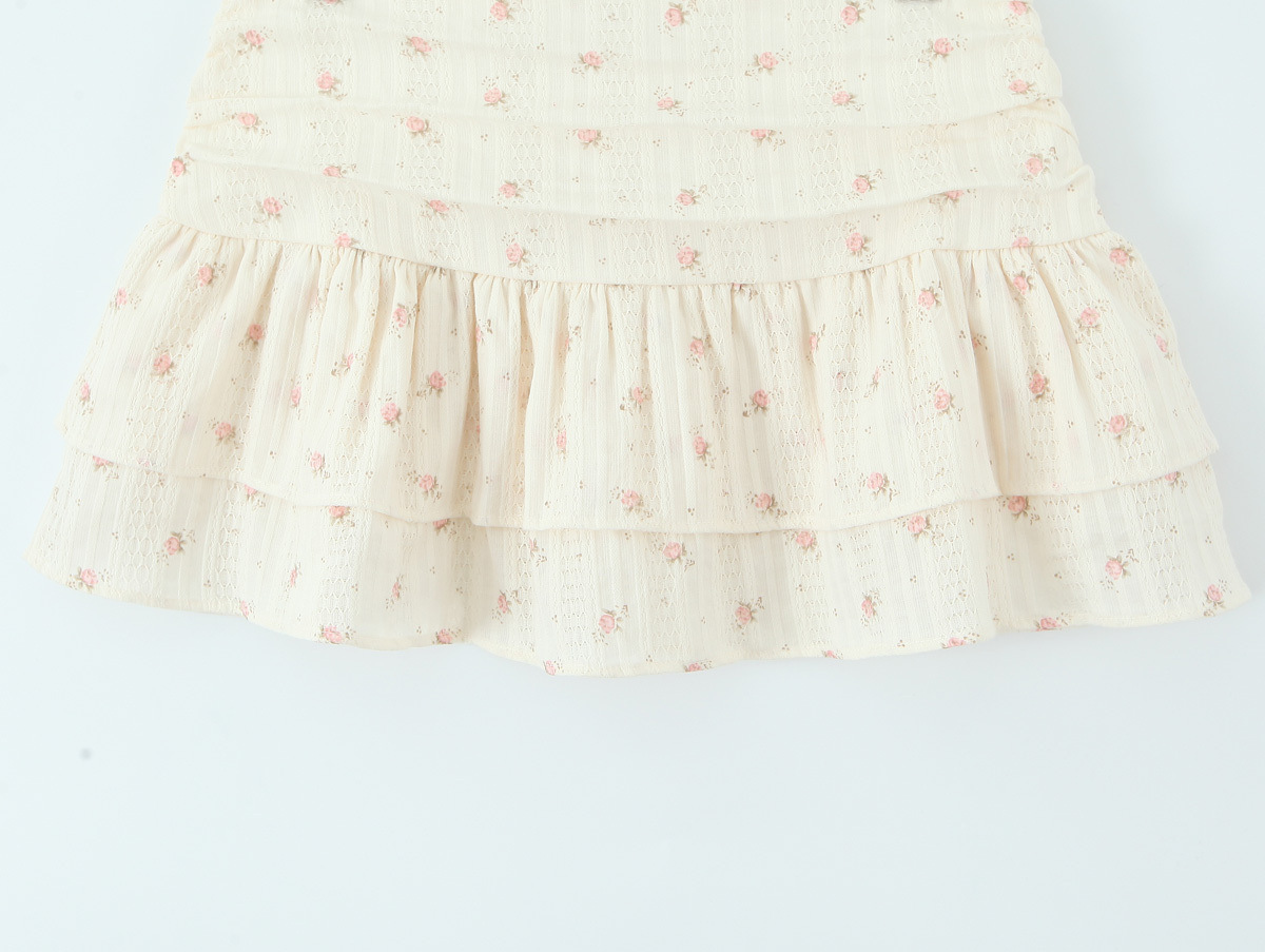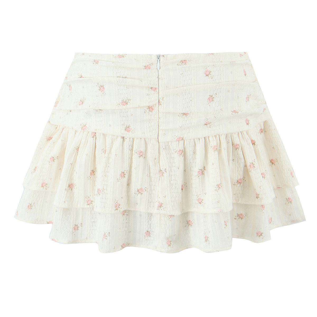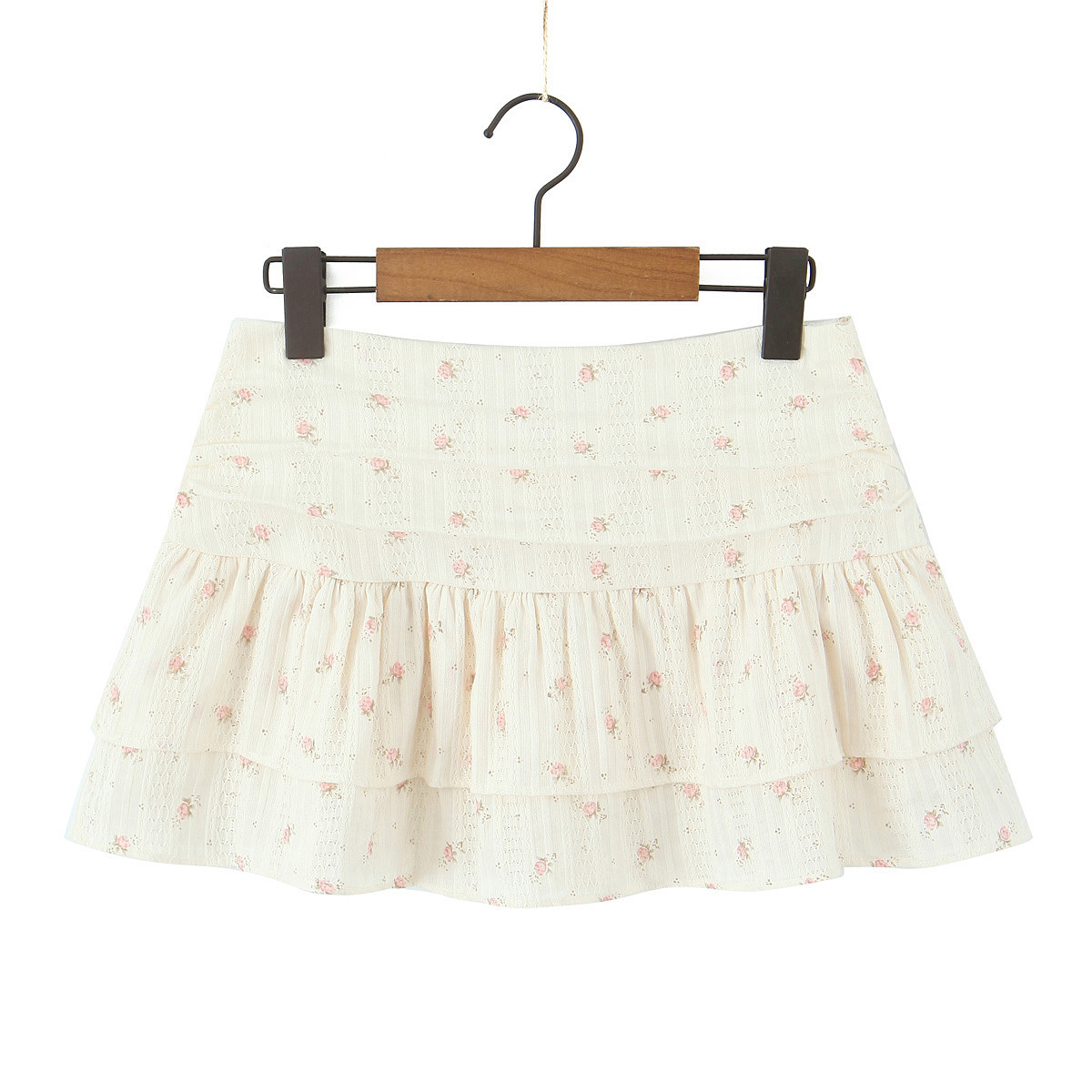 아메리칸 컬리지 스타일 핫걸 섹시 살구 꽃무늬 스커트 여성 주름 로우 웨이스트 케이크 레이어 미니 스커트