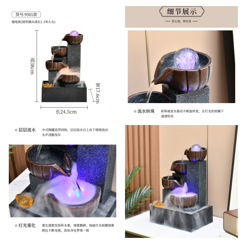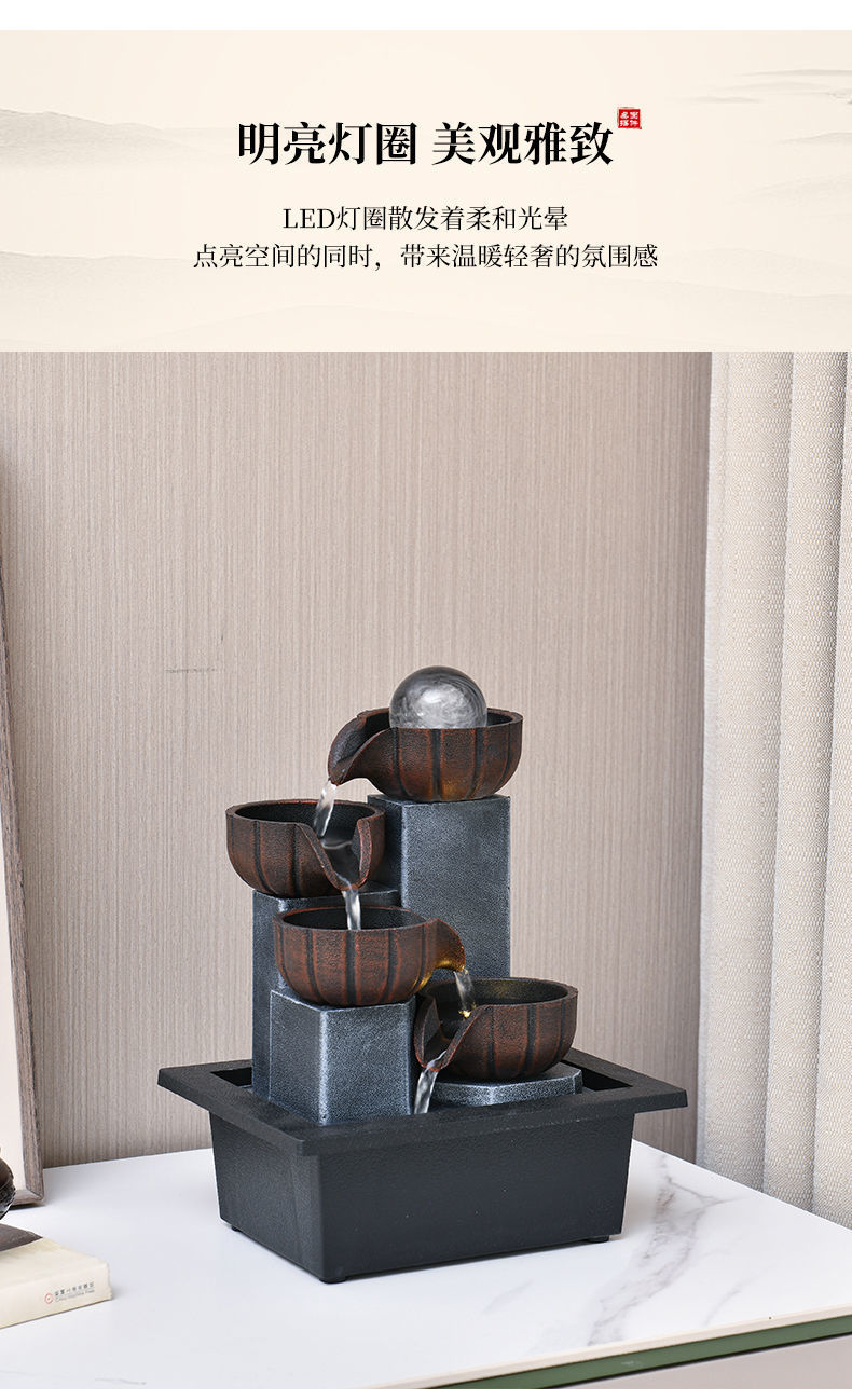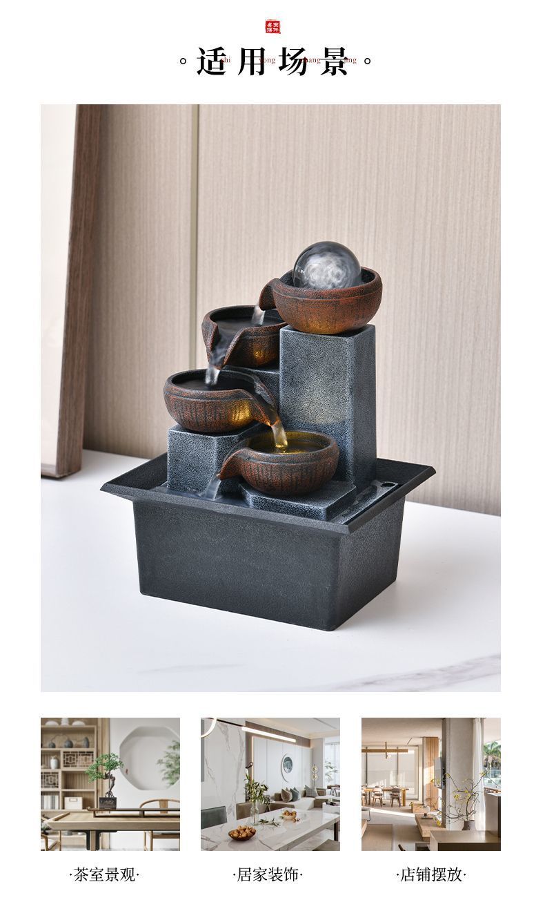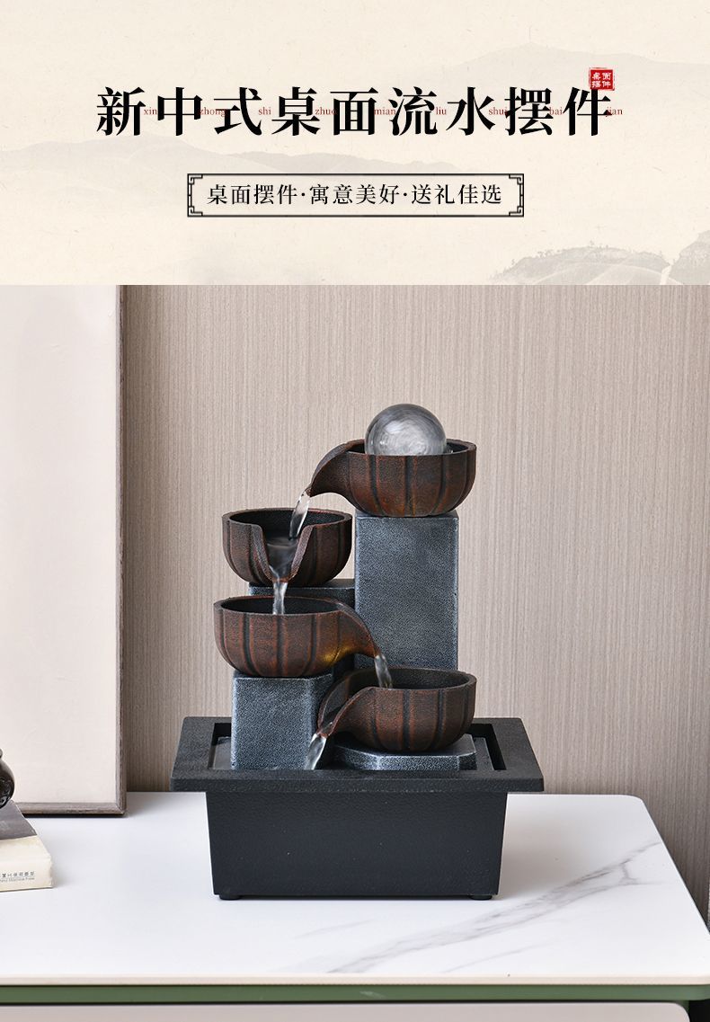 러닝 워터 럭키 장식품 작은 분수 거실 데스크탑 커피 테이블 순환 워터 오피스 스타일
