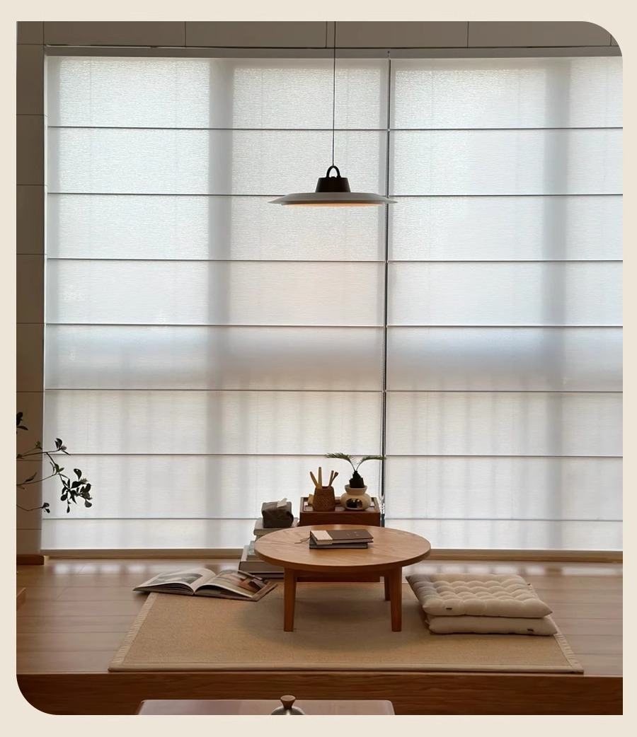 일본식 린넨 로마 커튼, 암막 거즈 커튼, 새로운 반투명 및 불투명 거실 발코니 전동 블라인드 롤러 블라인드
