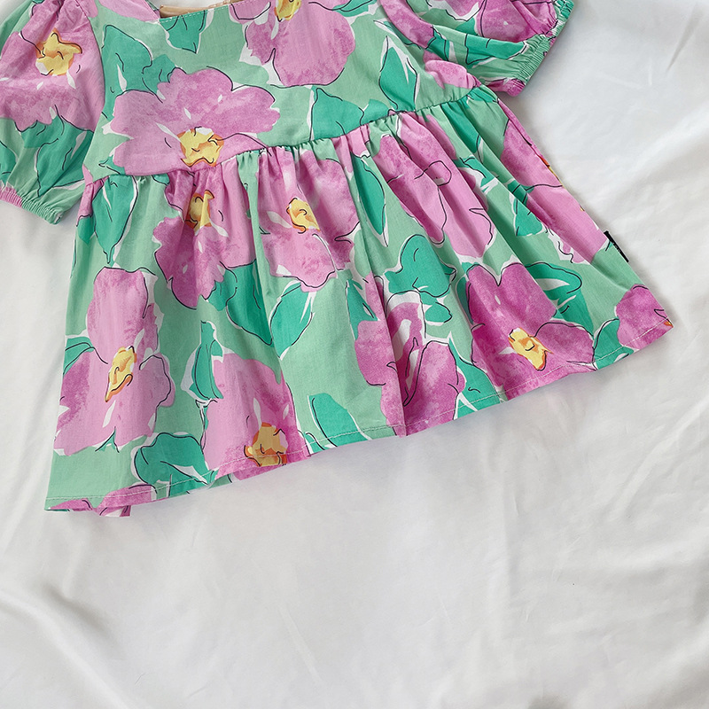 MDD 아동복 소녀 한국 달콤한 양복 2025 여름 신작 아동 퍼프 슬리브 탑 큰 꽃 반바지스토어 가기