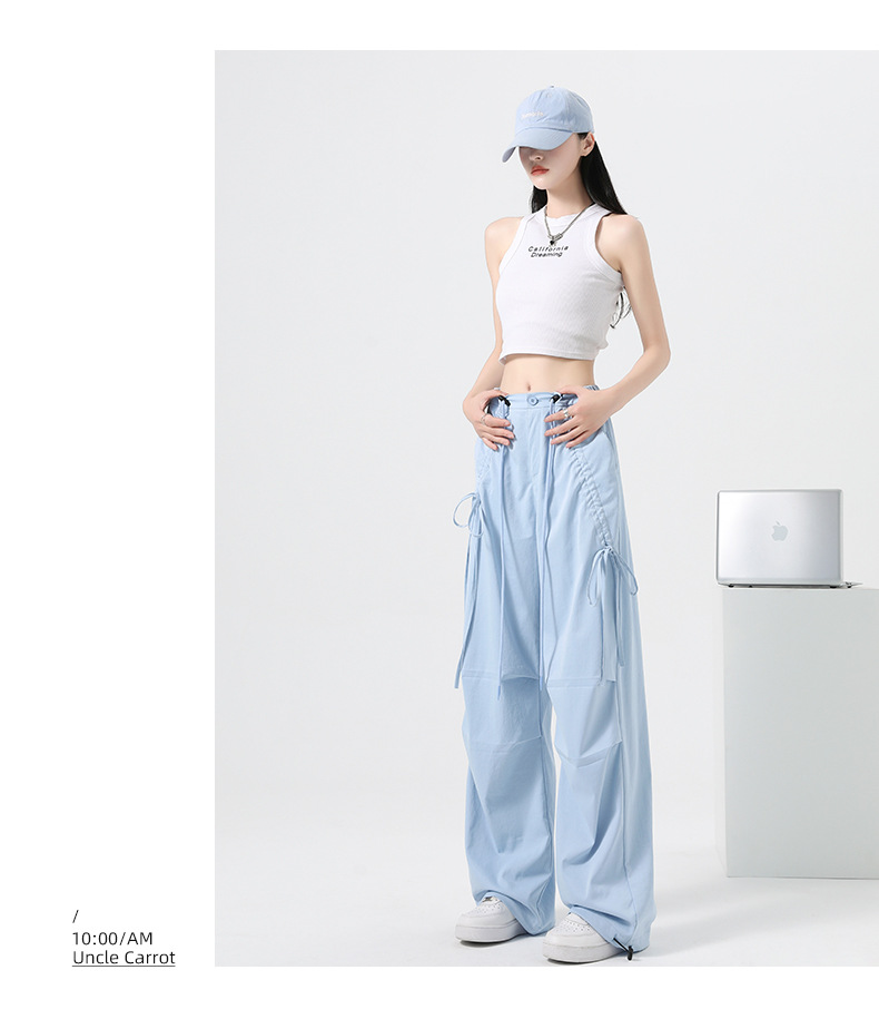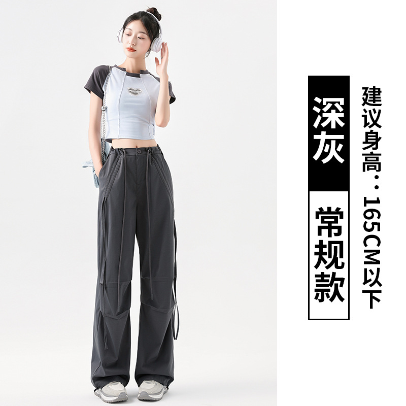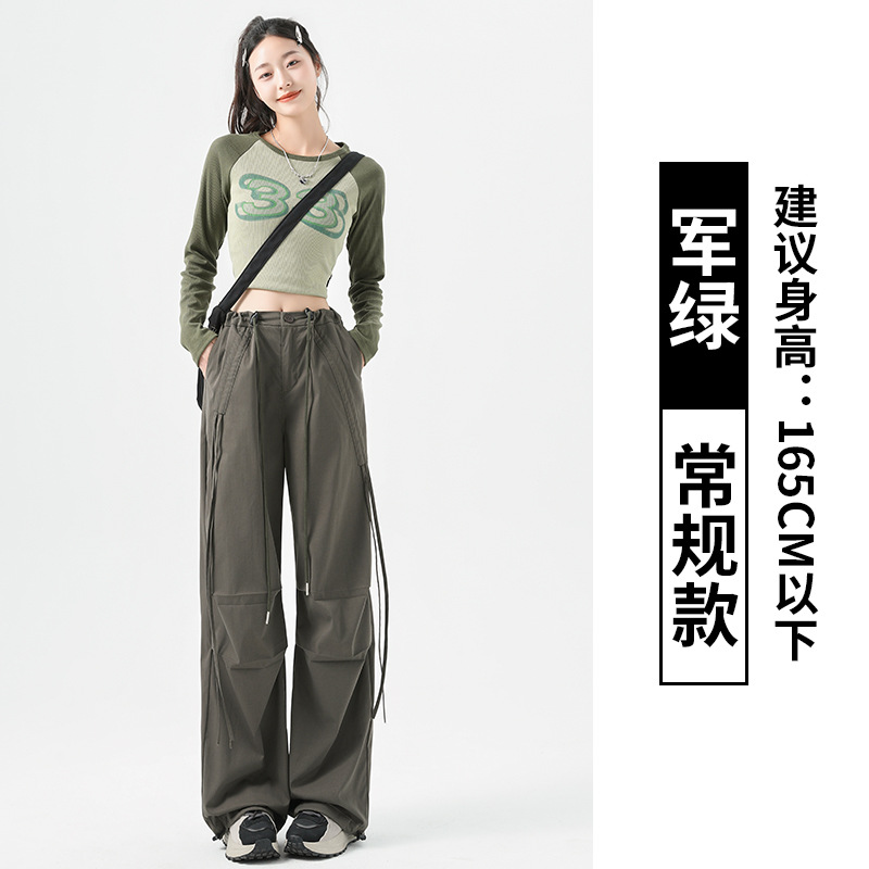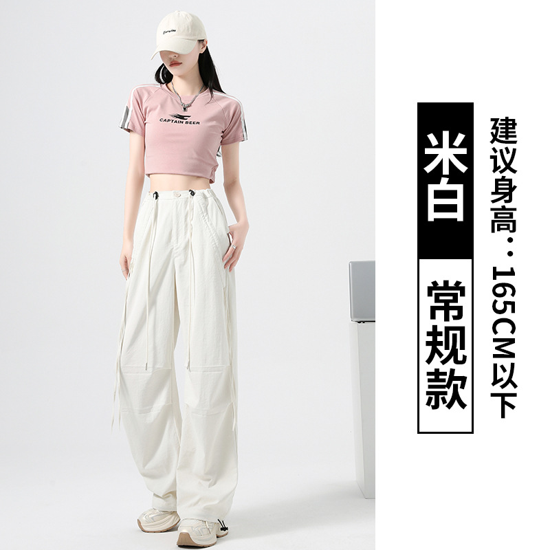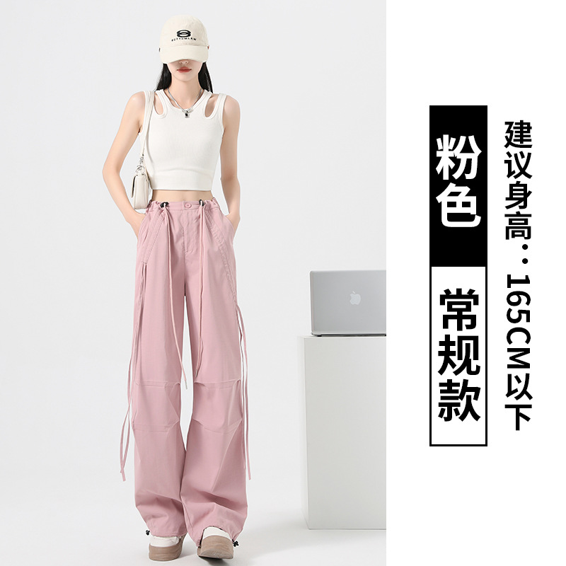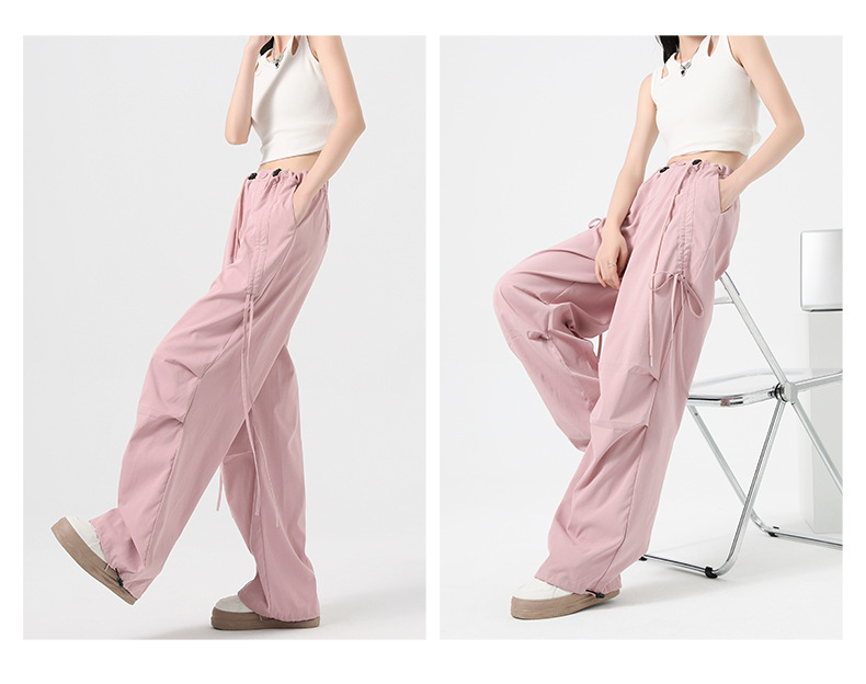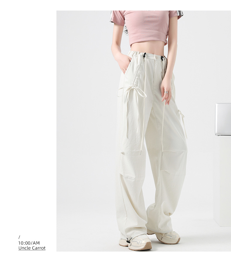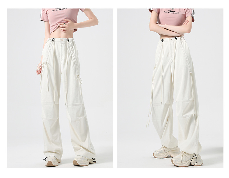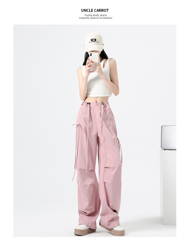2025 미국 하이 웨이스트 스포츠 바지 여성 봄, 가을 등산 바지 복고풍 느슨한 넓은 다리 보우 캐주얼 오버올
