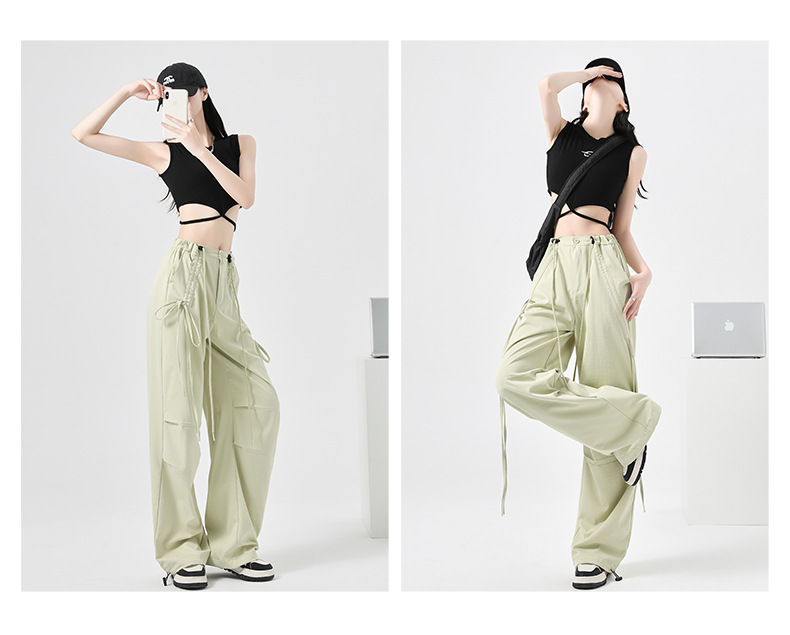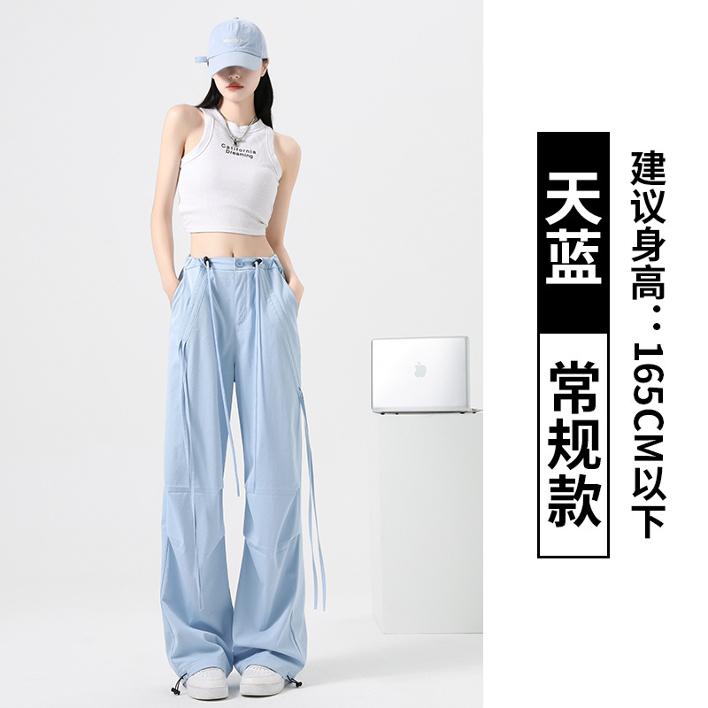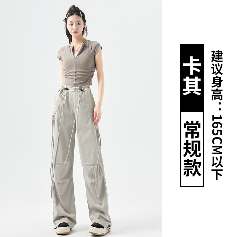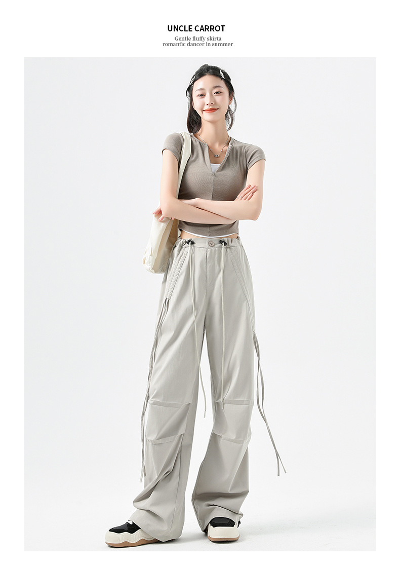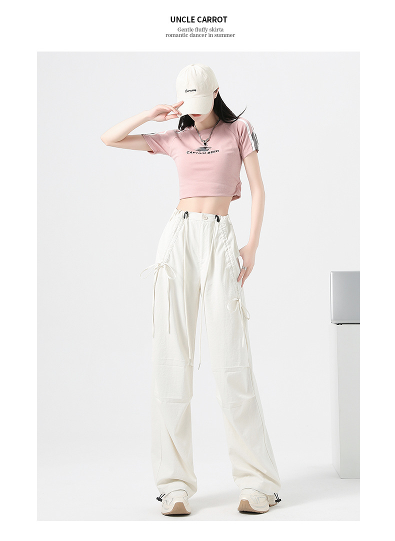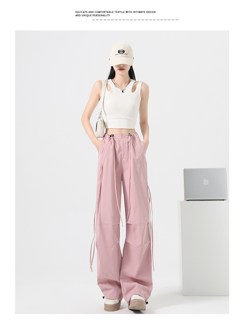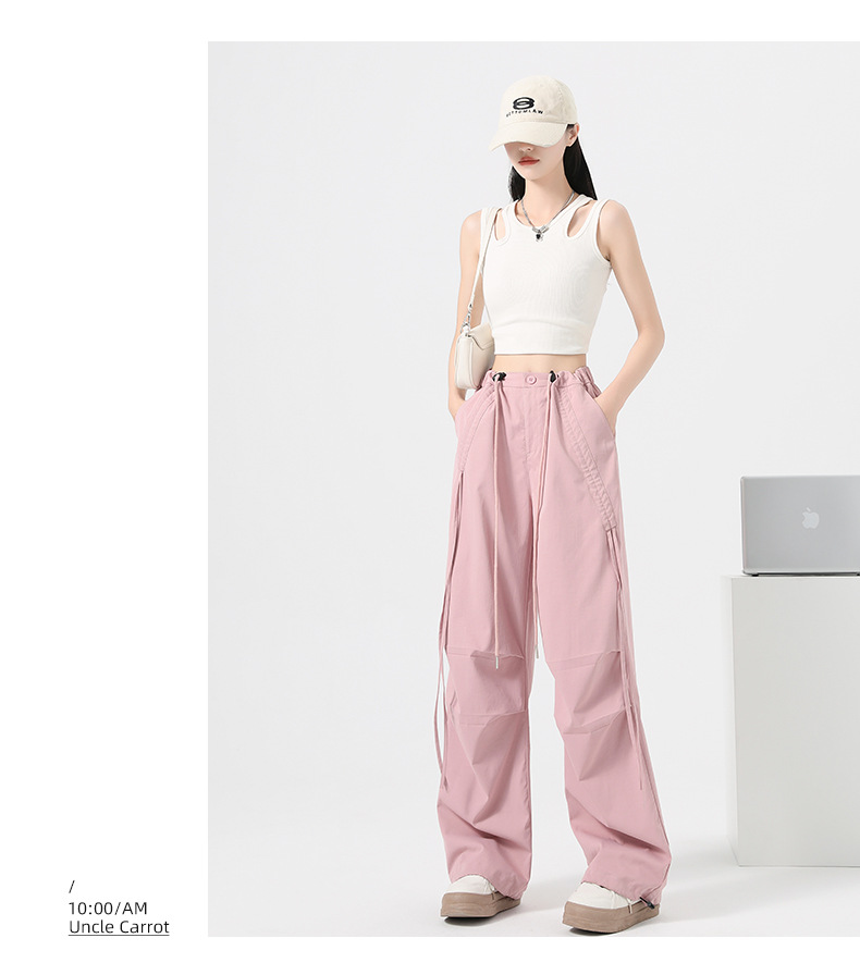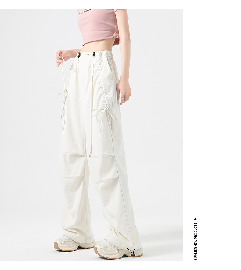 2025 미국 하이 웨이스트 스포츠 바지 여성 봄, 가을 등산 바지 복고풍 느슨한 넓은 다리 보우 캐주얼 오버올