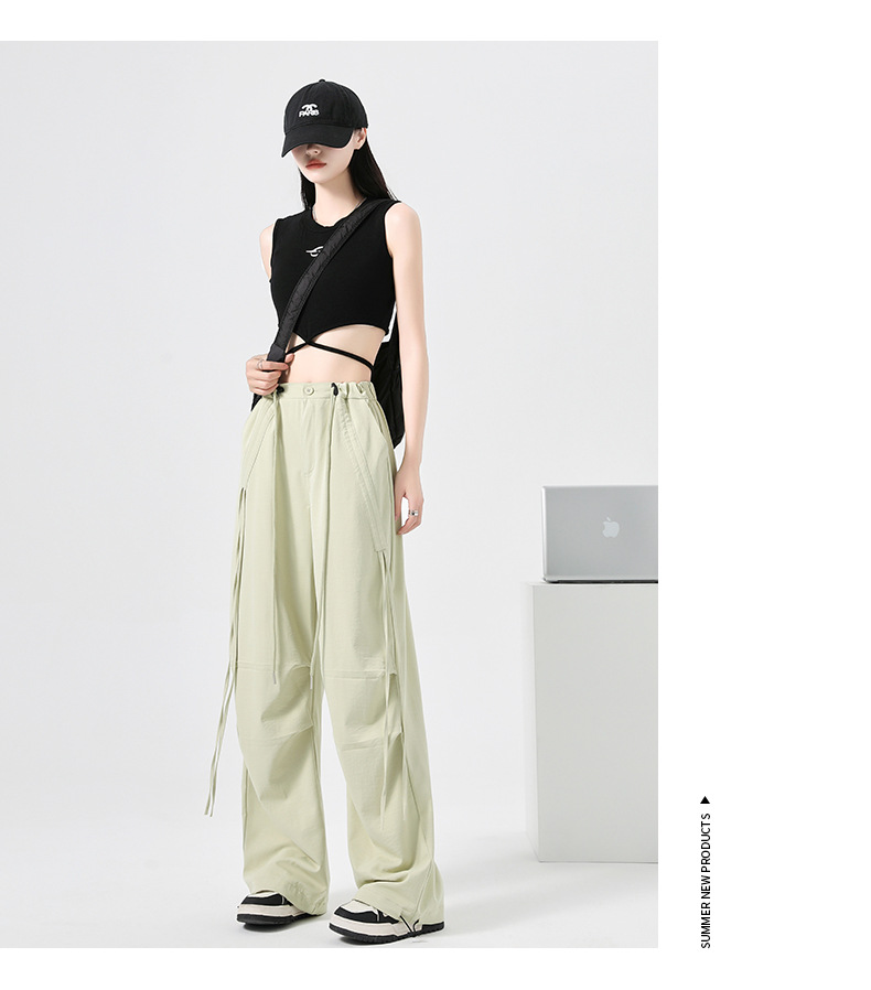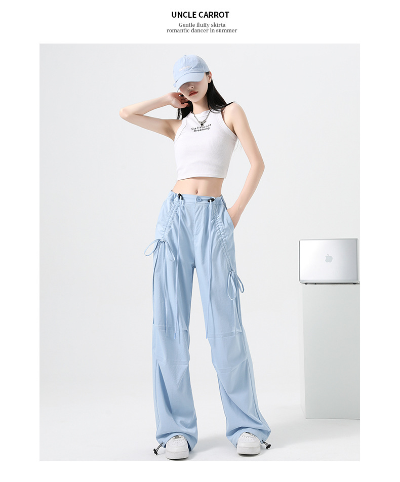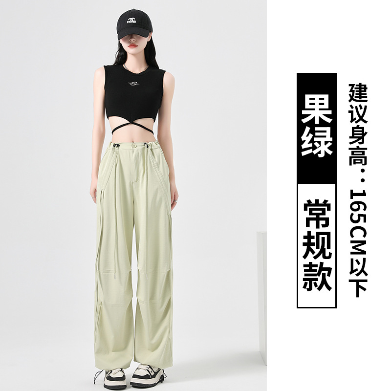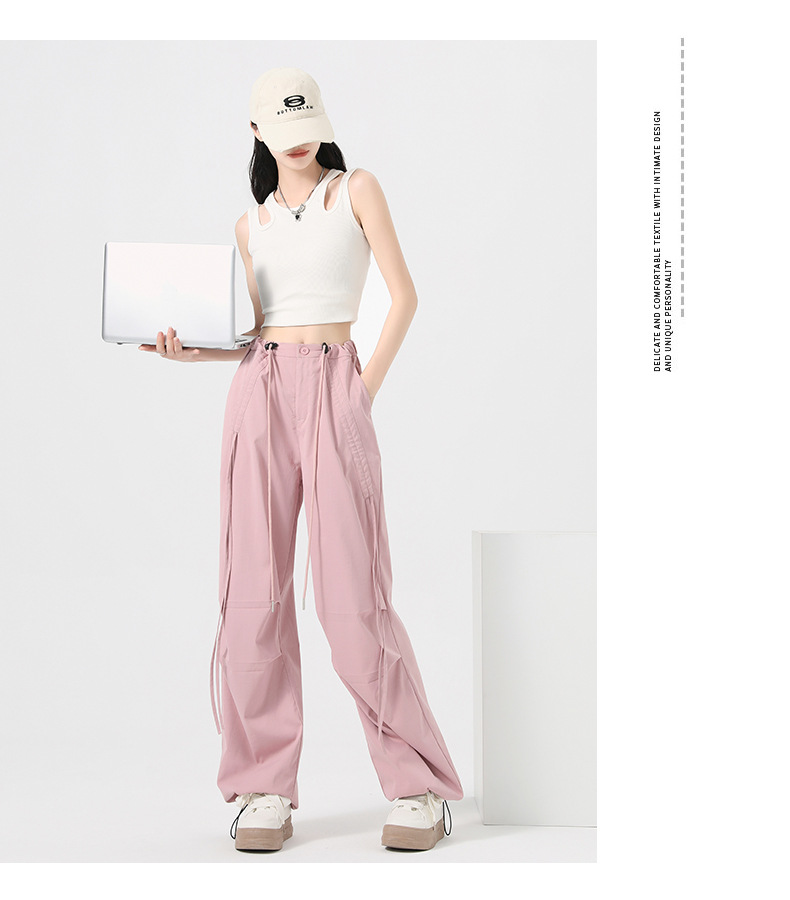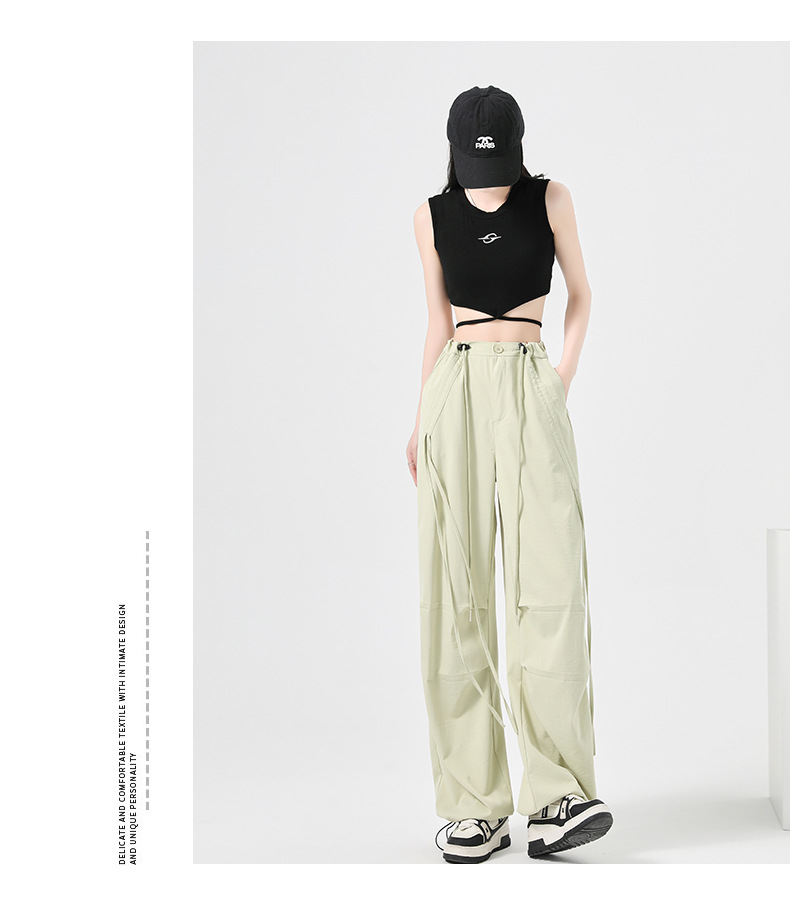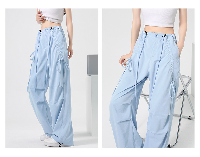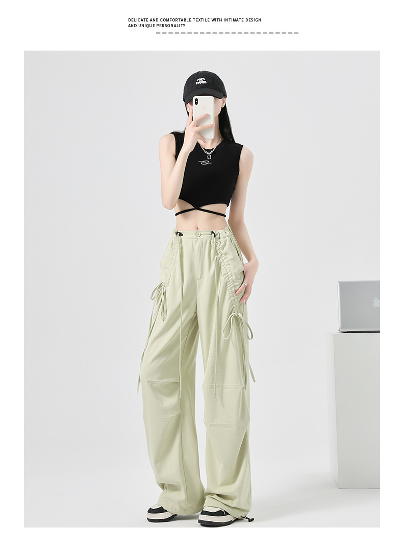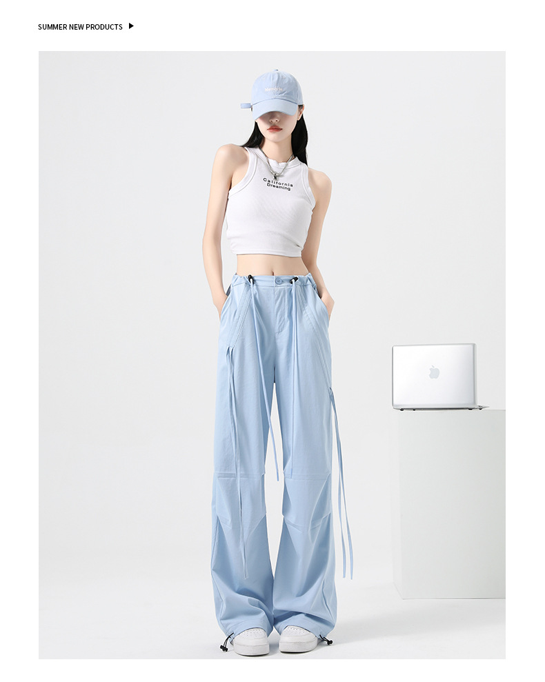 2025 미국 하이 웨이스트 스포츠 바지 여성 봄, 가을 등산 바지 복고풍 느슨한 넓은 다리 보우 캐주얼 오버올