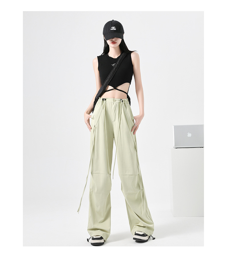 2025 미국 하이 웨이스트 스포츠 바지 여성 봄, 가을 등산 바지 복고풍 느슨한 넓은 다리 보우 캐주얼 오버올스토어 가기