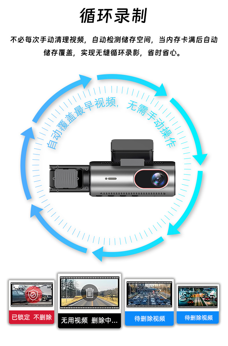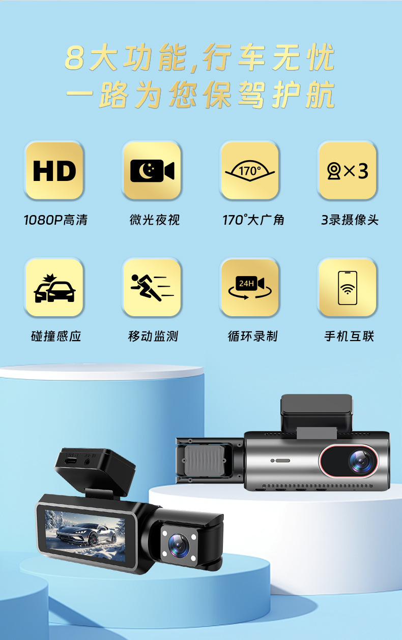 국경 간 고화질 운전 레코더 3렌즈 휴대폰 상호 연결 주차 모니터링 루프 녹화 반전 영상 WiFi스토어 가기