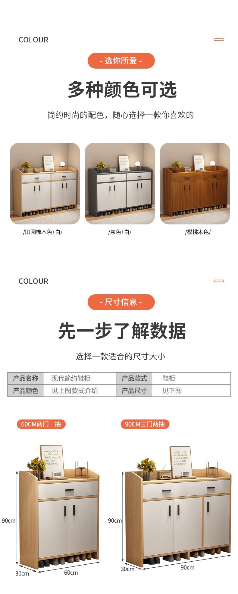 • ++업그레이드★두꺼운 판★60cm 문 2개와 서랍 1개 목가적인 오크++