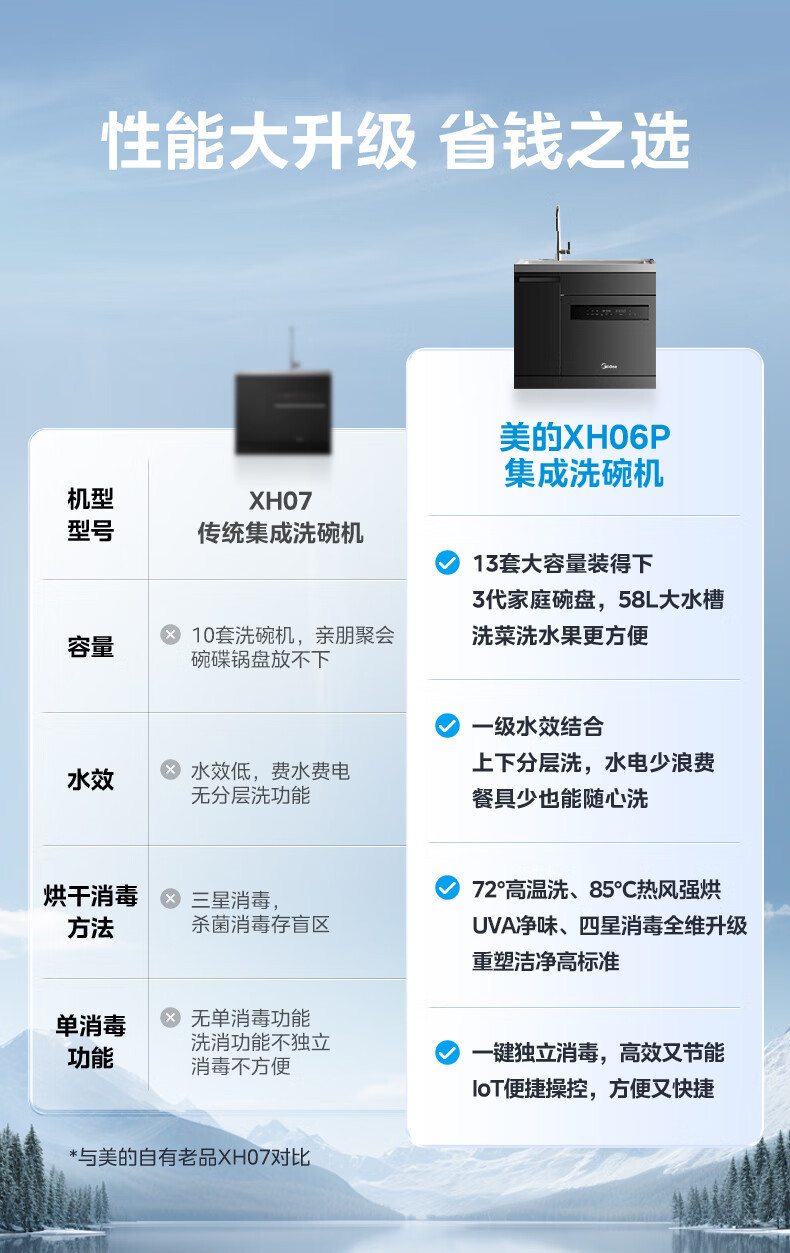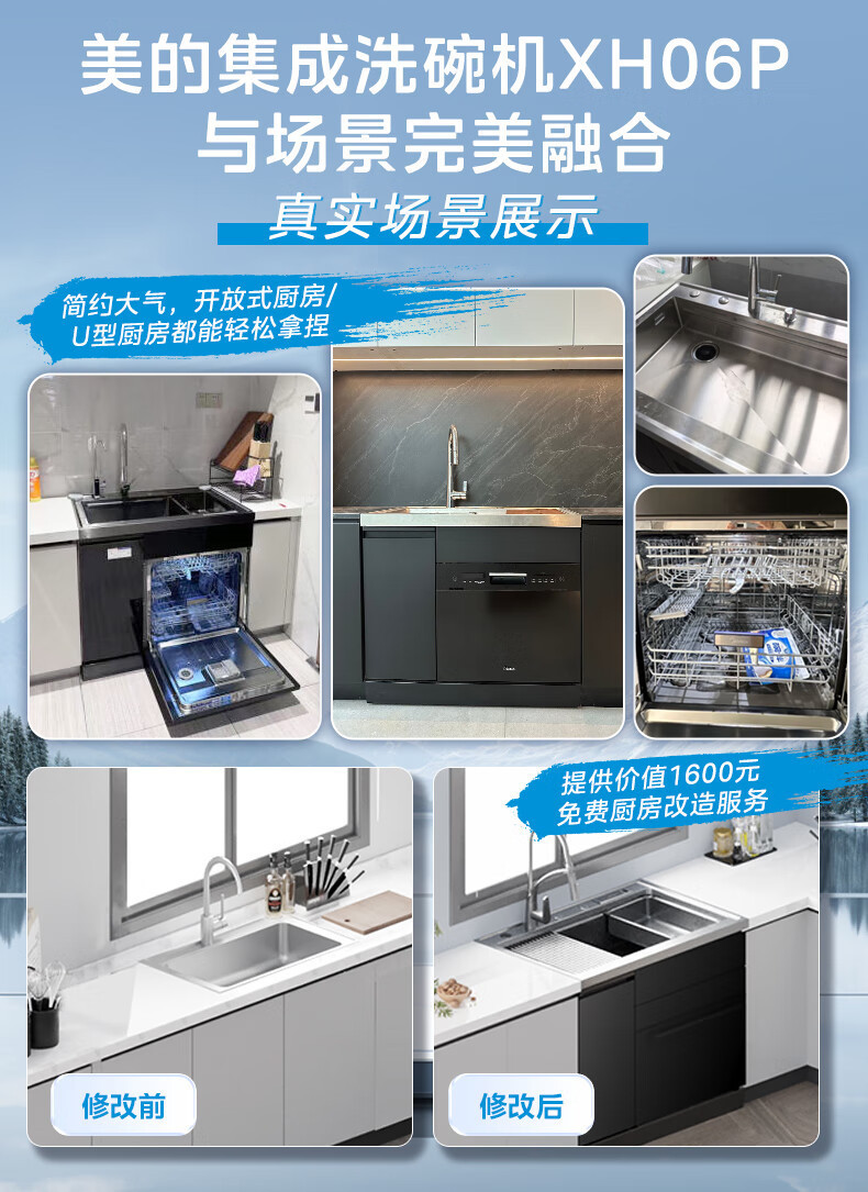 Midea [XH06P] 일체형 일체형 싱크대 식기세척기 13세트 용량 식기세척기 대형 싱글싱크 식기세척기스토어 가기