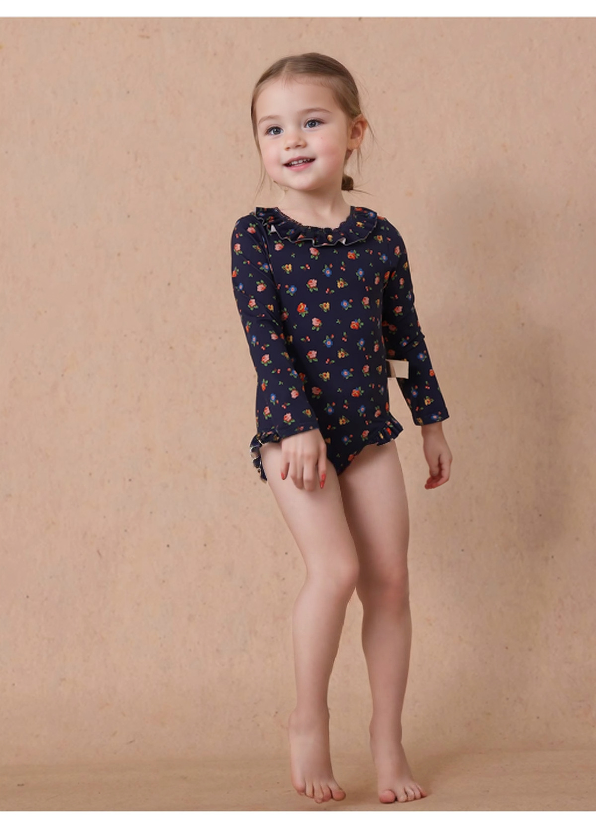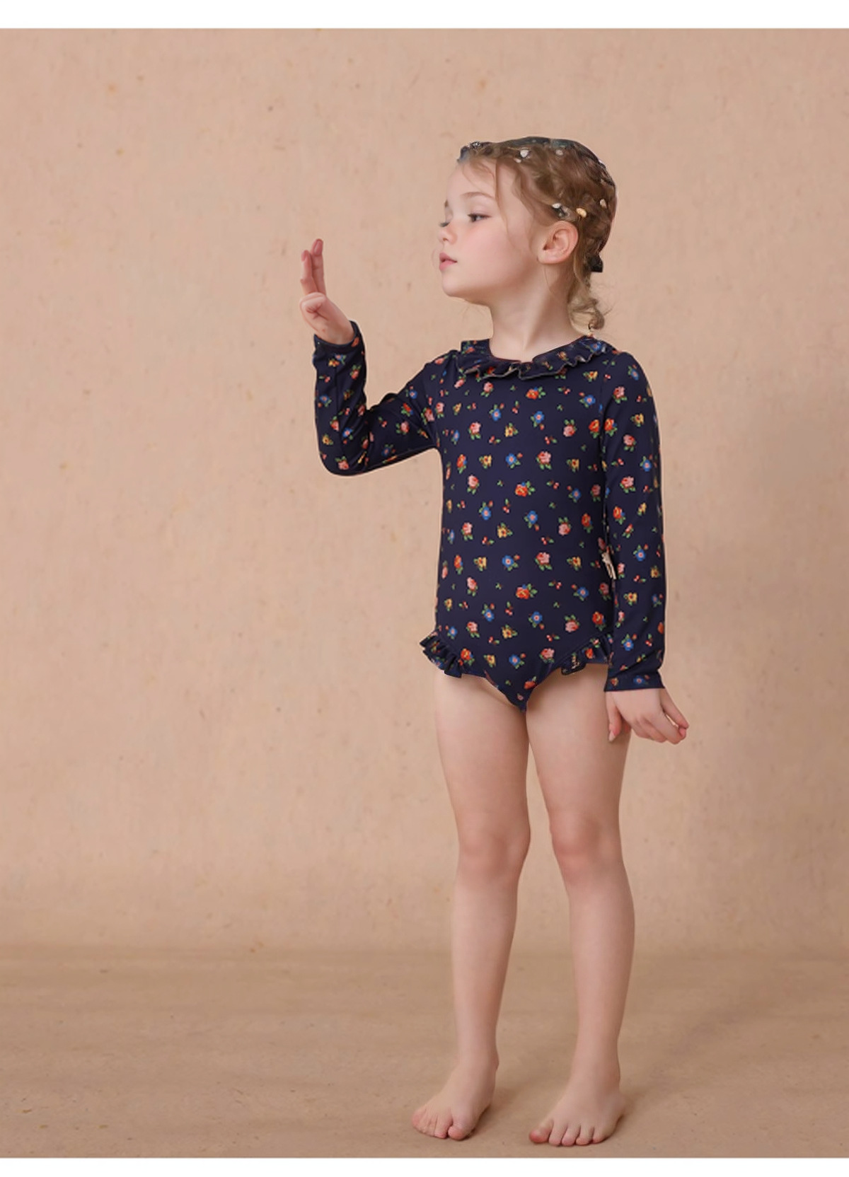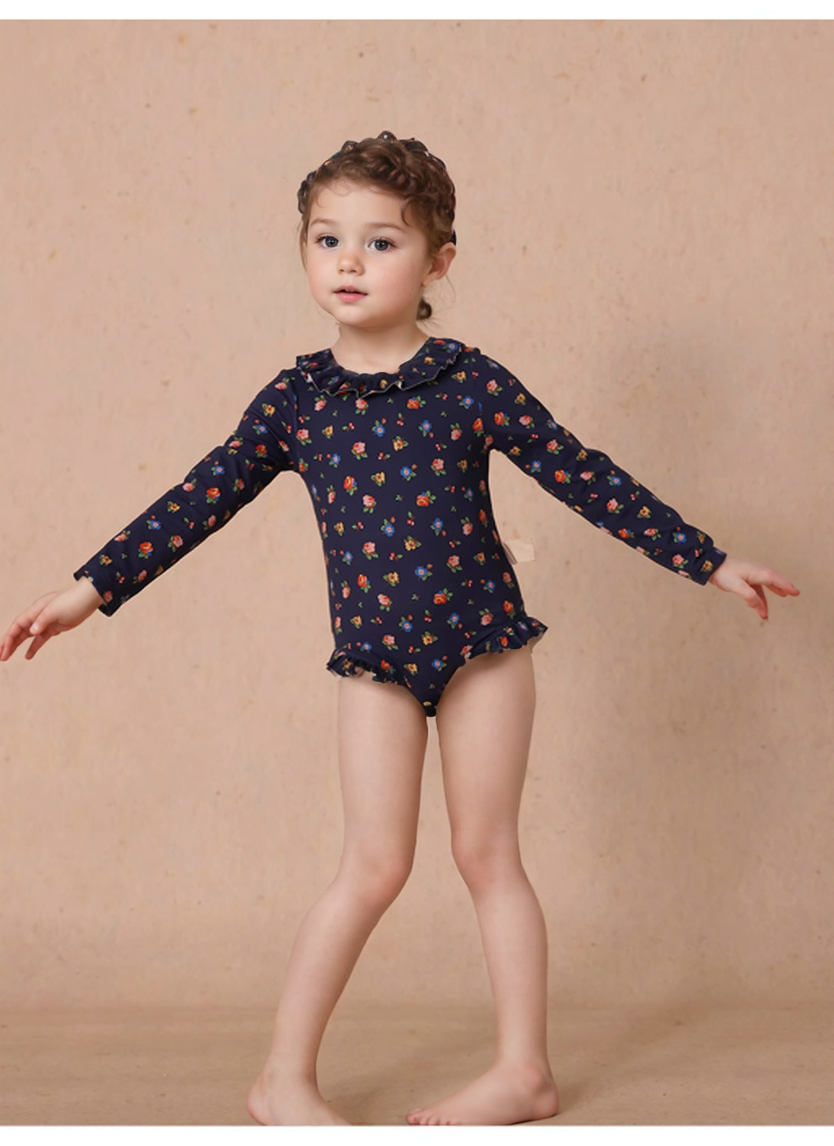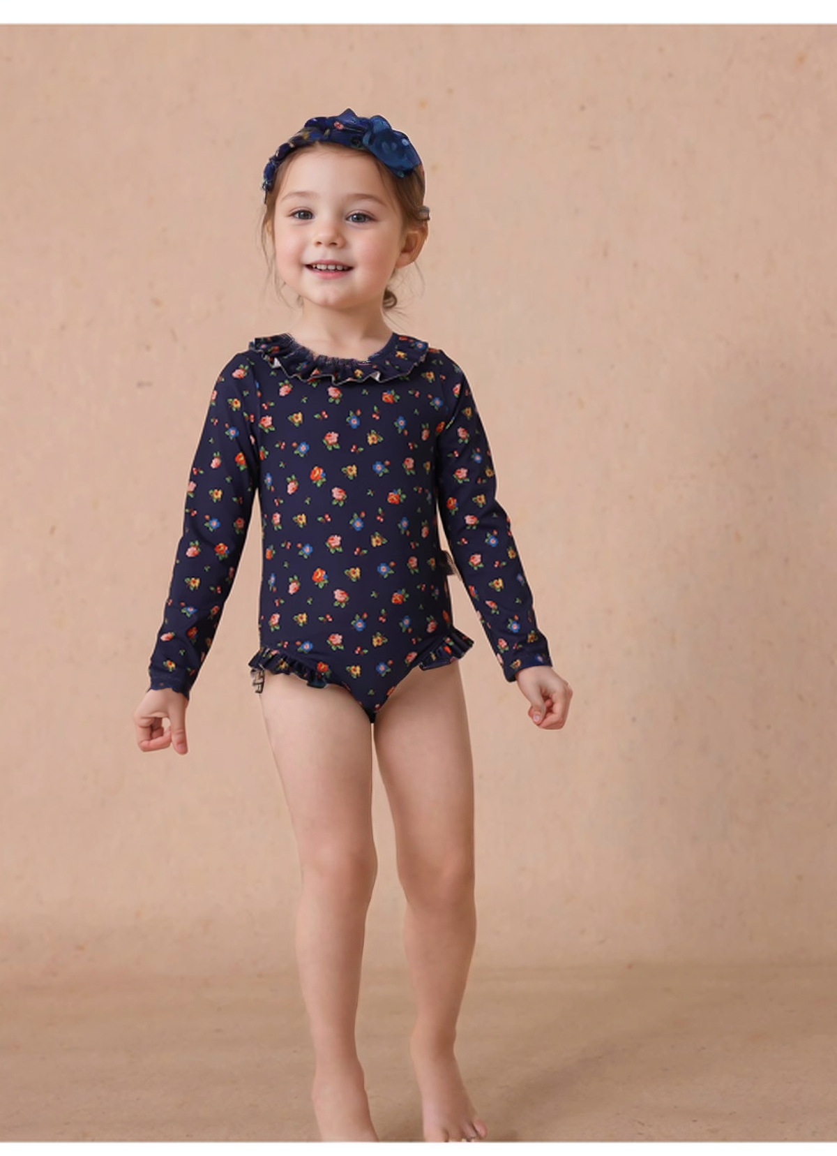 여자 여름 인쇄 태양 보호 빠른 건조 수영복 아기 수영복 모자 세트 아기 소녀 레이스 중공 긴 소매 수영복