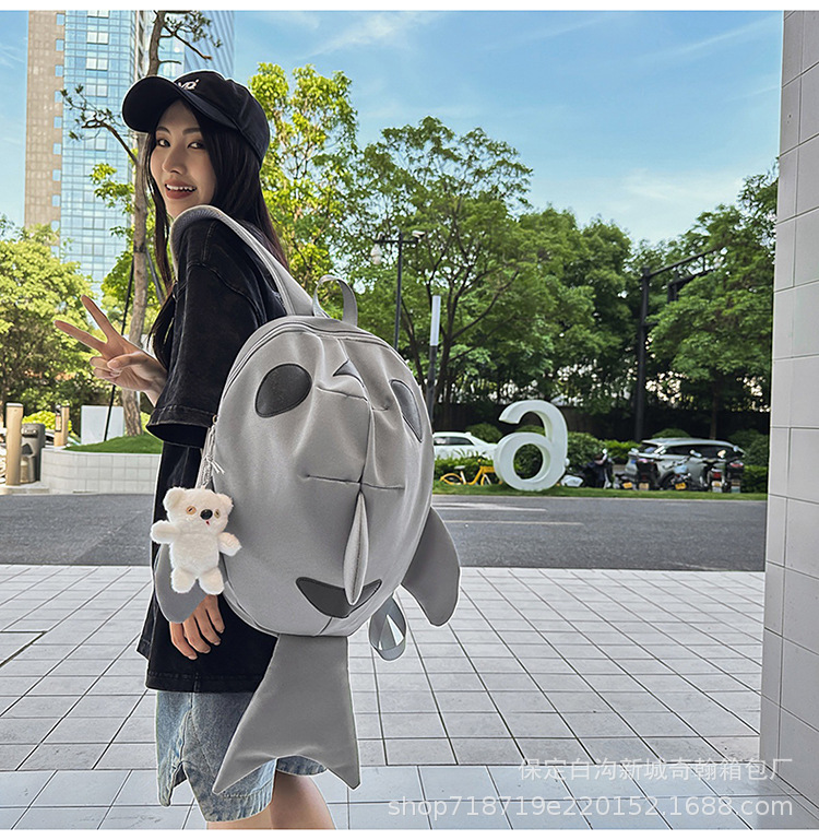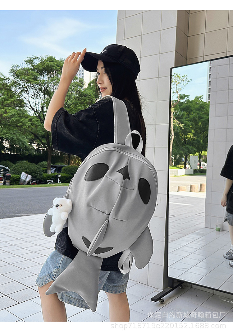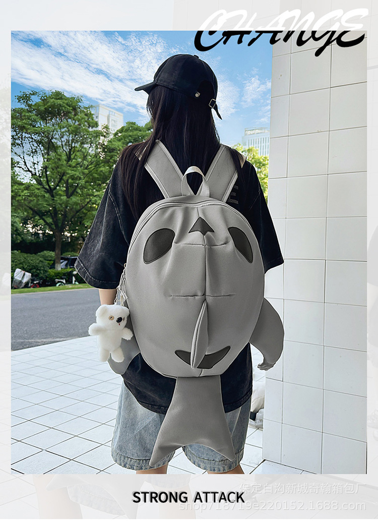 상어 배낭 남자 유행 브랜드 스트리트 틈새 디자인 맞춤형 배낭 크리 에이 티브 여자 고등학교 대학생 가방