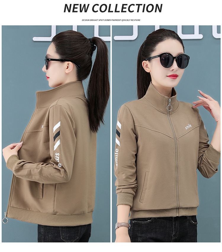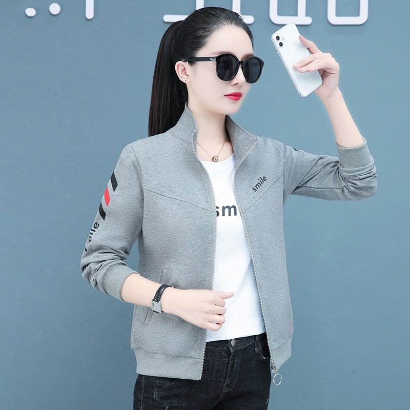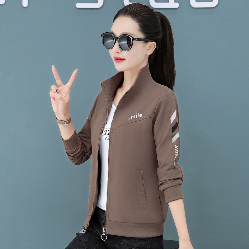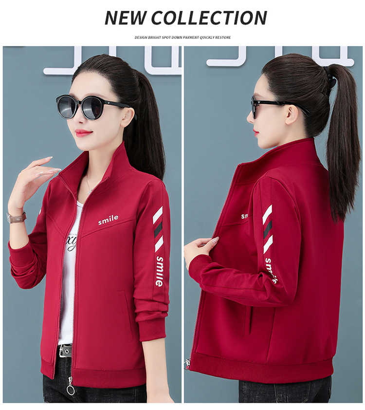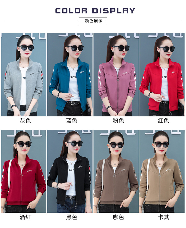 여성을위한 고흐 패션 캐주얼 스탠드 업 칼라 재킷 봄, 가을 중년 어머니 니트 카디건 짧은 스포츠 지퍼 셔츠