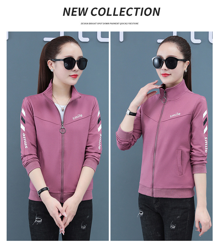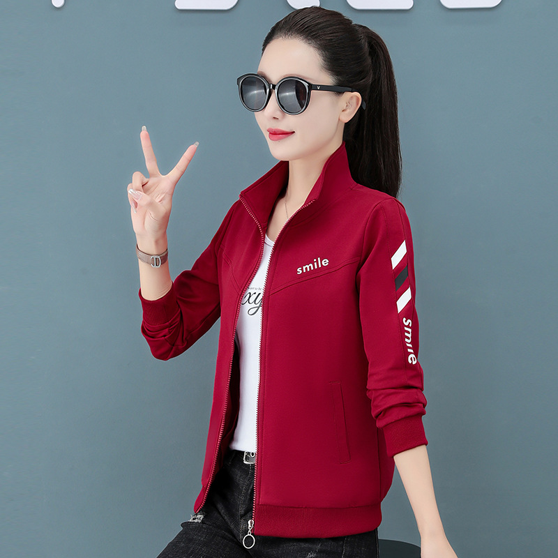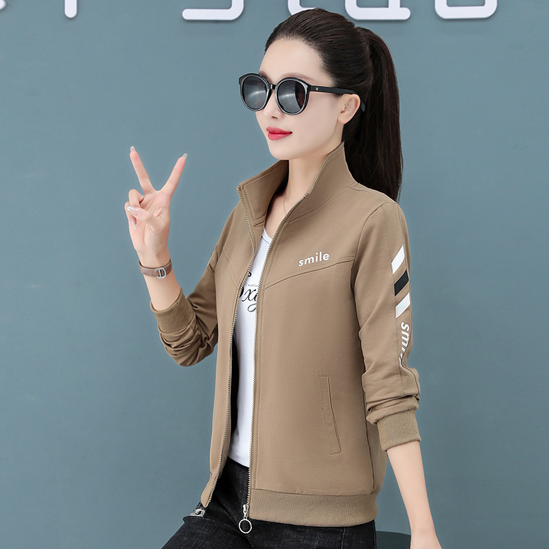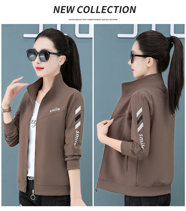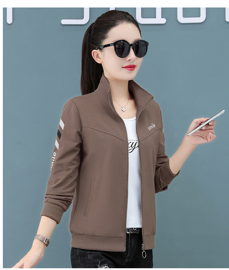 여성을위한 고흐 패션 캐주얼 스탠드 업 칼라 재킷 봄, 가을 중년 어머니 니트 카디건 짧은 스포츠 지퍼 셔츠