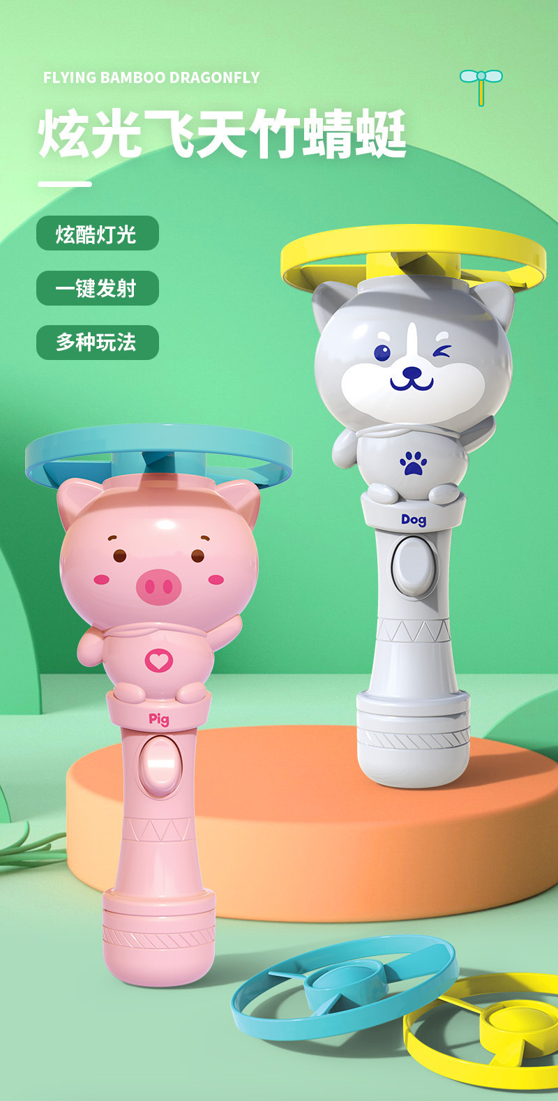 어린이 장난감 빛나는 대나무 잠자리 총소리 권총 회전 플래시 UFO 나이트 마켓 노점 공급 도매스토어 가기