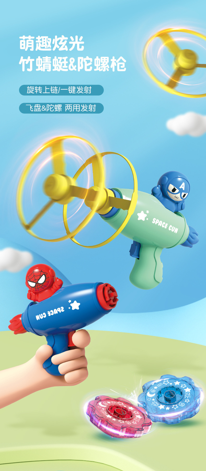어린이 장난감 빛나는 대나무 잠자리 총소리 권총 회전 플래시 UFO 나이트 마켓 노점 공급 도매