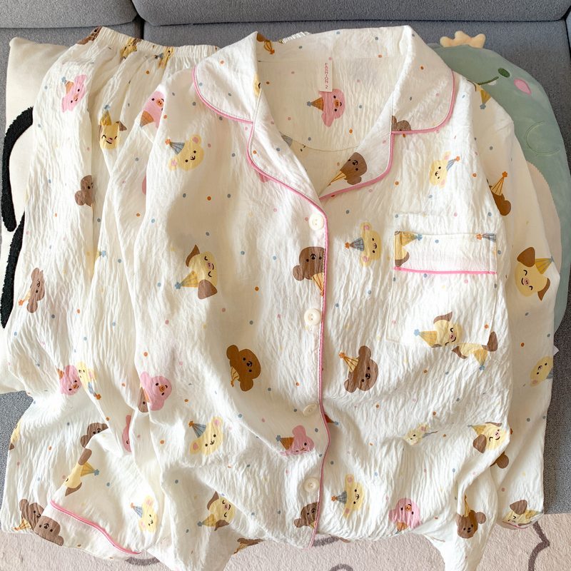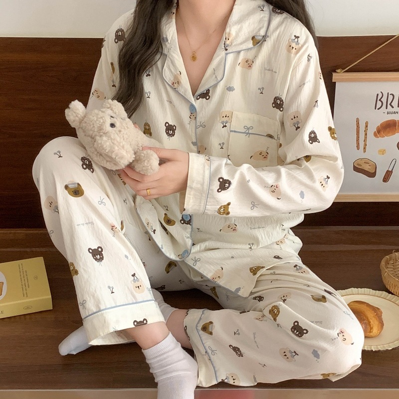 • (가슴패드 없음) [윤두면] 개구리 체크무늬 곰 긴팔+바지