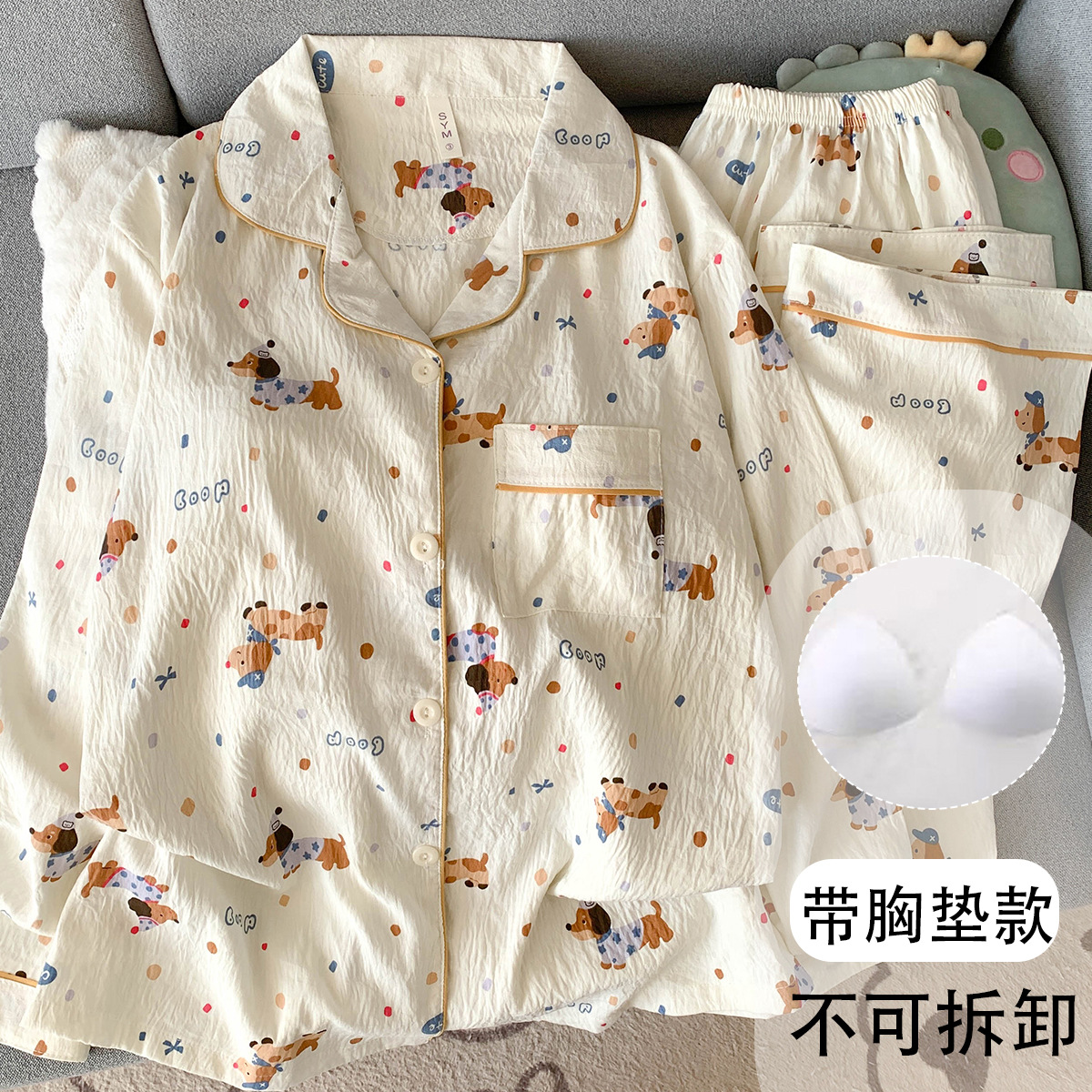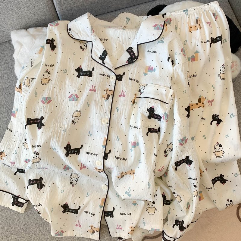 • (고정가슴패드) [윤두미안] 도트무늬 닥스훈트 긴팔+바지