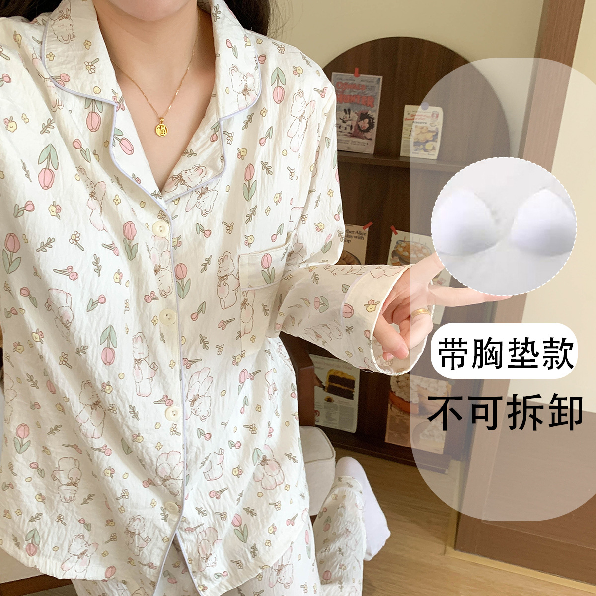 • (고정가슴패드) [윤두미안] 튤립밀크래빗 긴팔+바지