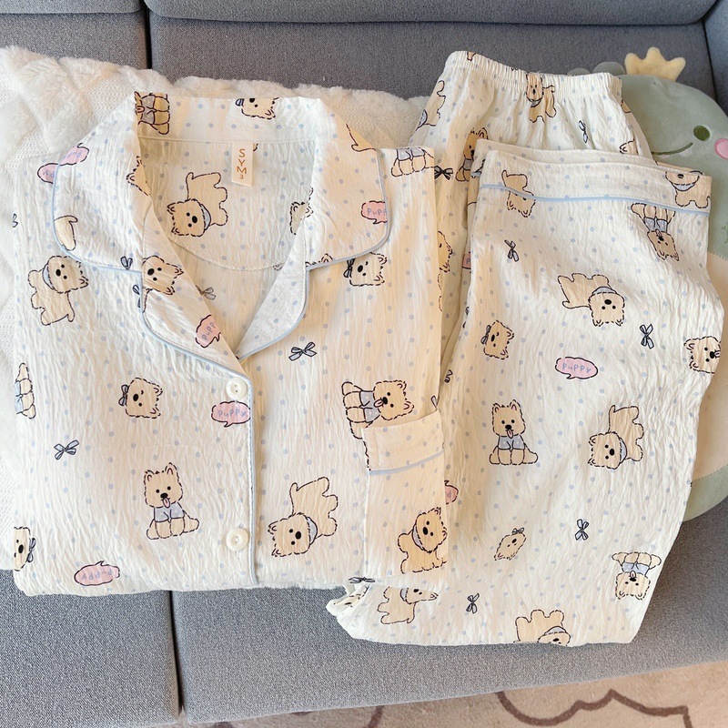 • (고정가슴패드) [윤두미안] 와우와우 강아지 긴팔+바지