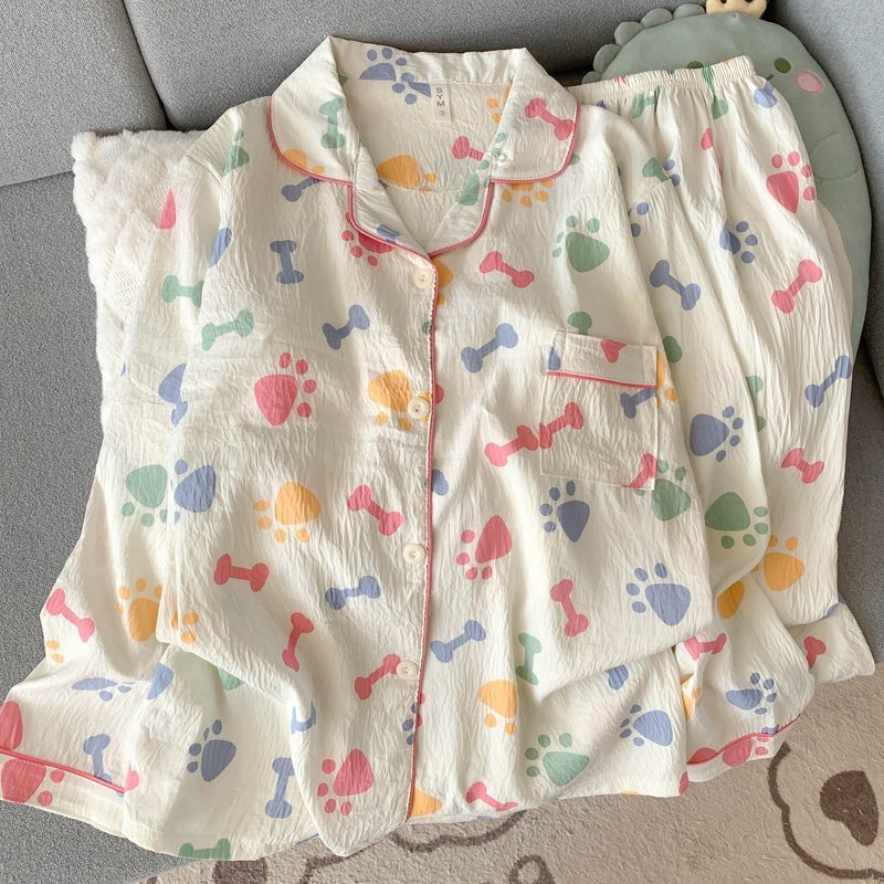 • (가슴패드 없음) [윤두면] 컬러풀 발자국 긴팔+바지