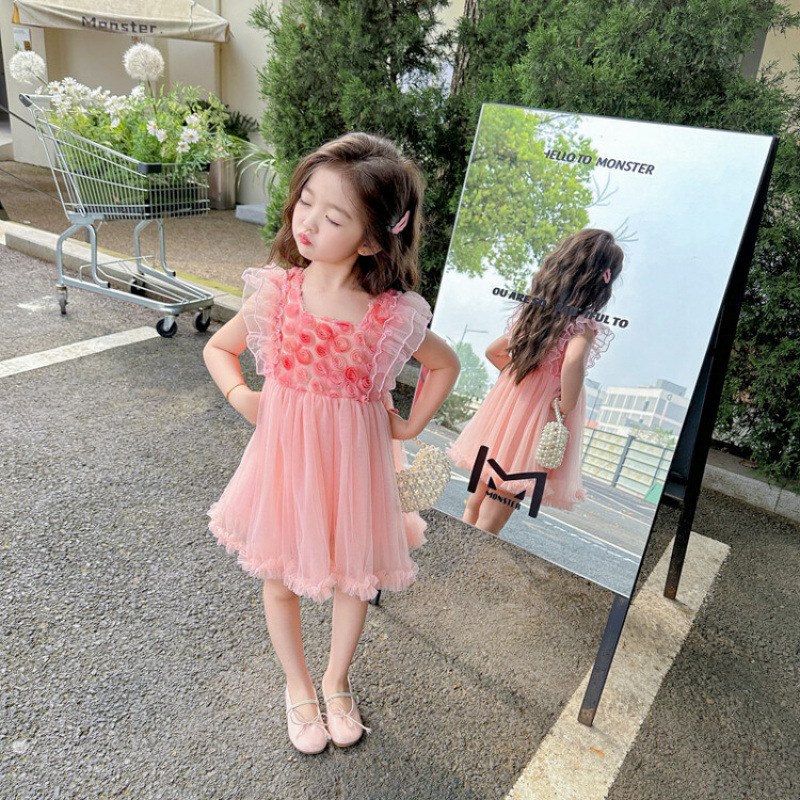 여자 여름 장미 드레스 여자 2025 새로운 아기 여름 드레스 어린이 공주 접합 거즈 스커트스토어 가기