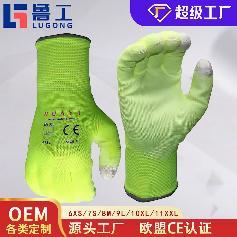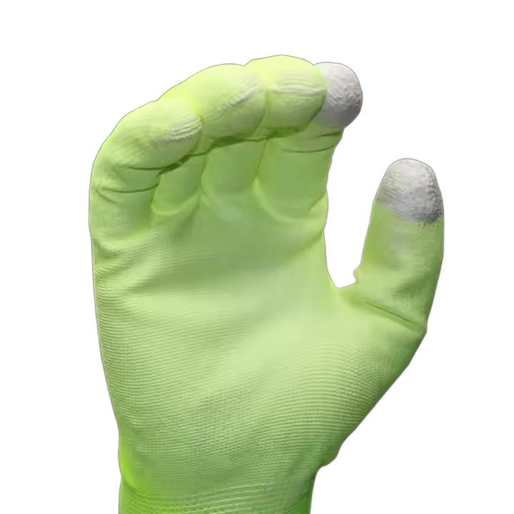 맞춤형 형광 폴리에스테르 안감 PU 손바닥 코팅 구리 섬유 정전기 방지 안전 장갑 터치스크린 작업 장갑