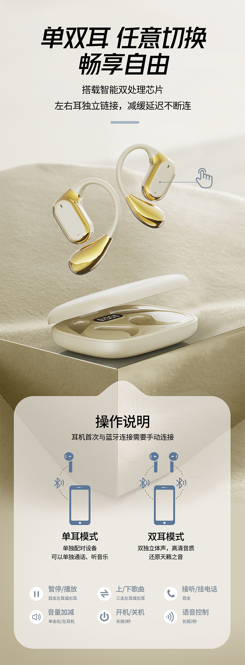 신제품 Q11 귀걸이형 블루투스 헤드셋 오픈형 비인이어 초선명 음성 통화 스마트 터치 헤드셋
