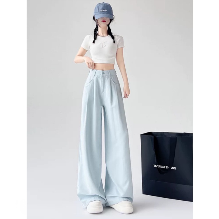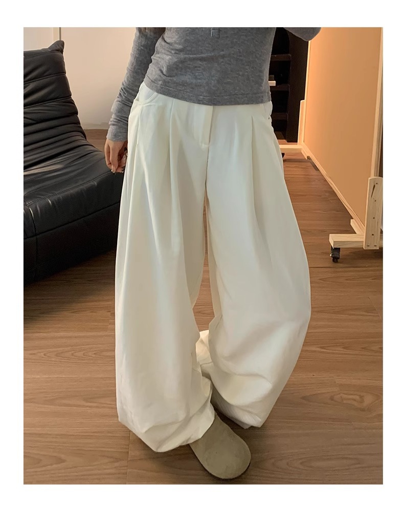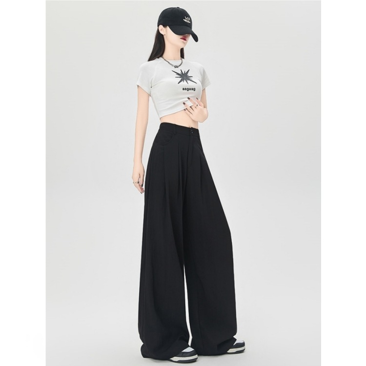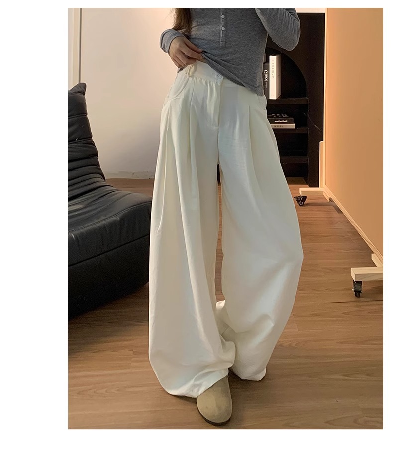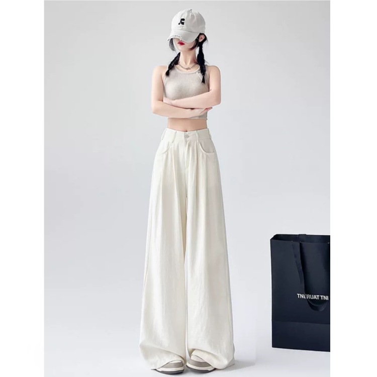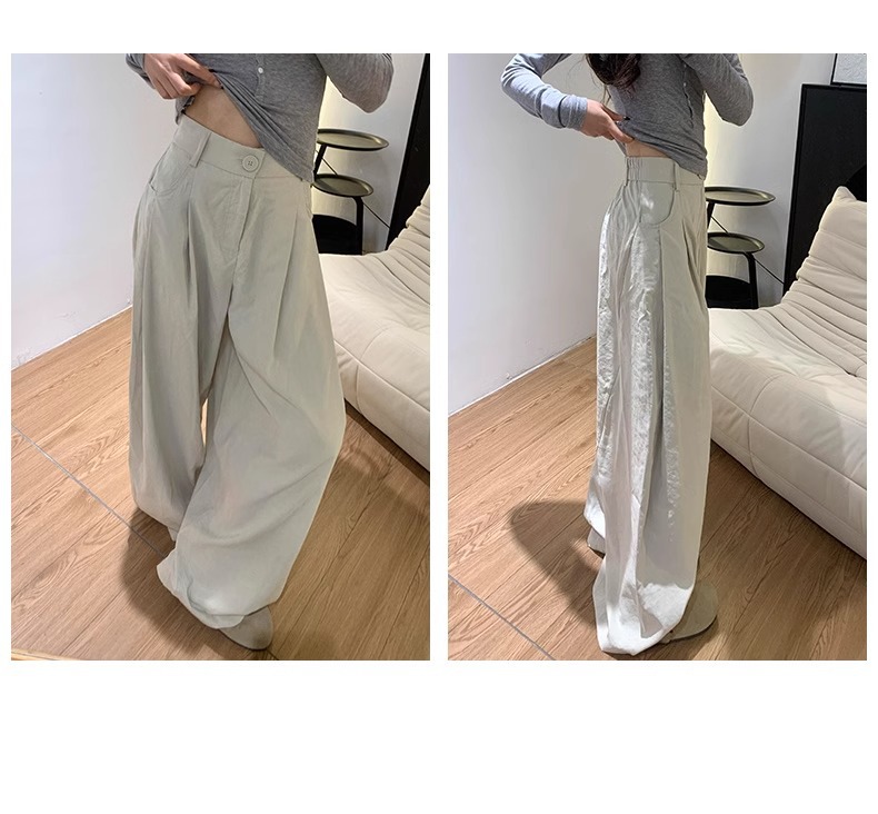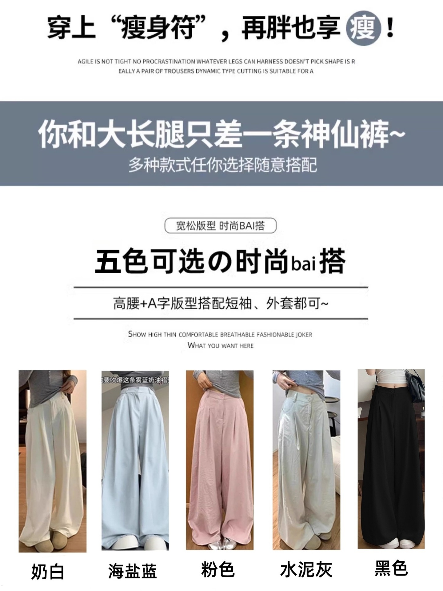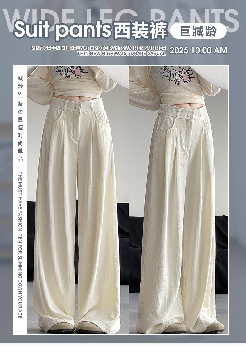 Douyin 품질 크림 정장 와이드 레그 팬츠 여성 여름 2025 새로운 루즈 슬리밍 캐주얼 드레이프 스트레이트 야마모토 바지스토어 가기