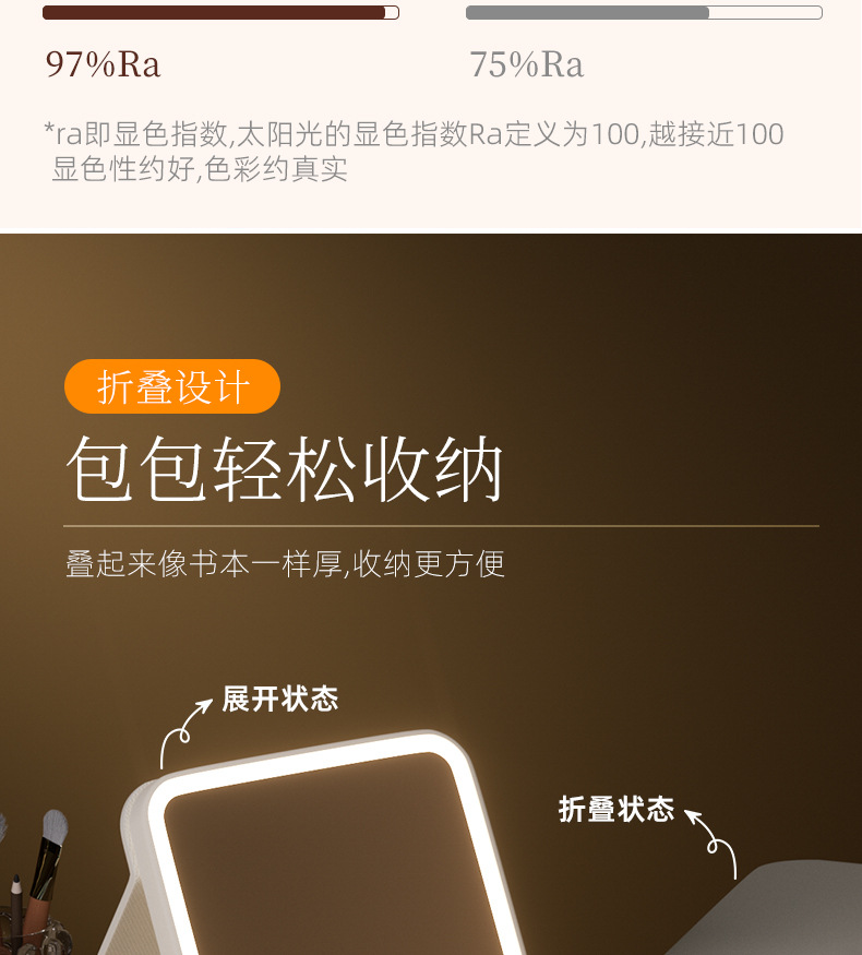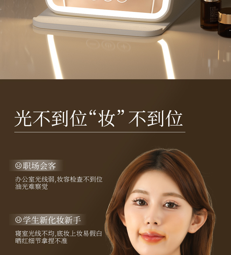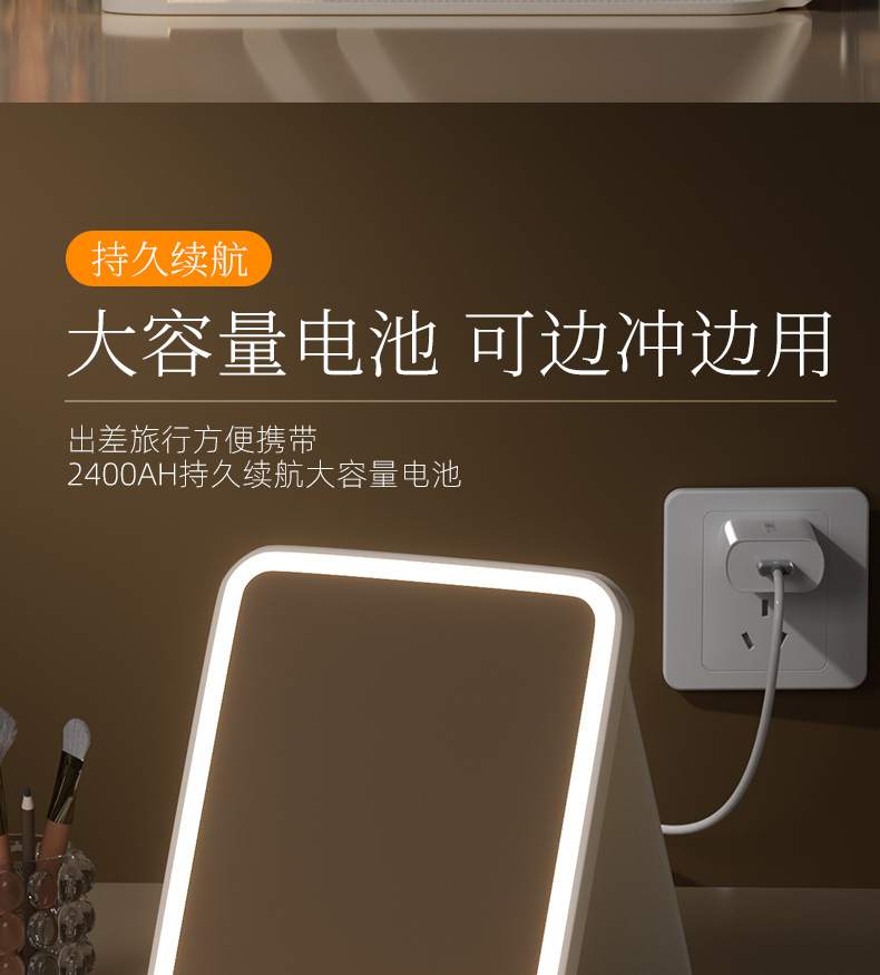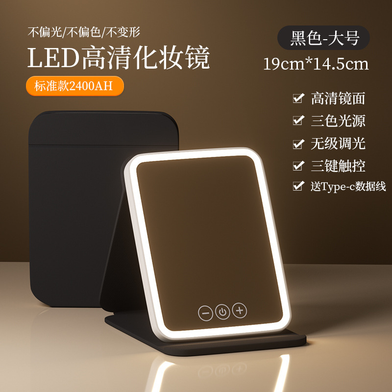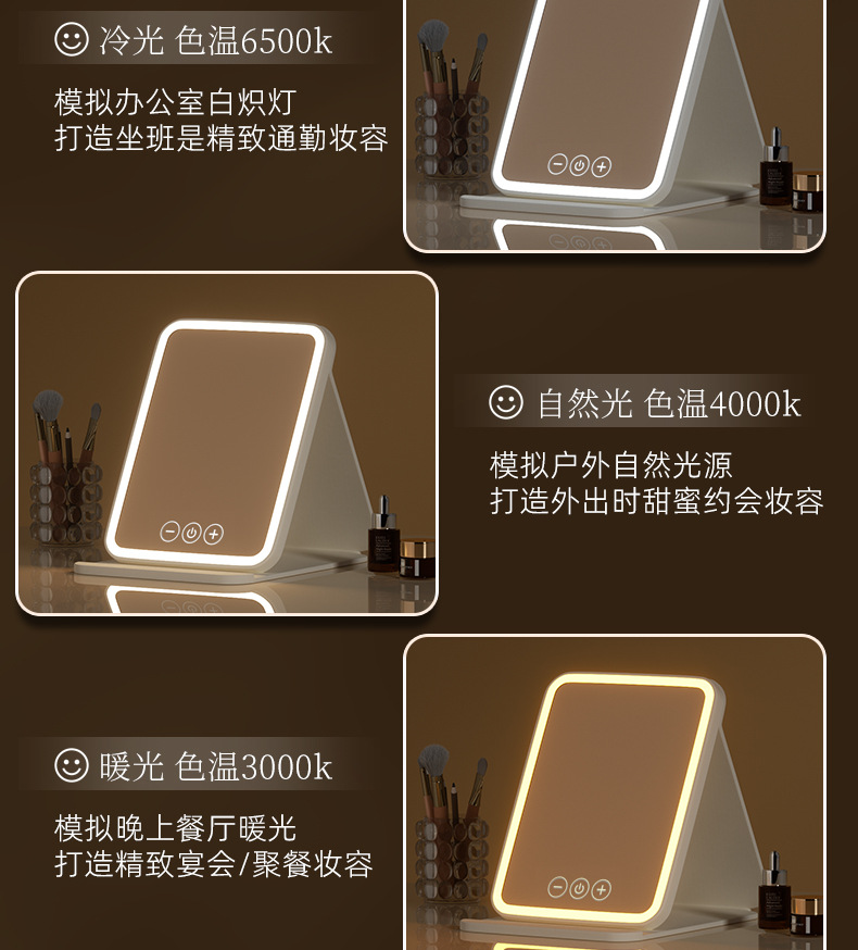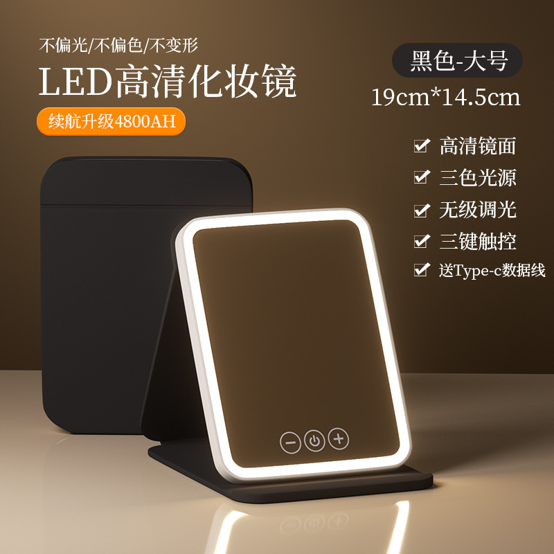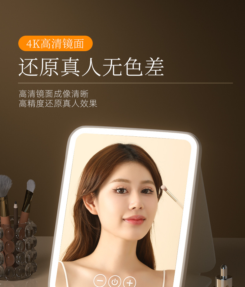 조명이있는 화장 거울 led 휴대용 접이식 데스크탑 스탠드 학생 기숙사 홈 거울 스마트 미용 거울