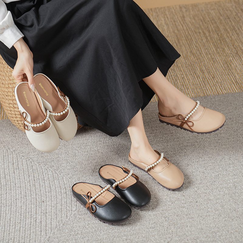 2025 신상 봄 여름 샌들, 메리제인 젠틀 이브닝 슈즈, 여성용 플랫 소프트솔 발가락 반슬리퍼스토어 가기