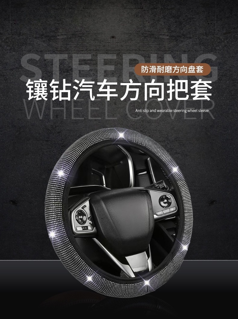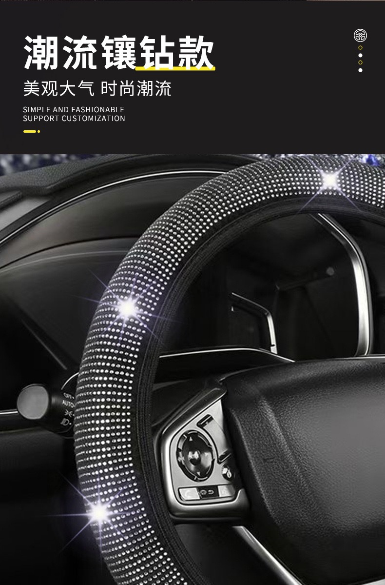 새로운 모조 다이아몬드 자동차 스티어링 휠 커버 그물 레드 사계절 여성 자동차 핸들 커버 아마존 공장 도매스토어 가기