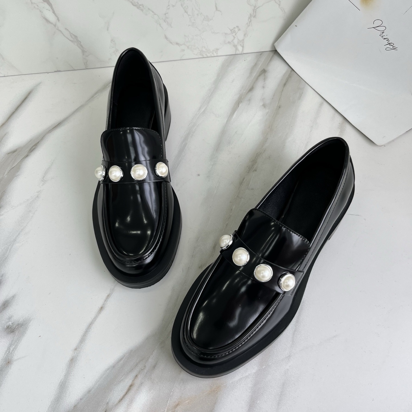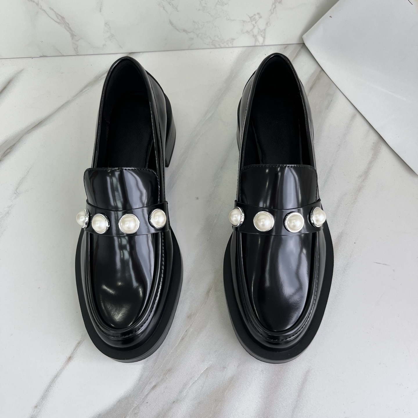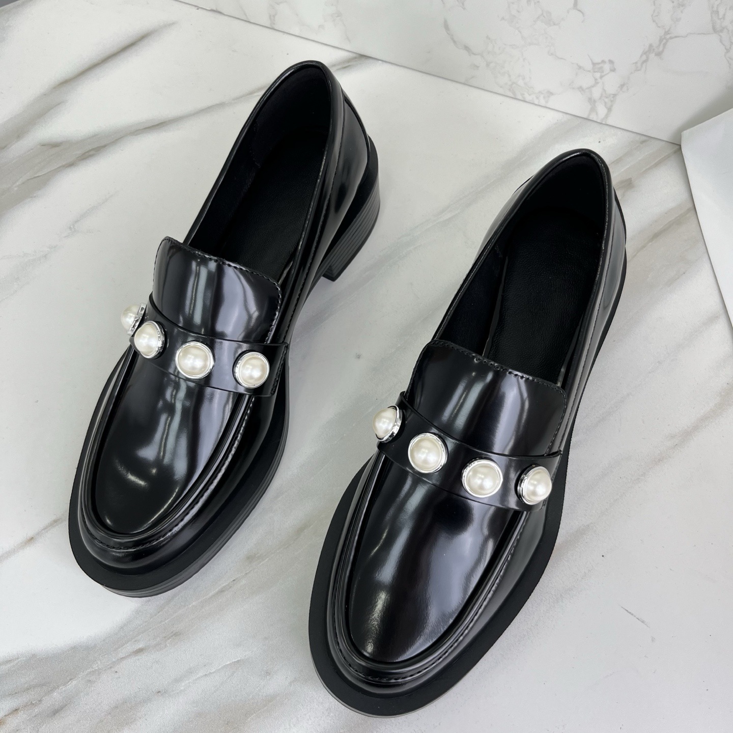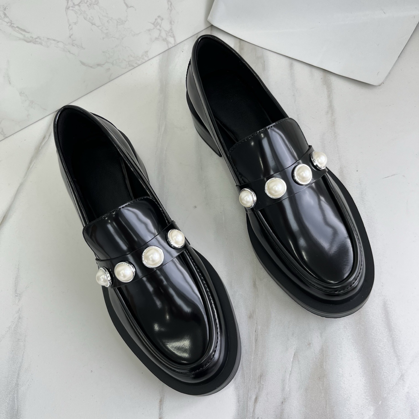 S*W 새로운 스탠다드리스 소 페이턴트 가죽 진주 두꺼운 밑창 신발 로퍼 여성용 작은 가죽 신발 슬립온 신발 여성용 패션 신발