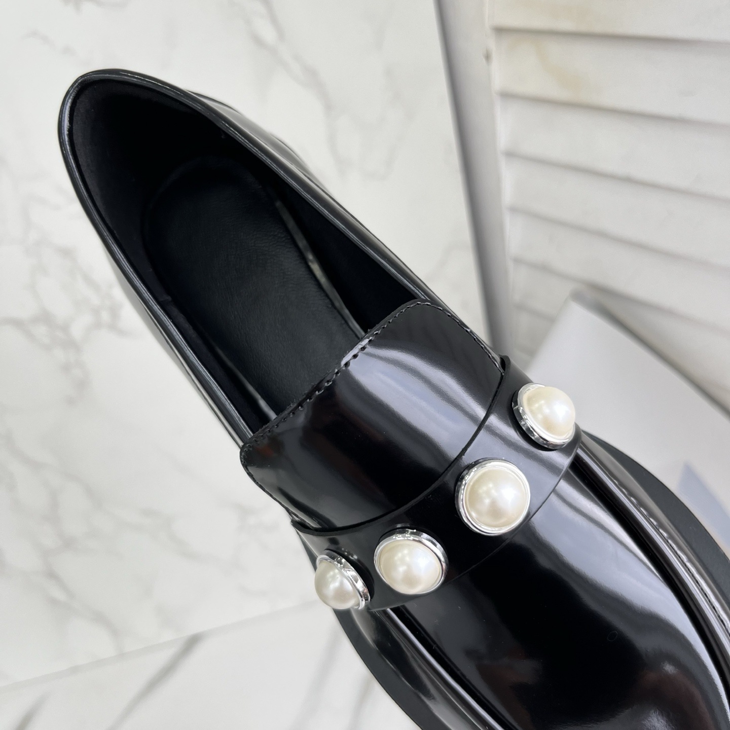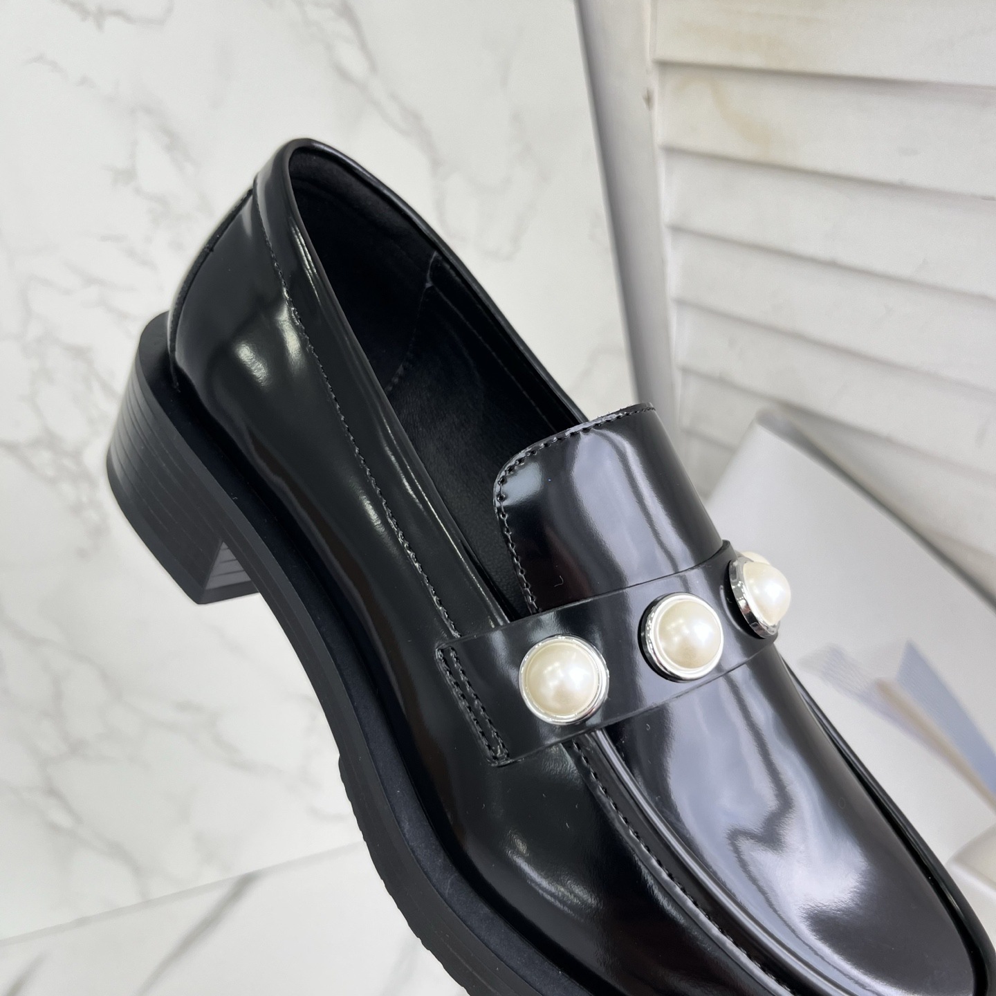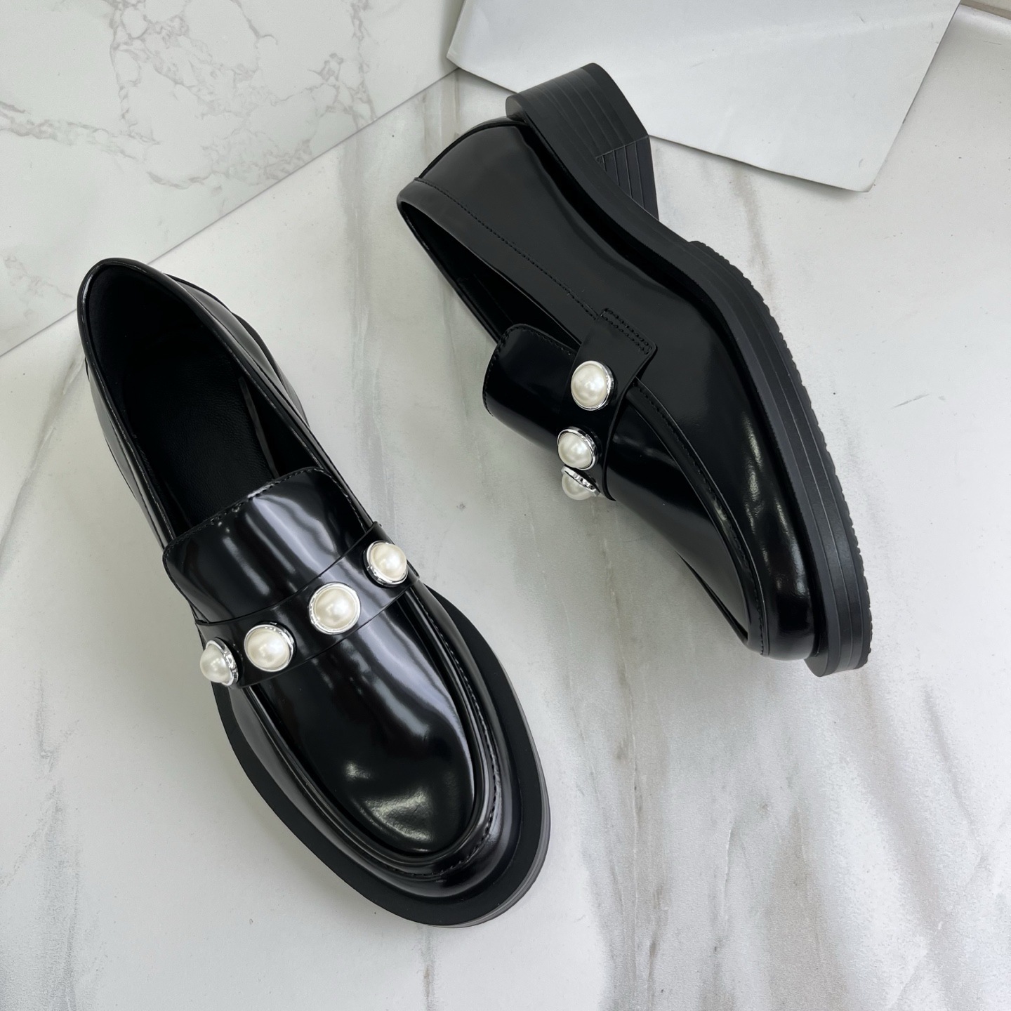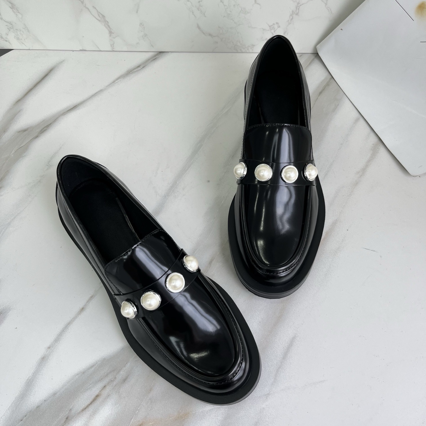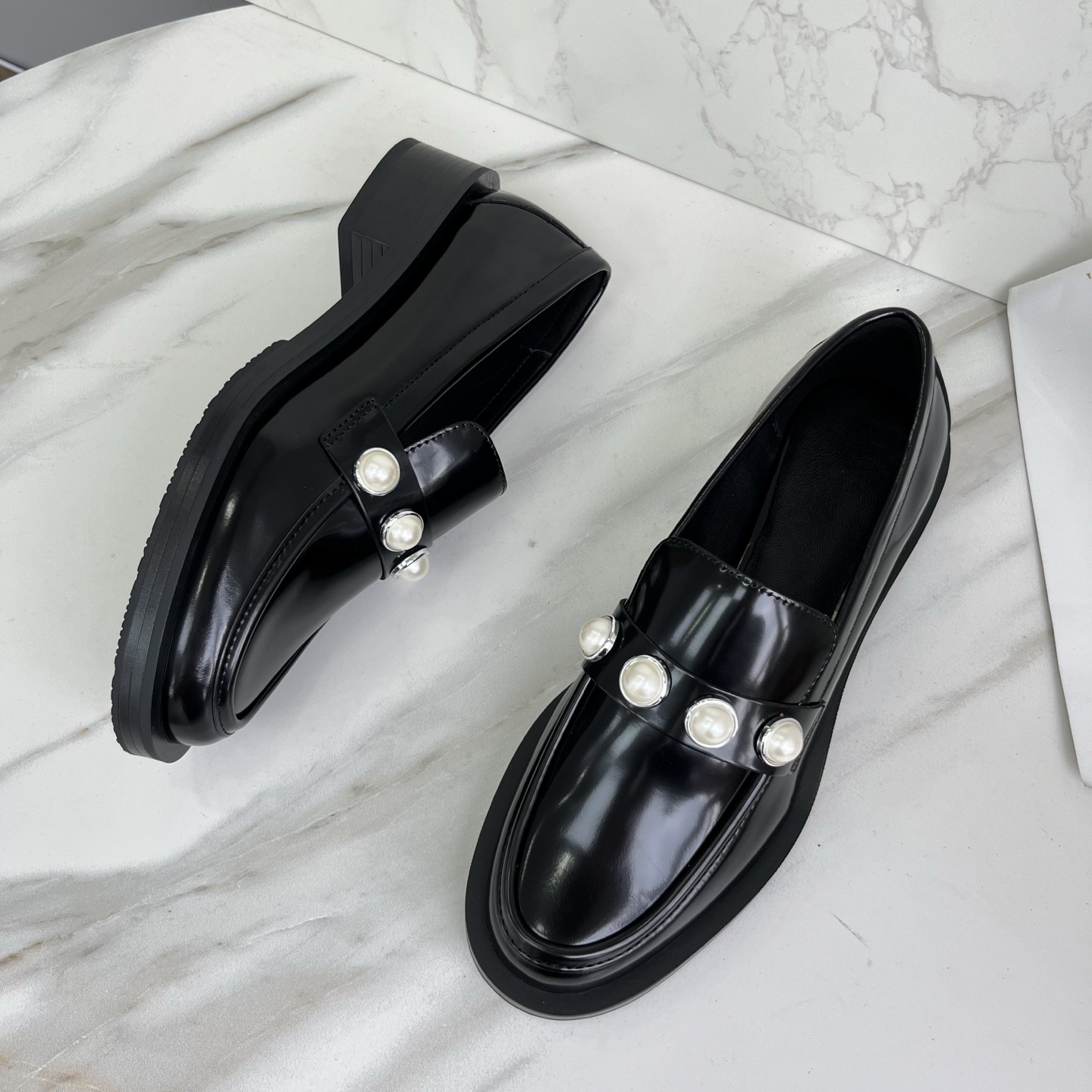 S*W 새로운 스탠다드리스 소 페이턴트 가죽 진주 두꺼운 밑창 신발 로퍼 여성용 작은 가죽 신발 슬립온 신발 여성용 패션 신발