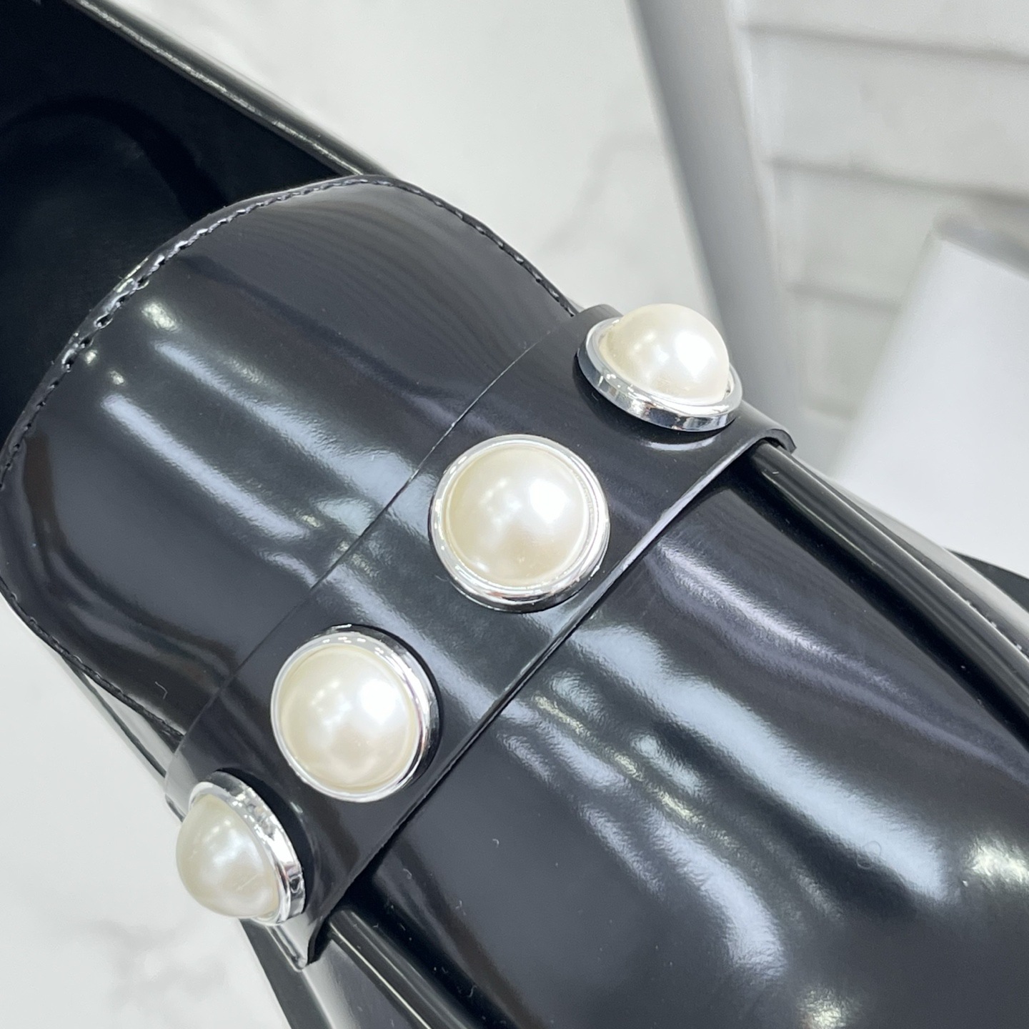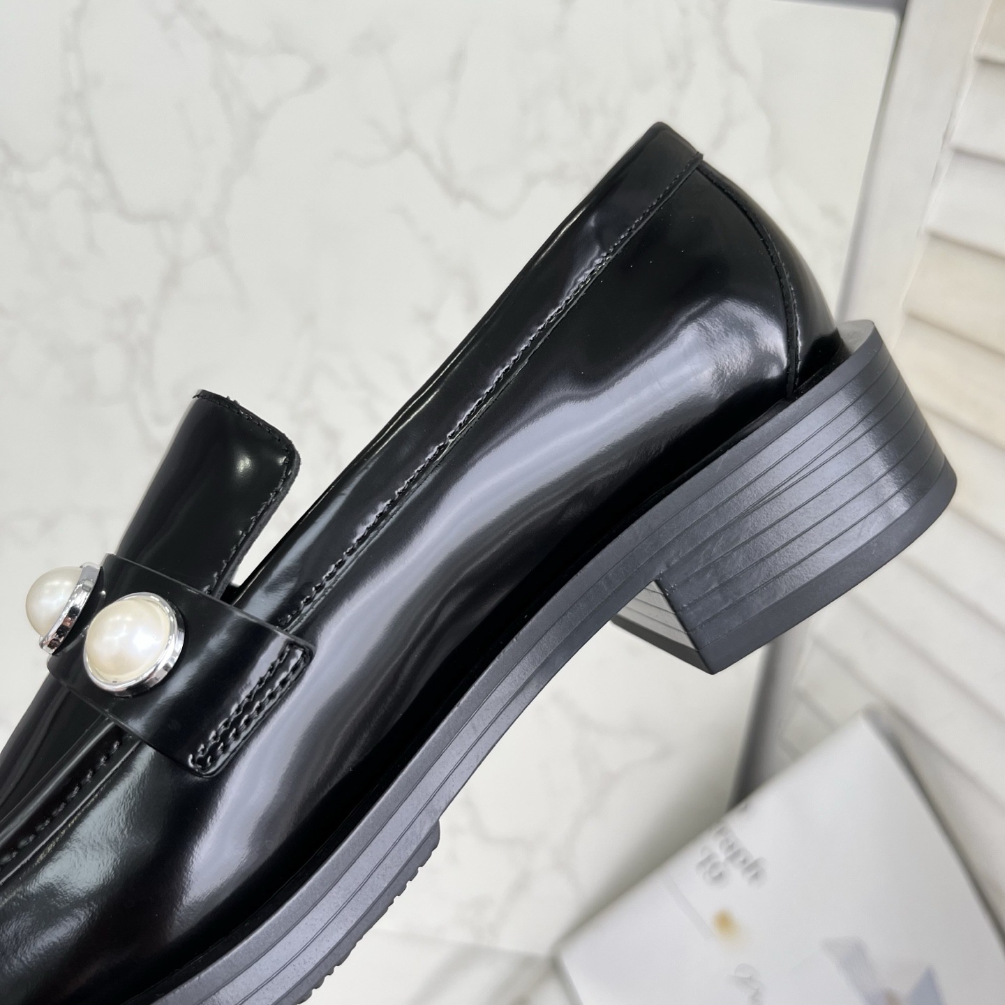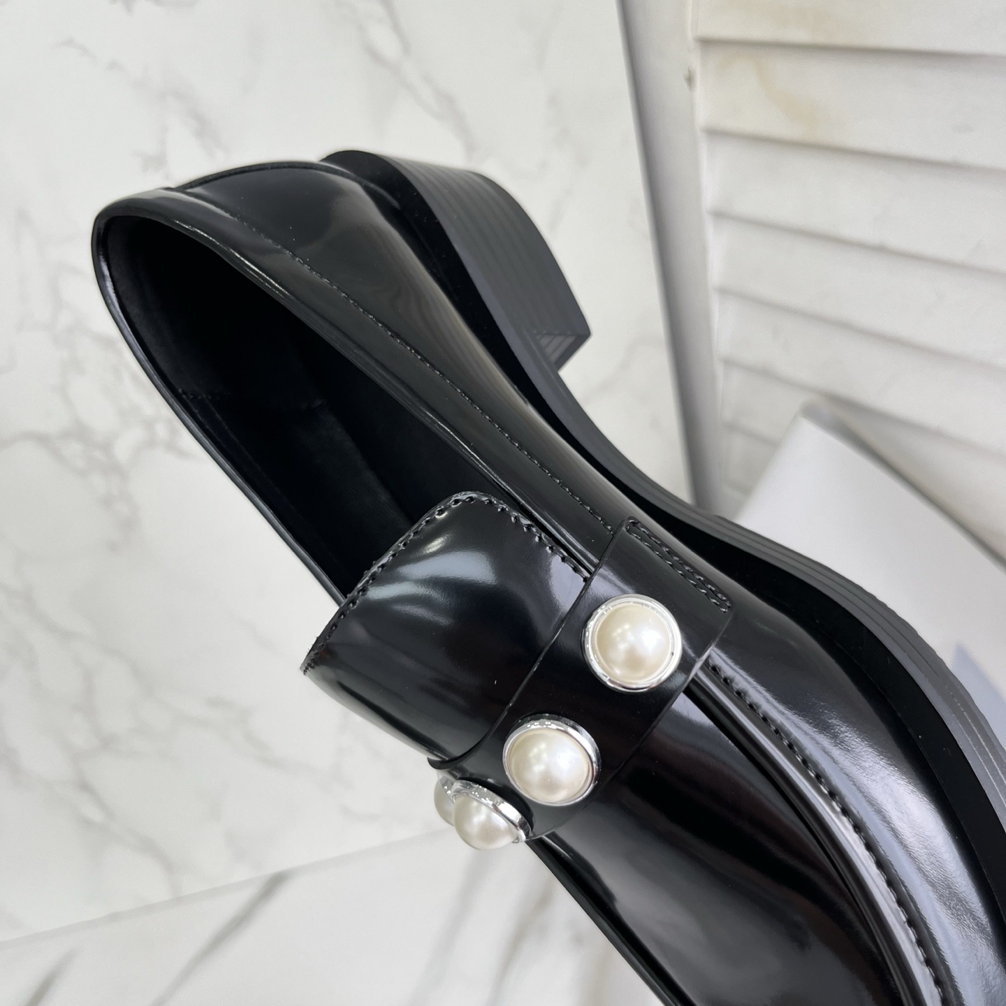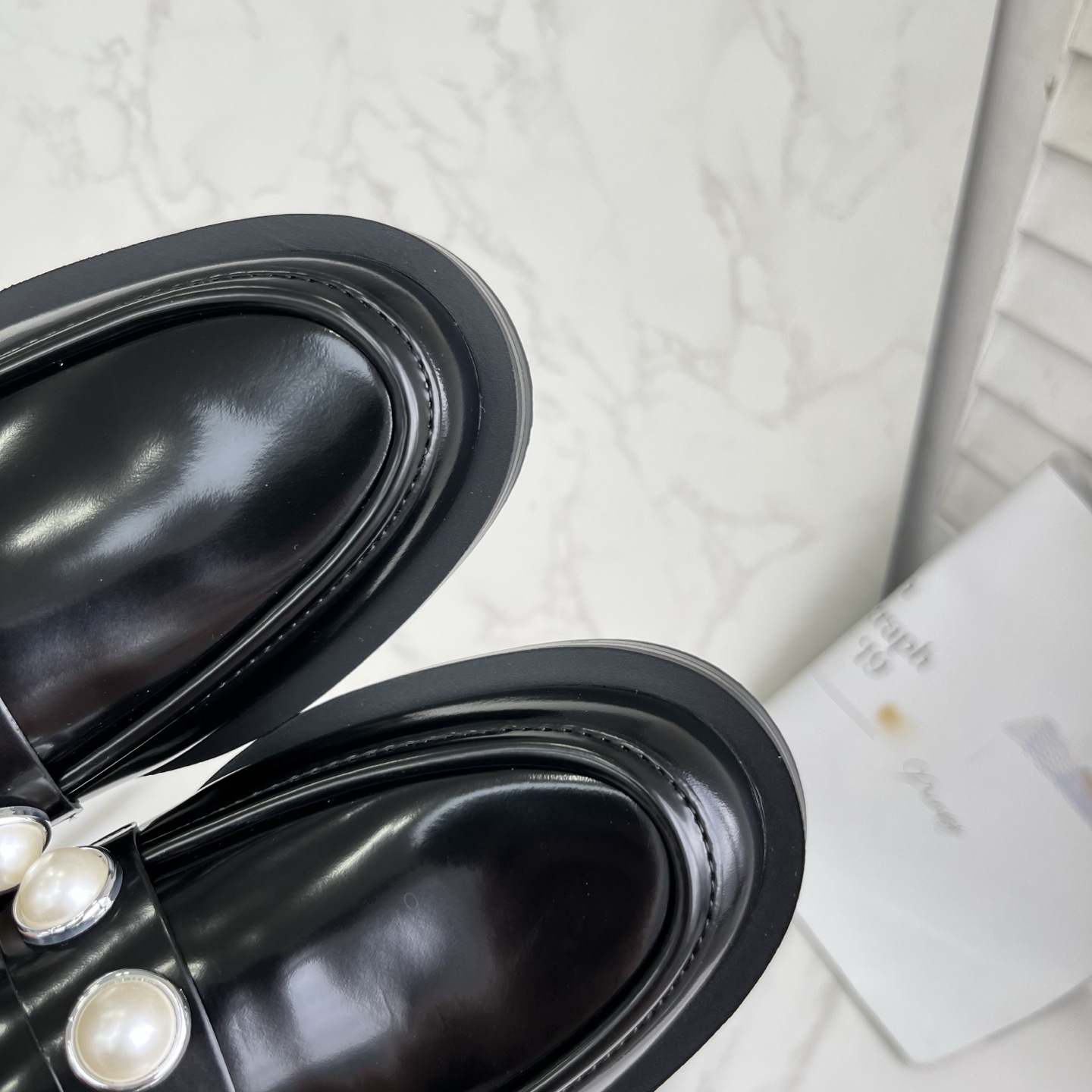 S*W 새로운 스탠다드리스 소 페이턴트 가죽 진주 두꺼운 밑창 신발 로퍼 여성용 작은 가죽 신발 슬립온 신발 여성용 패션 신발