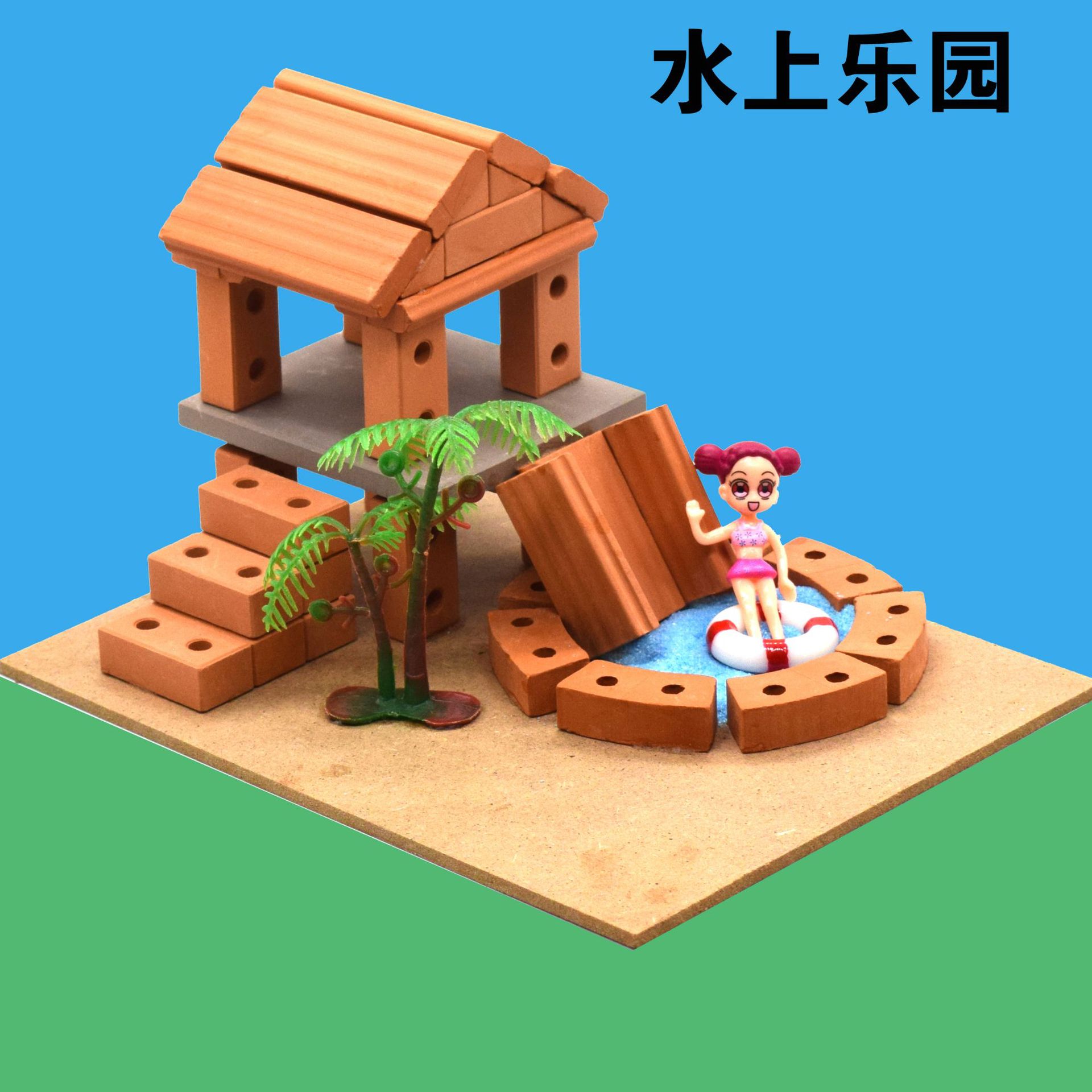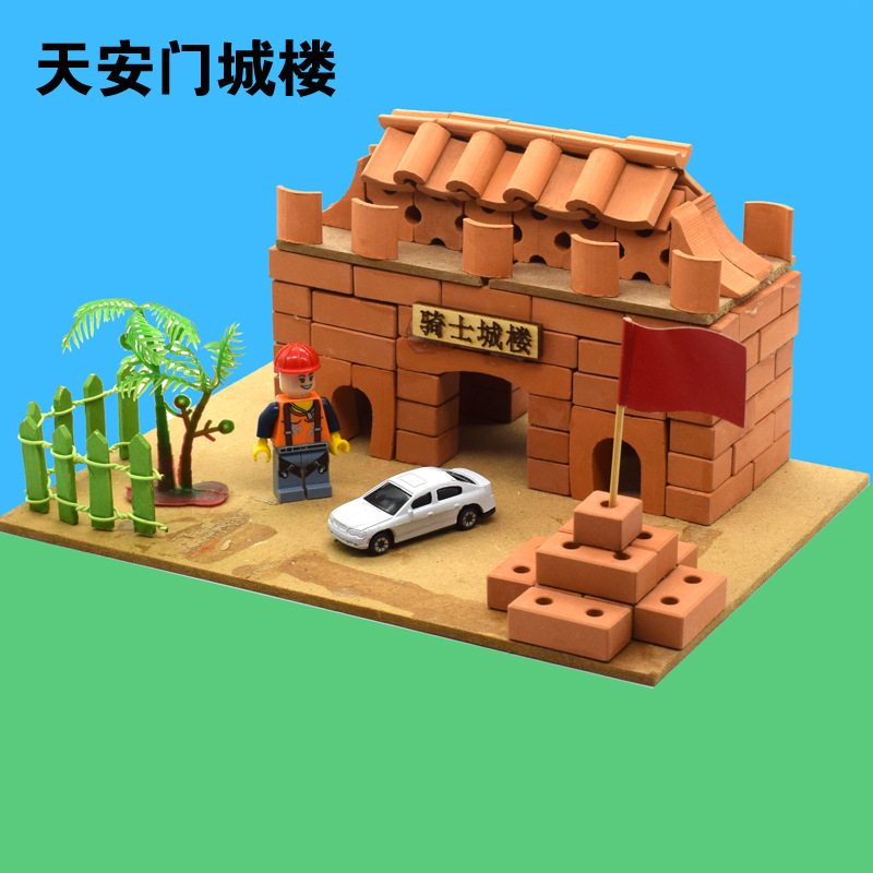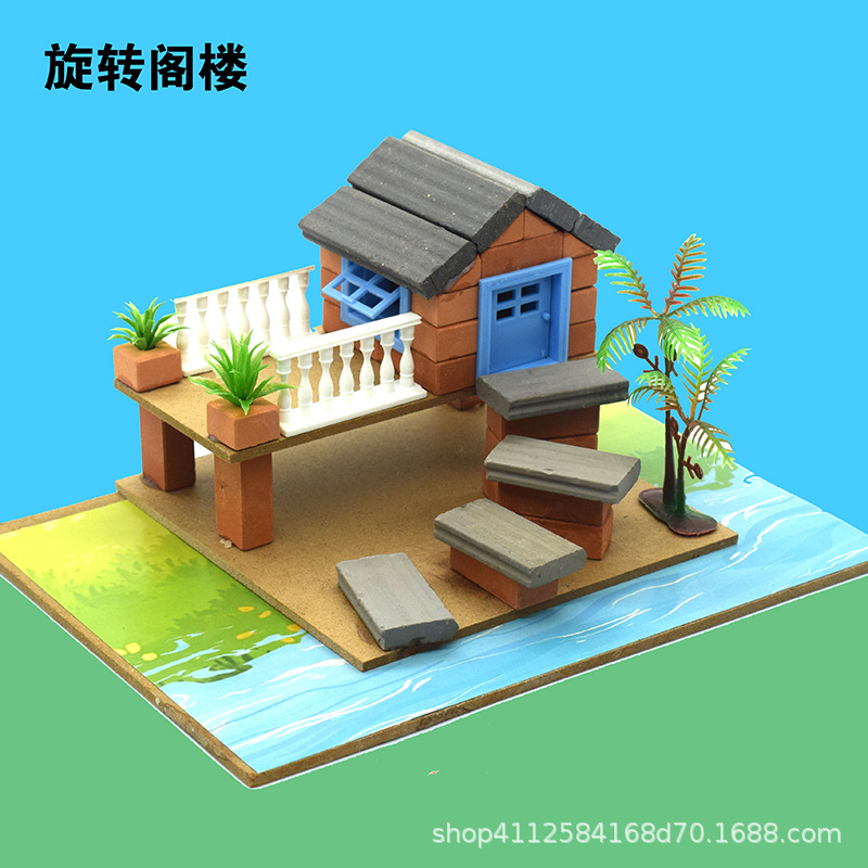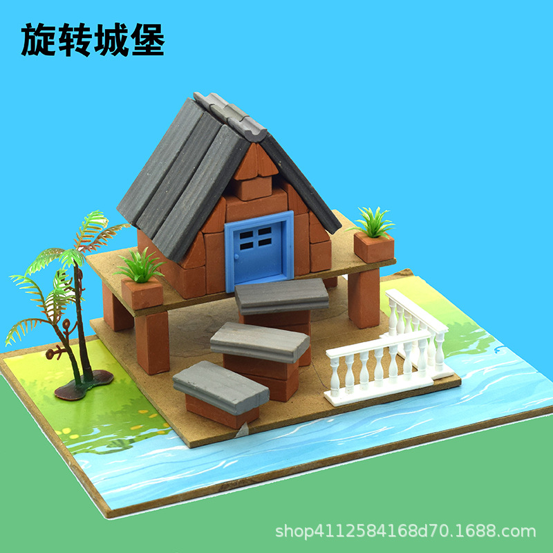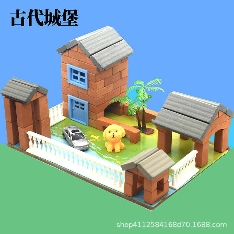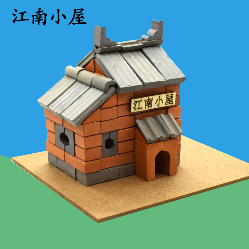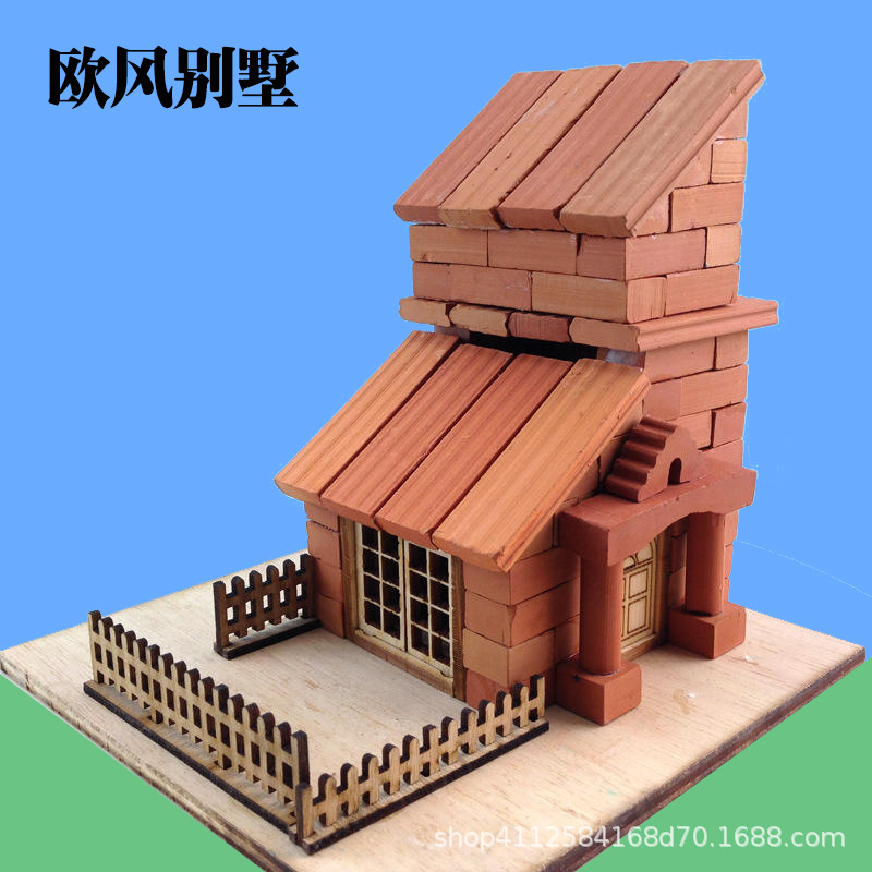 작은 벽돌공 건설 모델 장난감 빌딩 블록 어린이 DIY 작은 벽돌 실제 시멘트 하우스 빌딩 수제 상점스토어 가기