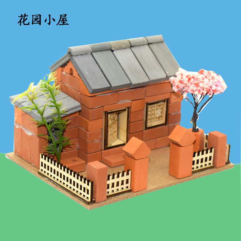 작은 벽돌공 건설 모델 장난감 빌딩 블록 어린이 DIY 작은 벽돌 실제 시멘트 하우스 빌딩 수제 상점