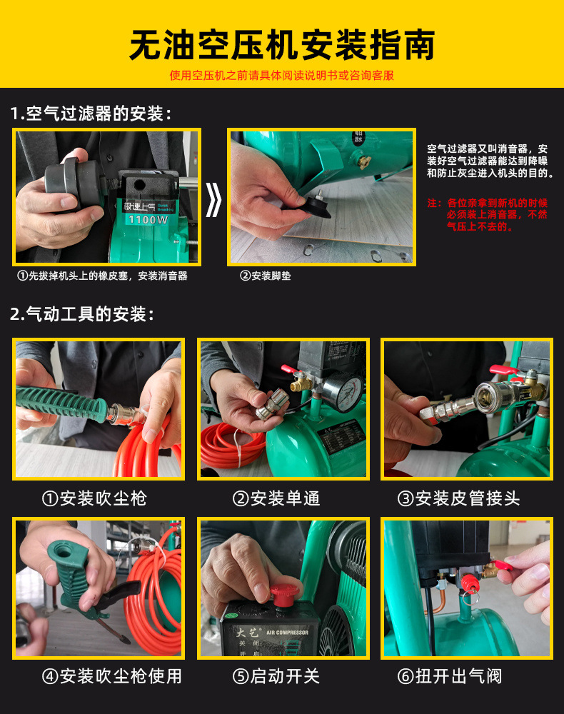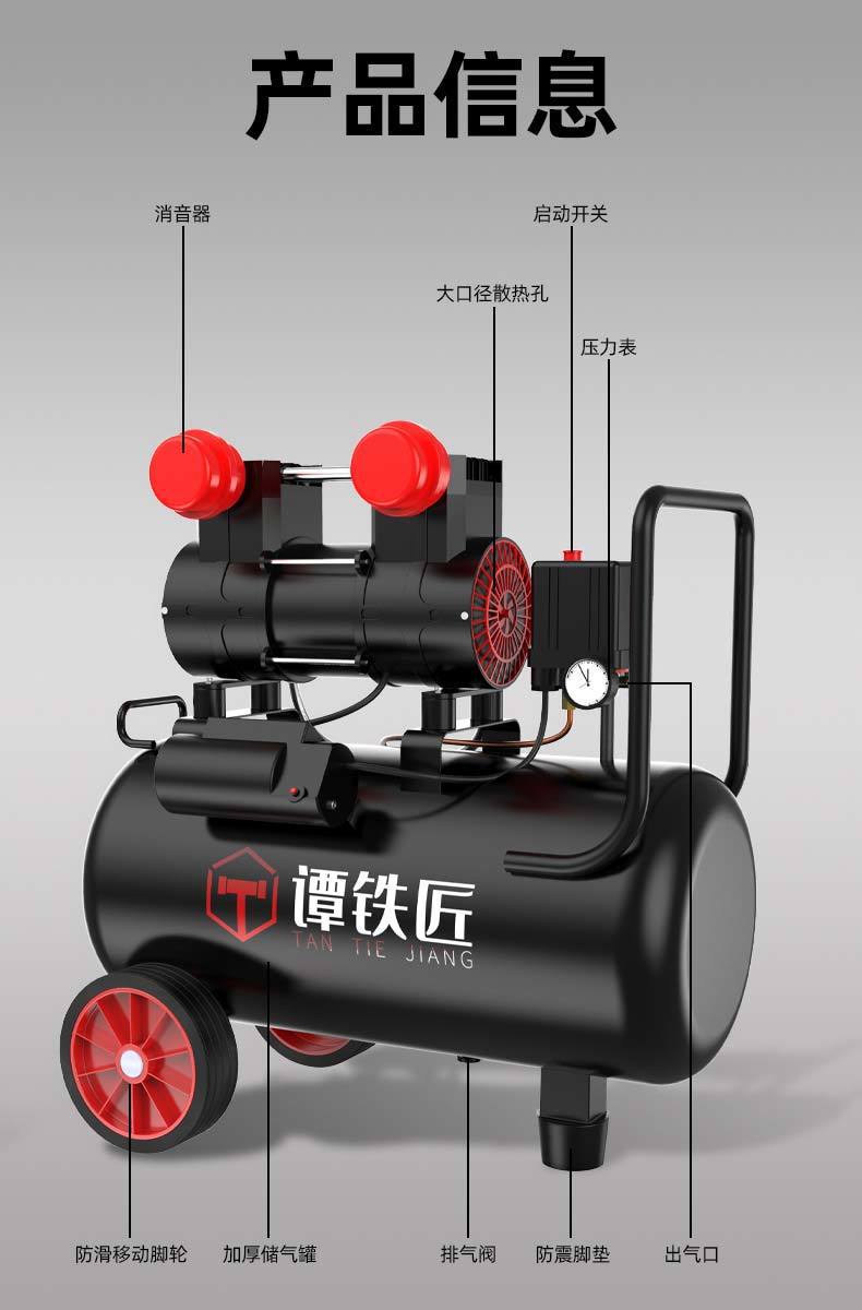 공기 압축기 소형 공기 펌프 목공 스프레이 페인트 장식 고압 220V 오일 프리 자동 공기 압축기