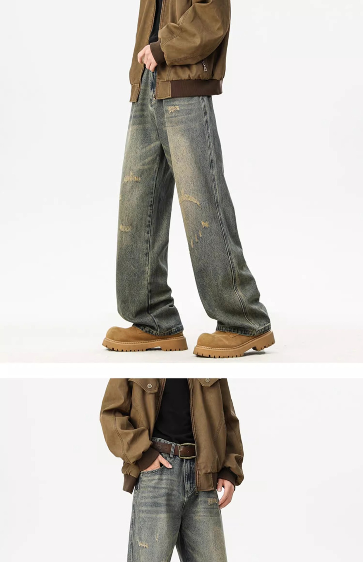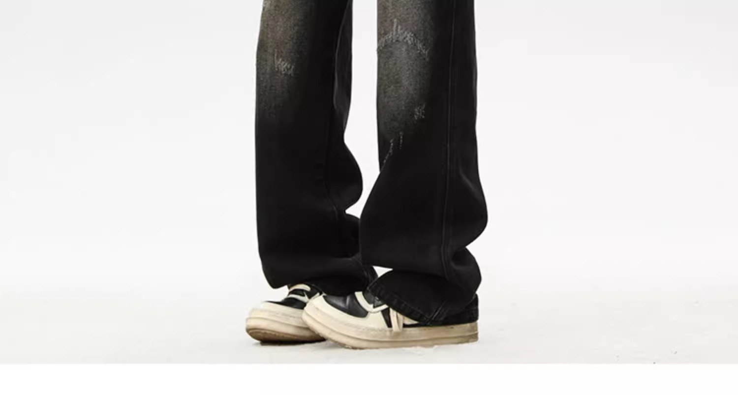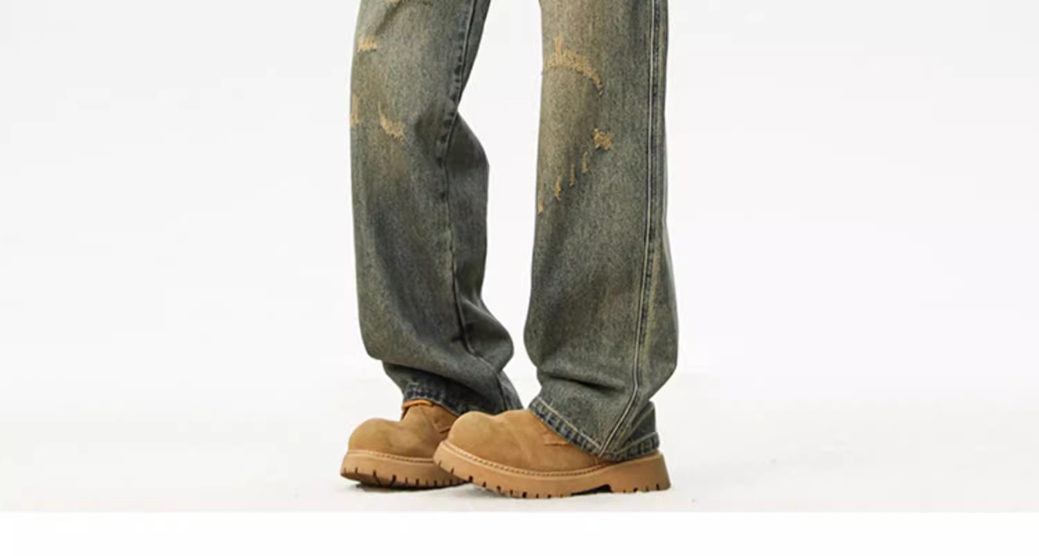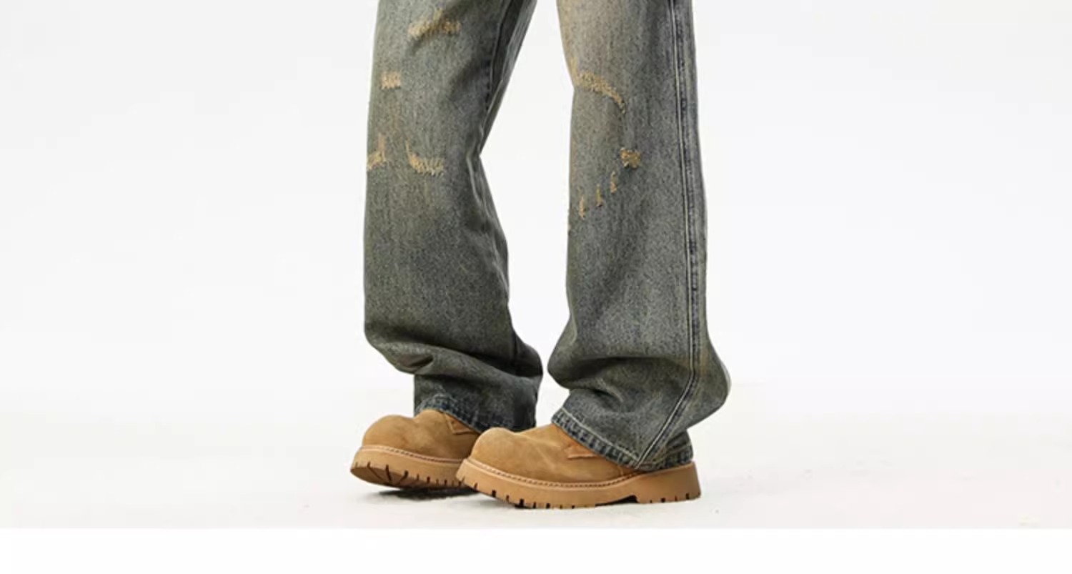 아메리칸 레트로 워싱 찢어진 청바지 남성 트렌디 하이 스트리트 캣스터드 루즈 스트레이트 캐주얼 와이드 레그 롱 팬츠