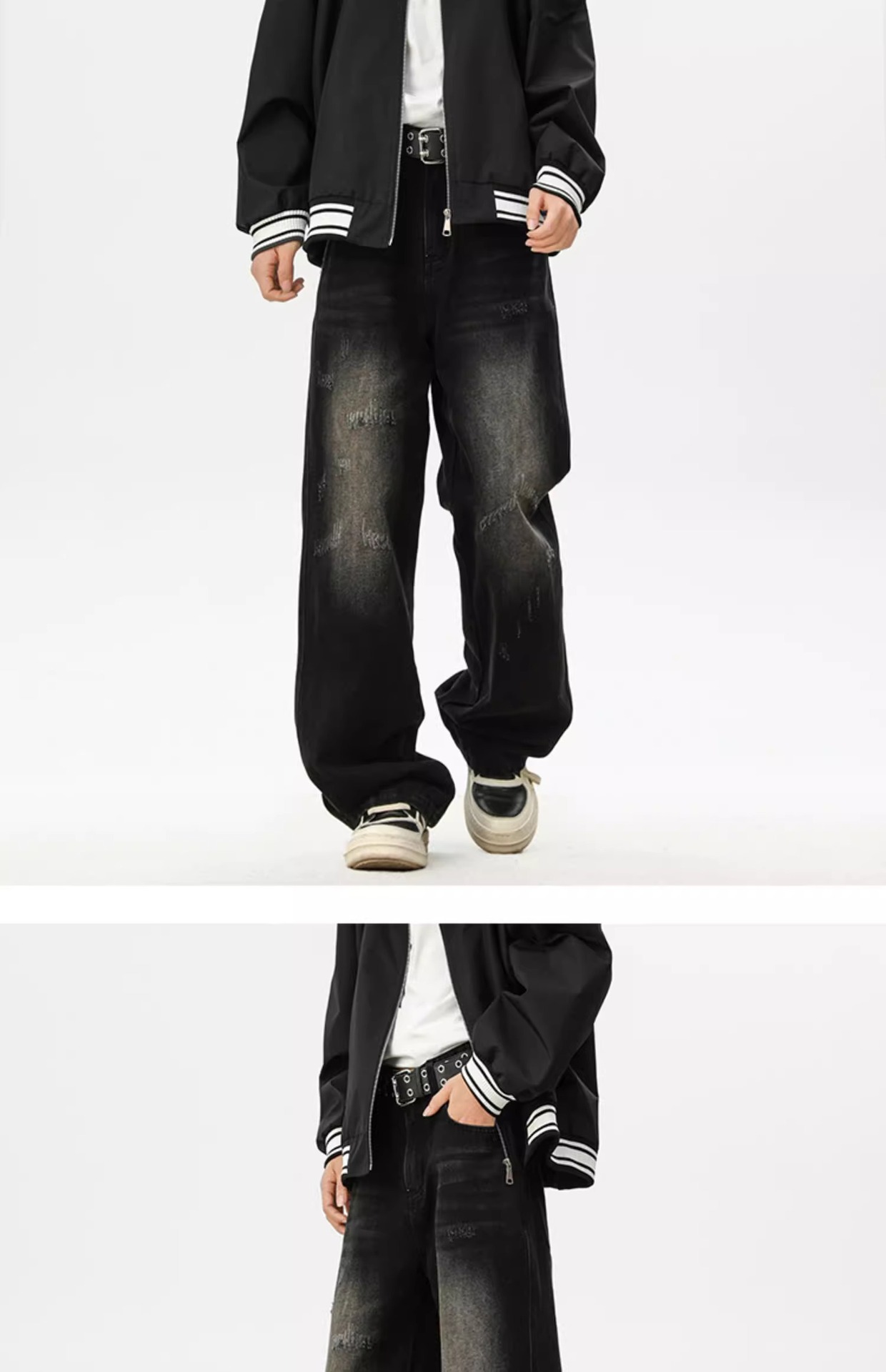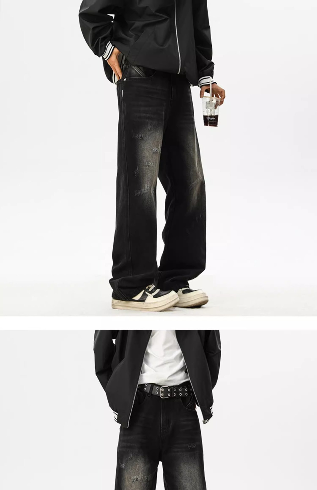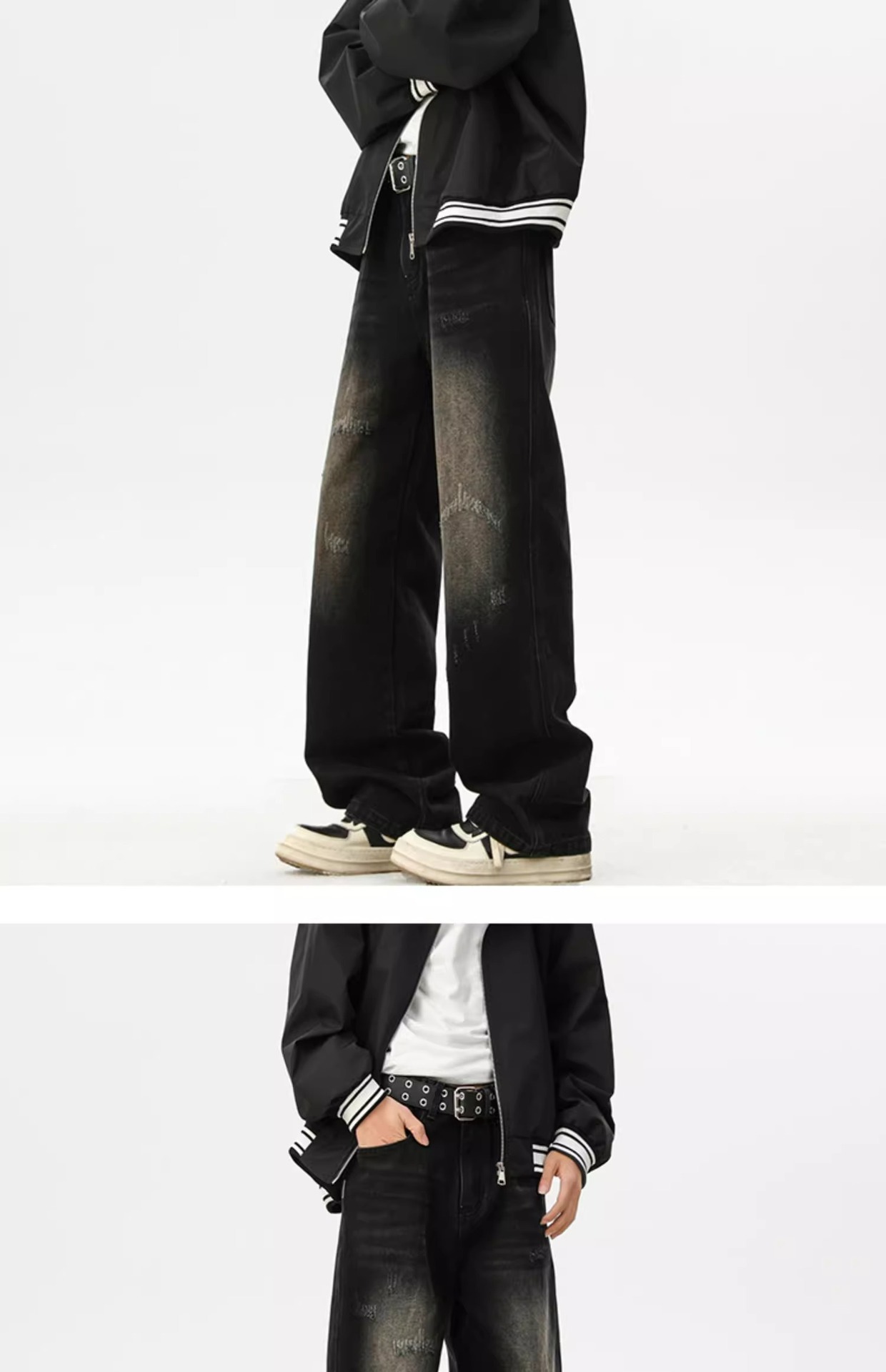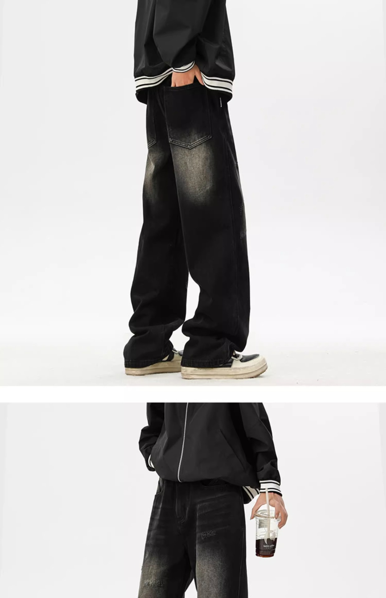 아메리칸 레트로 워싱 찢어진 청바지 남성 트렌디 하이 스트리트 캣스터드 루즈 스트레이트 캐주얼 와이드 레그 롱 팬츠