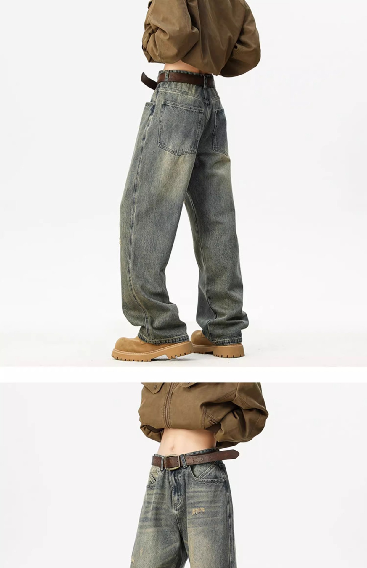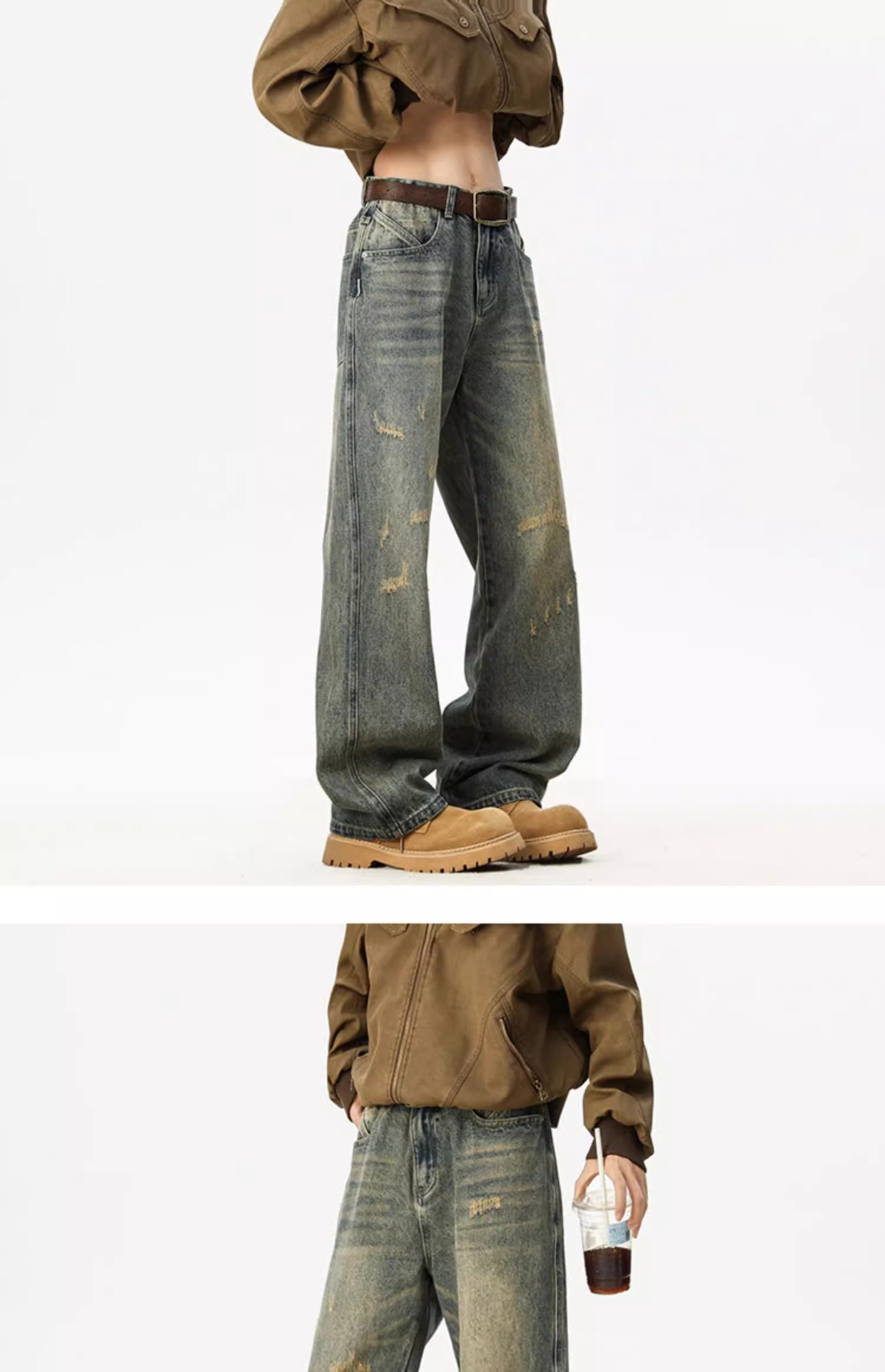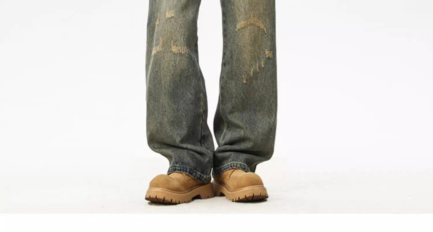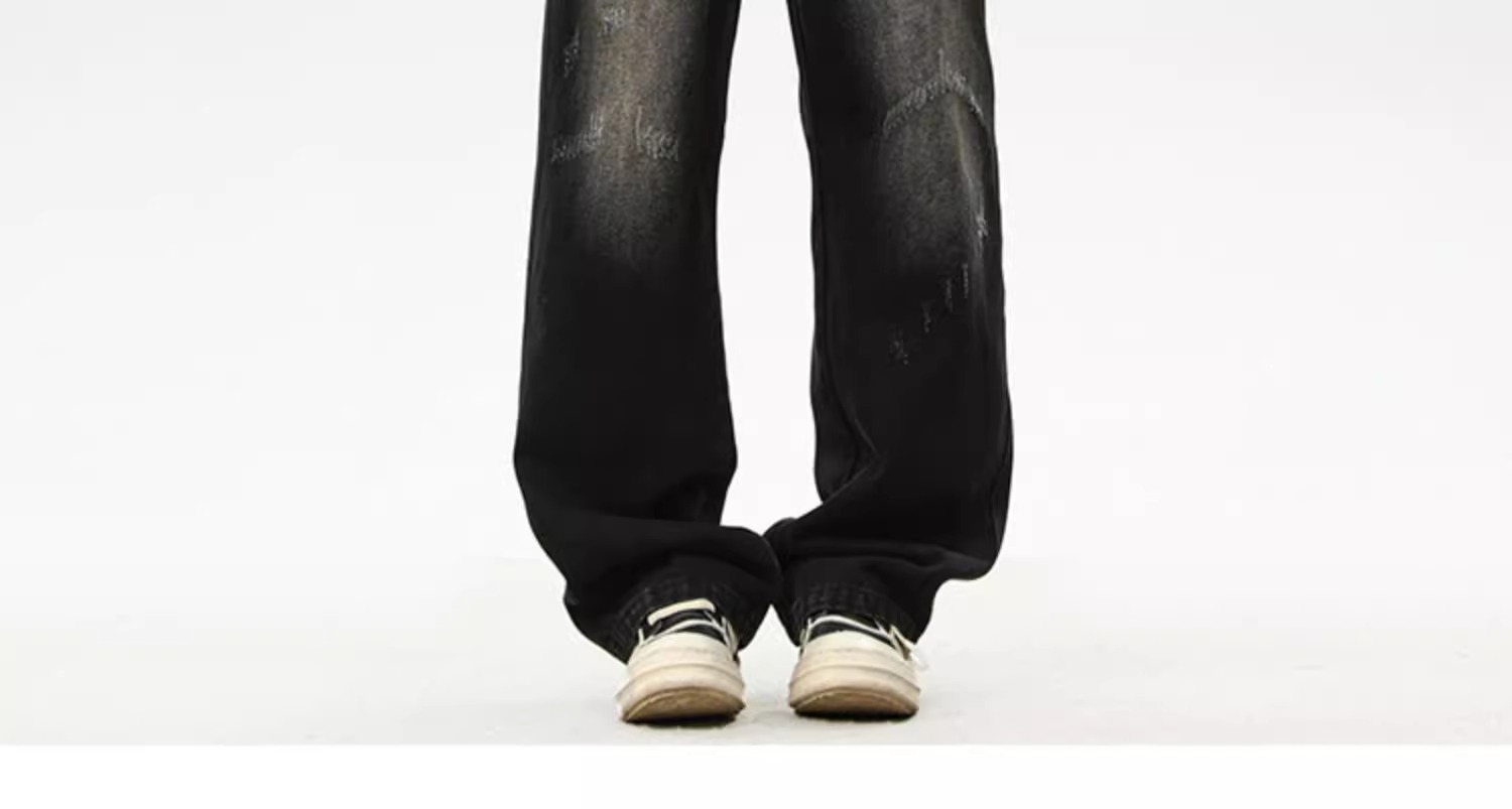 아메리칸 레트로 워싱 찢어진 청바지 남성 트렌디 하이 스트리트 캣스터드 루즈 스트레이트 캐주얼 와이드 레그 롱 팬츠스토어 가기