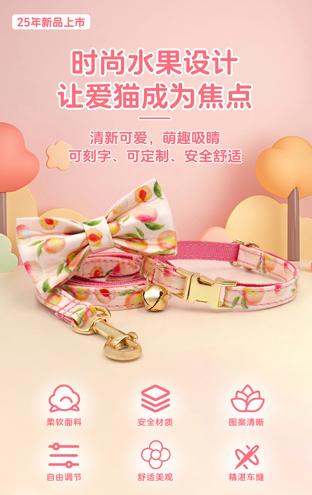 Ins水果柠檬猫咪牵引绳猫咪项圈 跨境猫咪项圈刻字猫牵引绳猫链