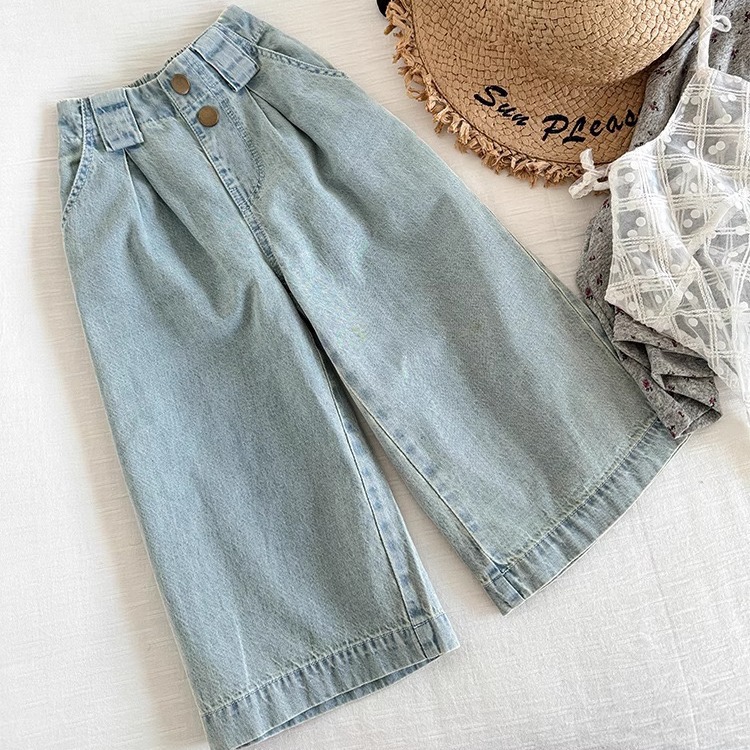 여자 여름 정장 아기 소녀 보라색 레이스 공주 반팔 티셔츠 한국 스타일 얇은 데님 캐주얼 바지