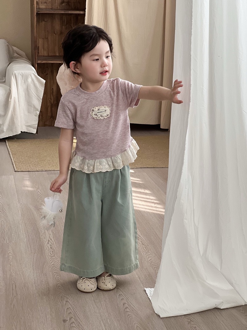 여자 여름 정장 아기 소녀 보라색 레이스 공주 반팔 티셔츠 한국 스타일 얇은 데님 캐주얼 바지스토어 가기