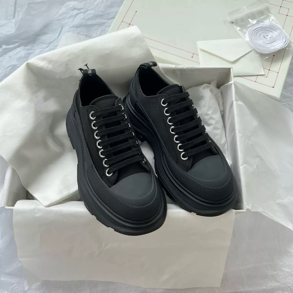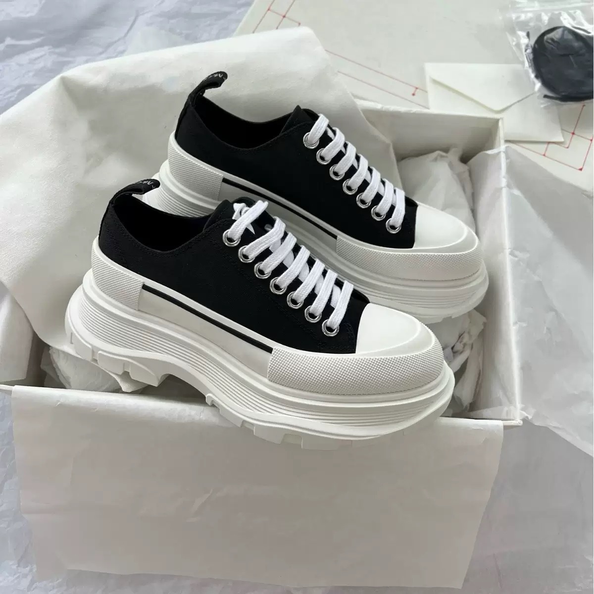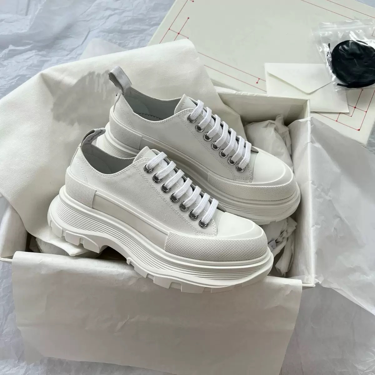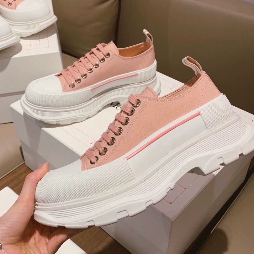 McQueen 캔버스 신발 여성 2025 여름 새로운 통기성 가죽 높이 증가 아빠 플랫폼 두꺼운 밑창 신발 다목적 흰색 신발스토어 가기