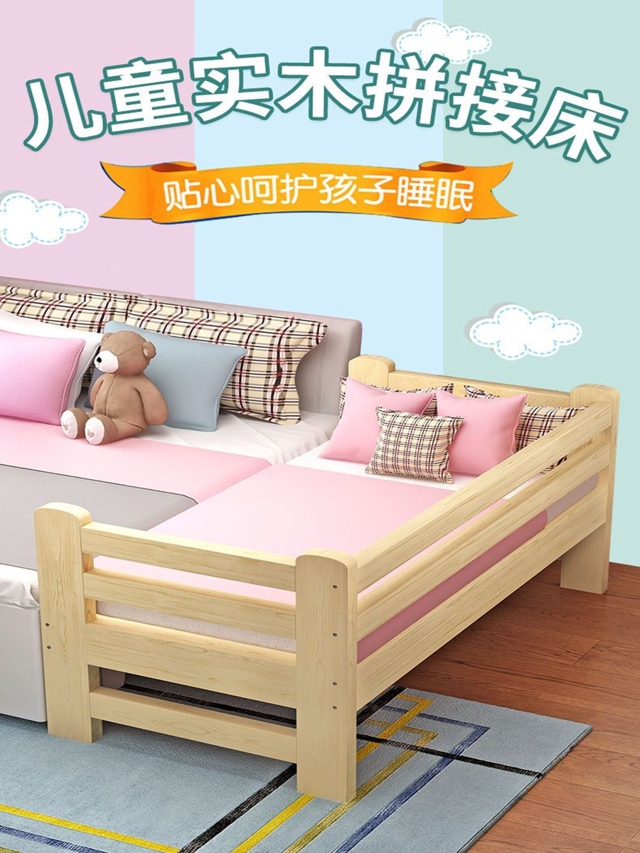 접합 침대, 확장 침대, 전체 원목 어린이 침대, 가드레일 포함, 싱글 접합 침대, 유아용 침대, 접합 대형 침대, 도매 가능