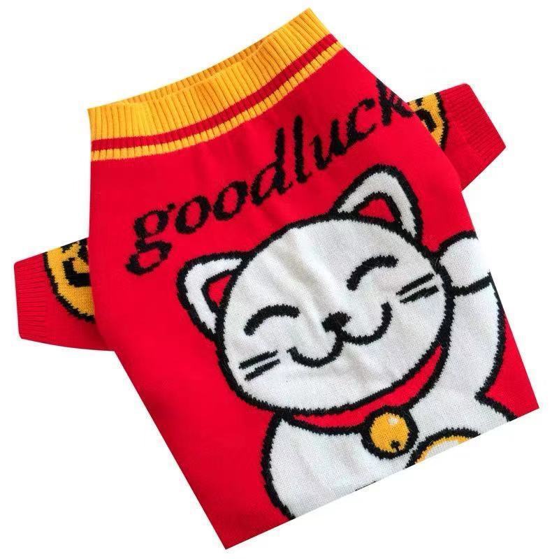 • 레드 럭키 캣 플리스 스웨트셔츠 원단