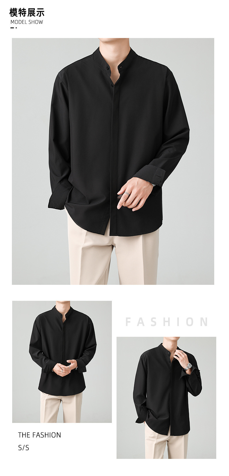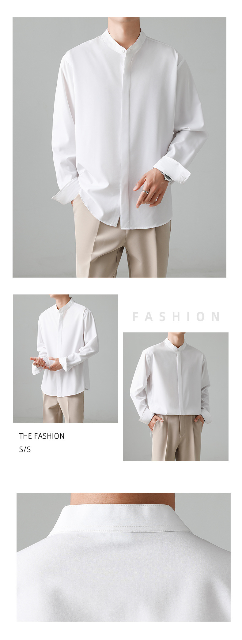 LKTM 남자의 새로운 중국 스타일 수직 칼라 긴팔 셔츠 남자의 가벼운 성숙한 스타일 하이 엔드 감각 유피 잘 생긴 아이스 실크 포장 셔츠스토어 가기