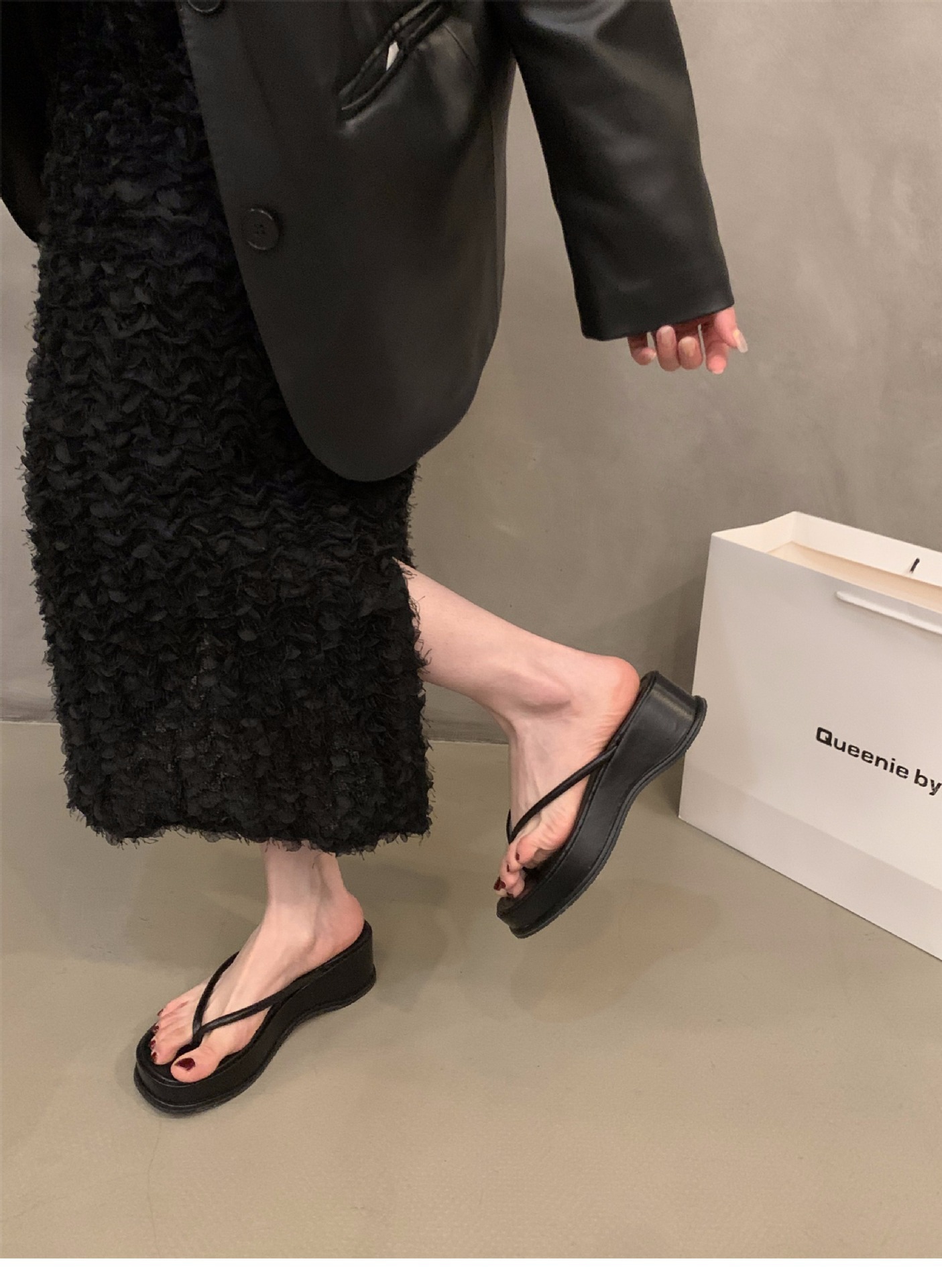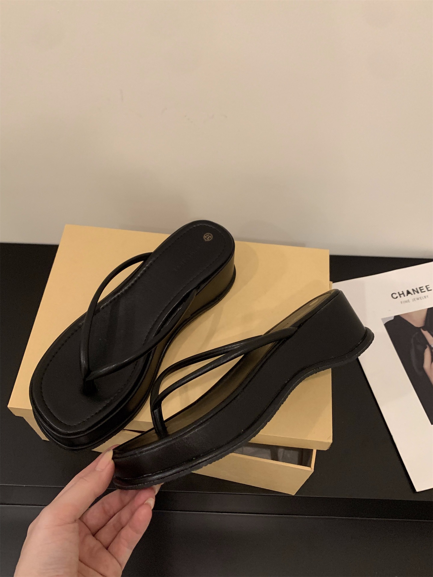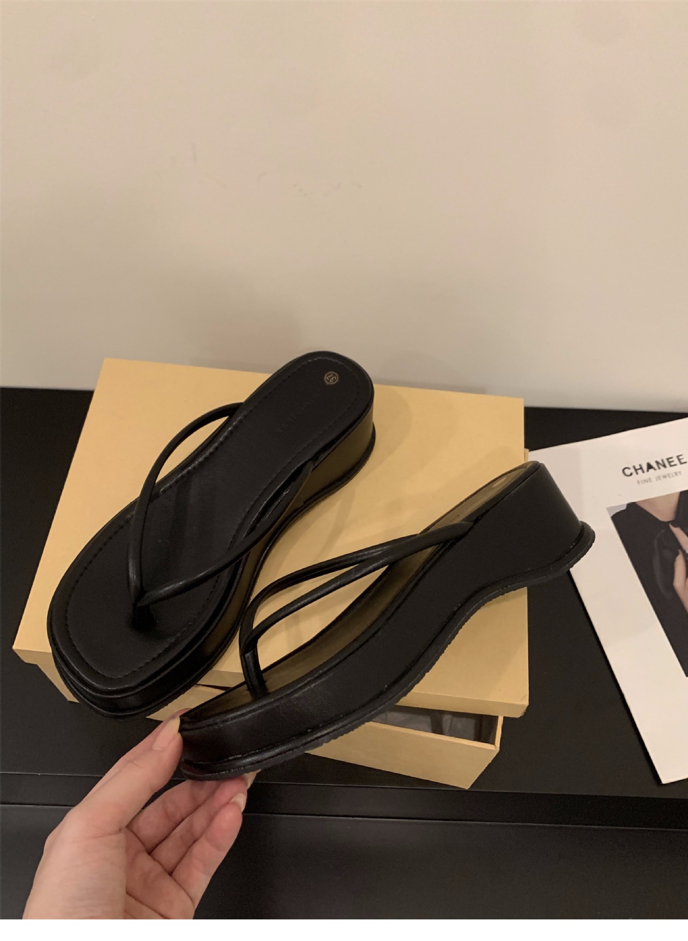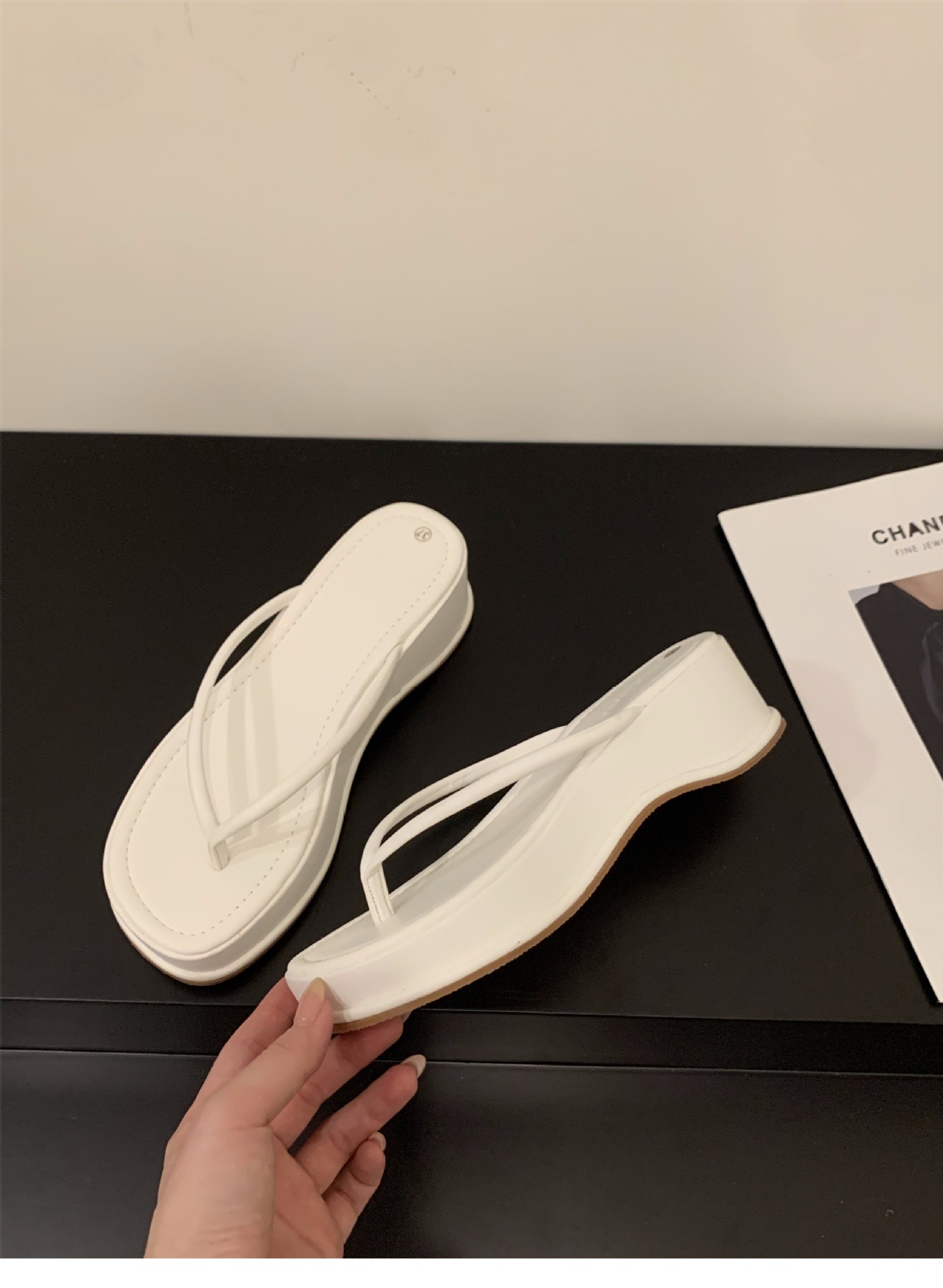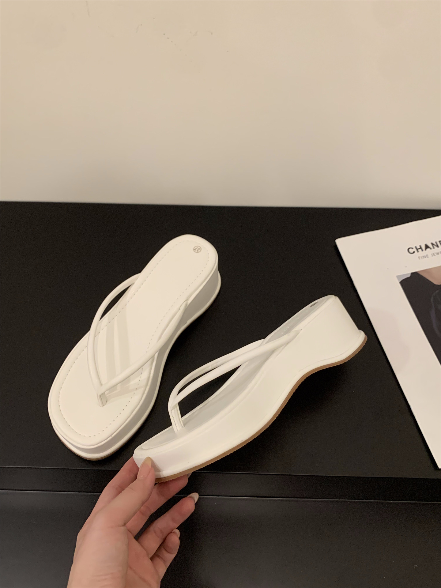 두꺼운 밑창 높이 증가 플립 플롭 요정 신발 겉옷 홀리데이 웨지 힐 라운드 헤드 샌들 2024 새로운 여름스토어 가기