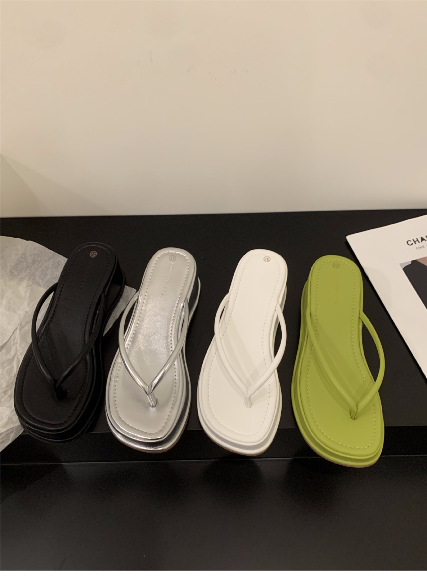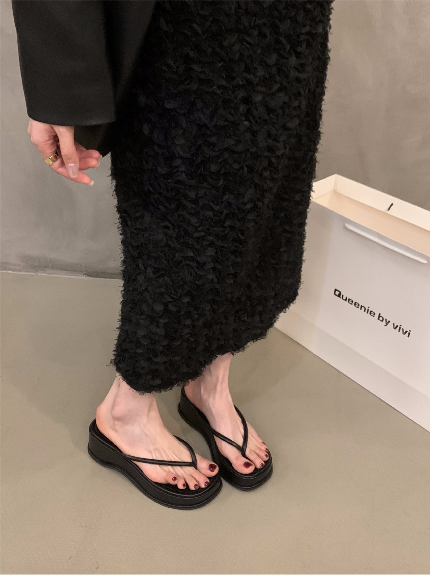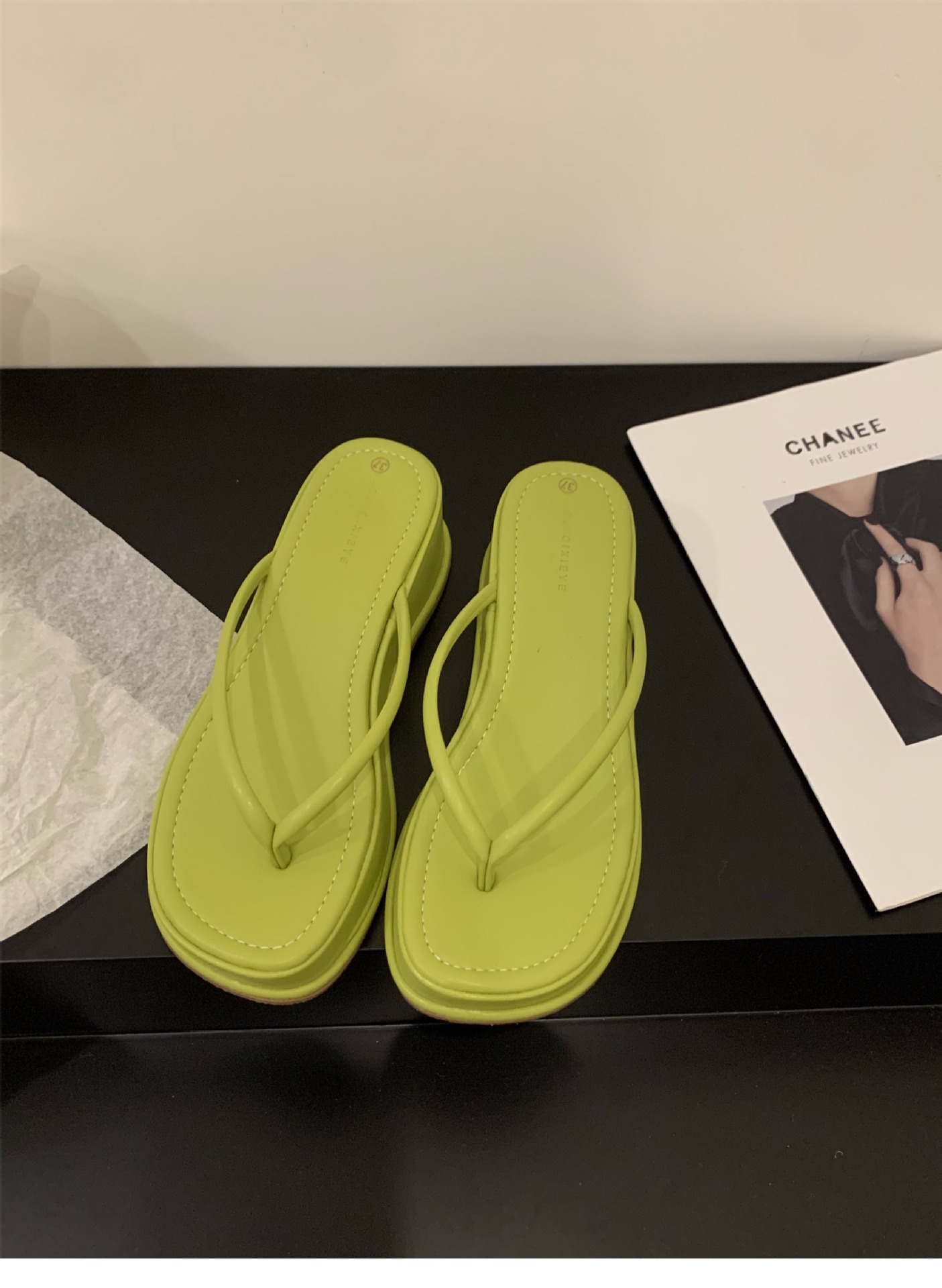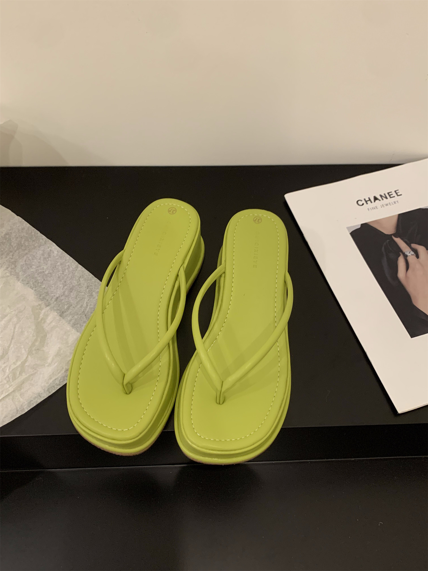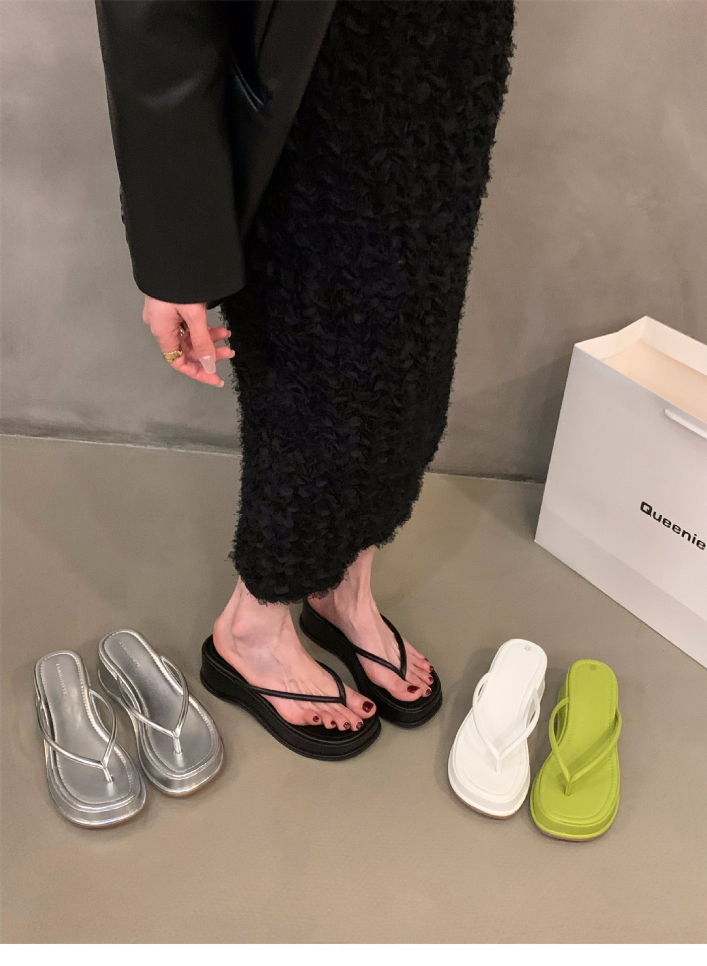 두꺼운 밑창 높이 증가 플립 플롭 요정 신발 겉옷 홀리데이 웨지 힐 라운드 헤드 샌들 2024 새로운 여름스토어 가기